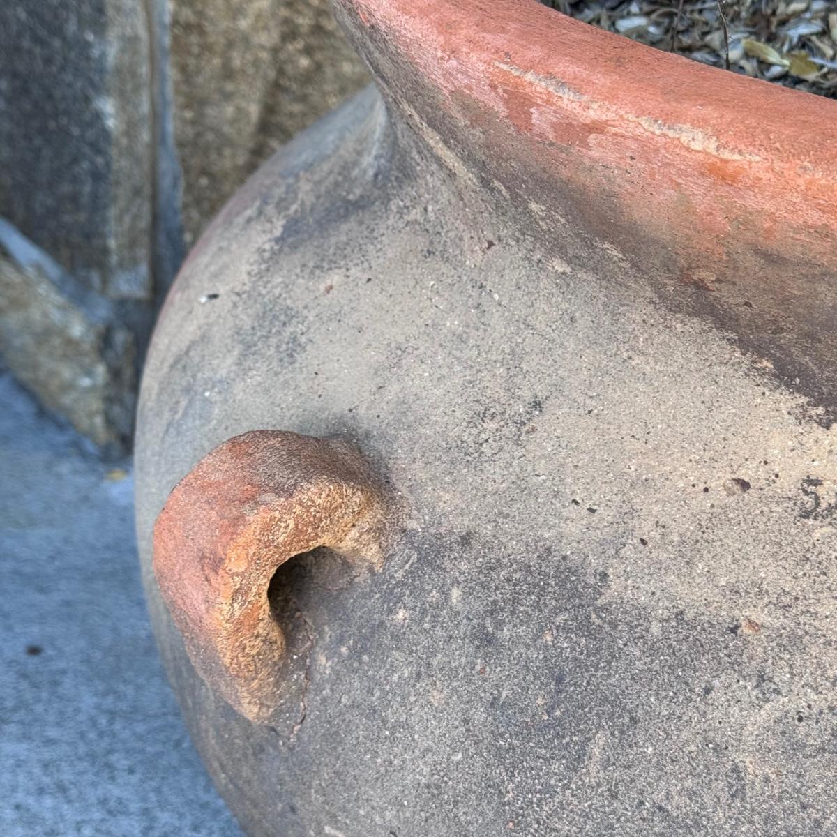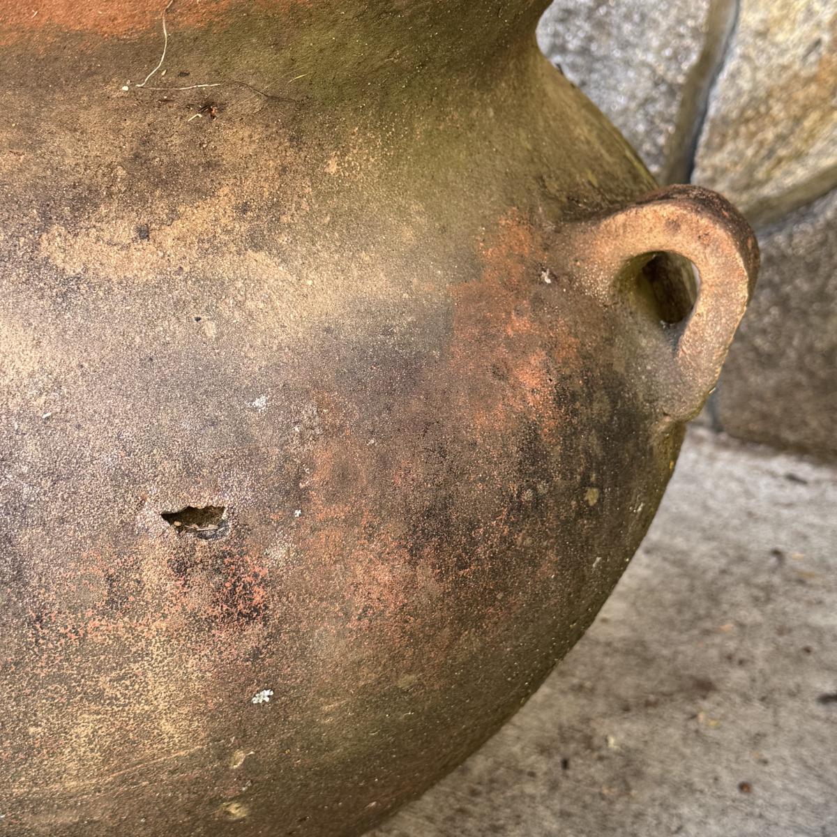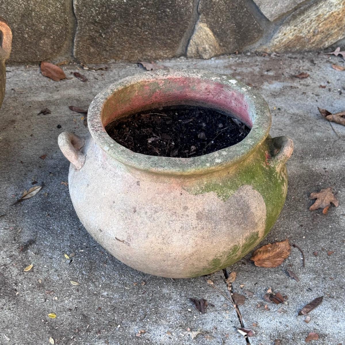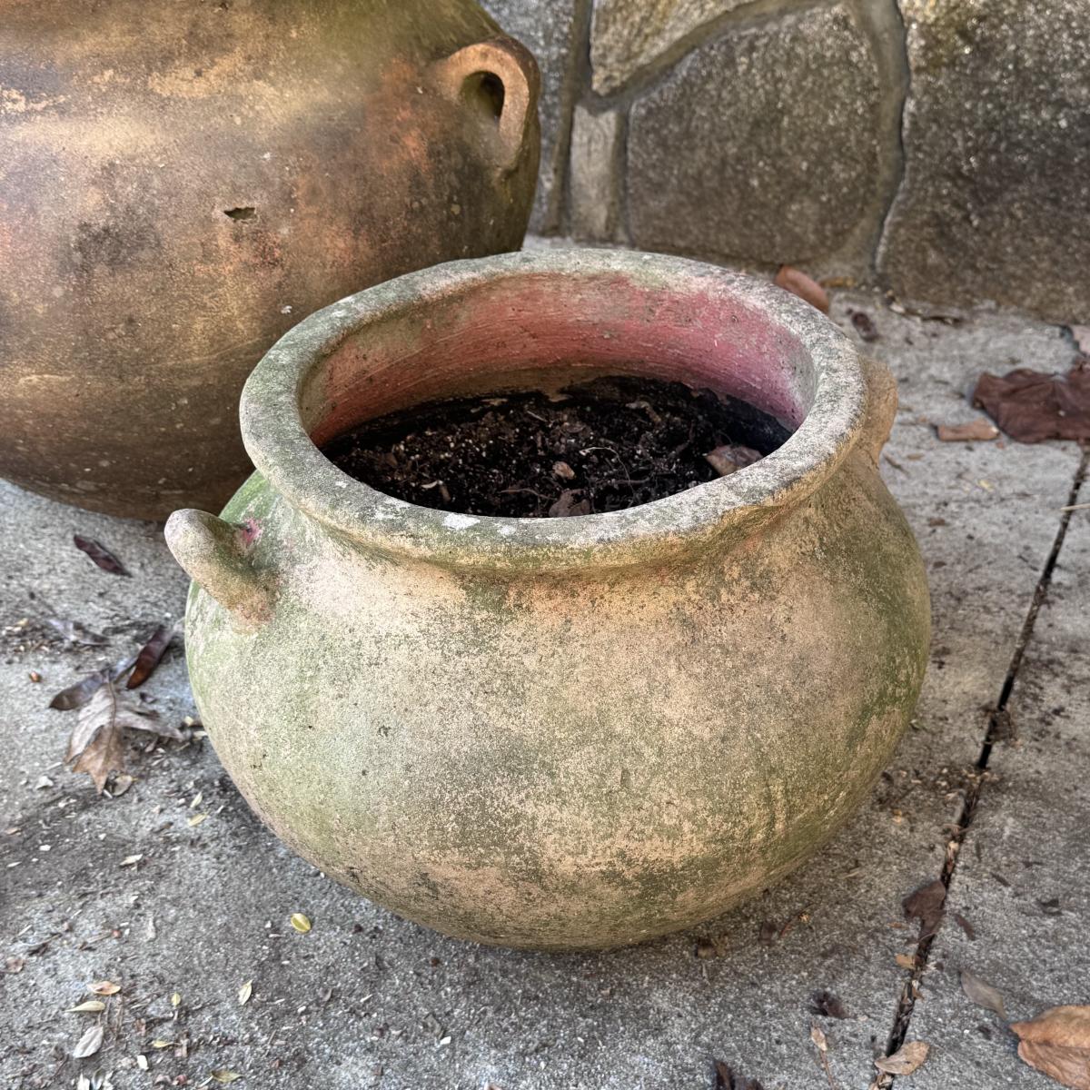 This lot includes, what appears to be, two terracotta planters with handles on both sides. The larger planter comes with a plant that appears to be a mirror bush. He needs some love! Both planters have moss and other stains on the outside - see pictures. The largest one measures 21”D x 17”H. The smaller measures 15”D x 11”H. Local pickup only.