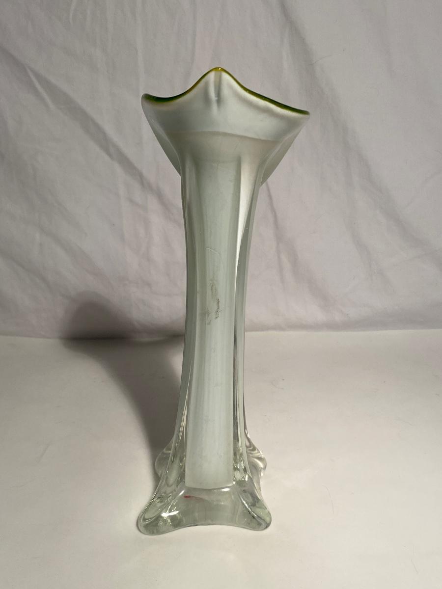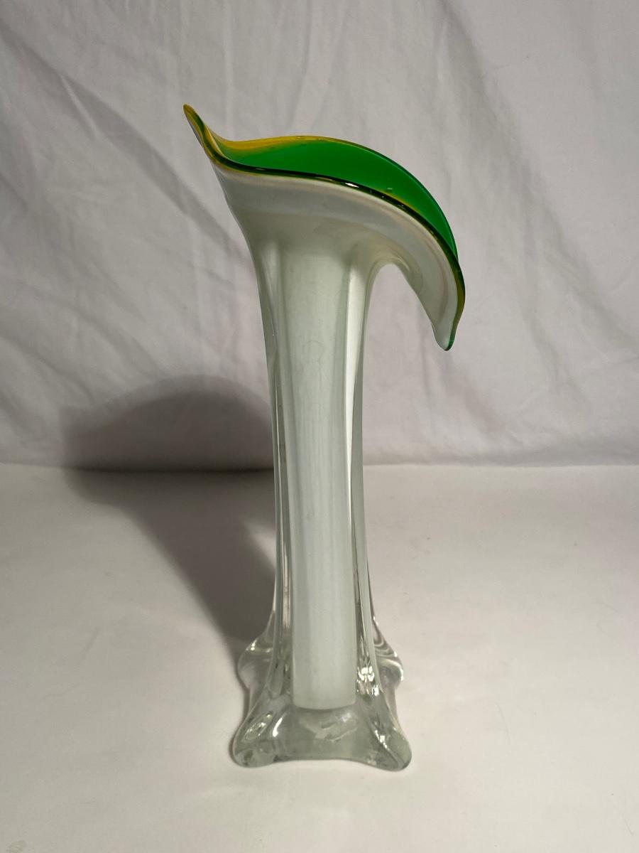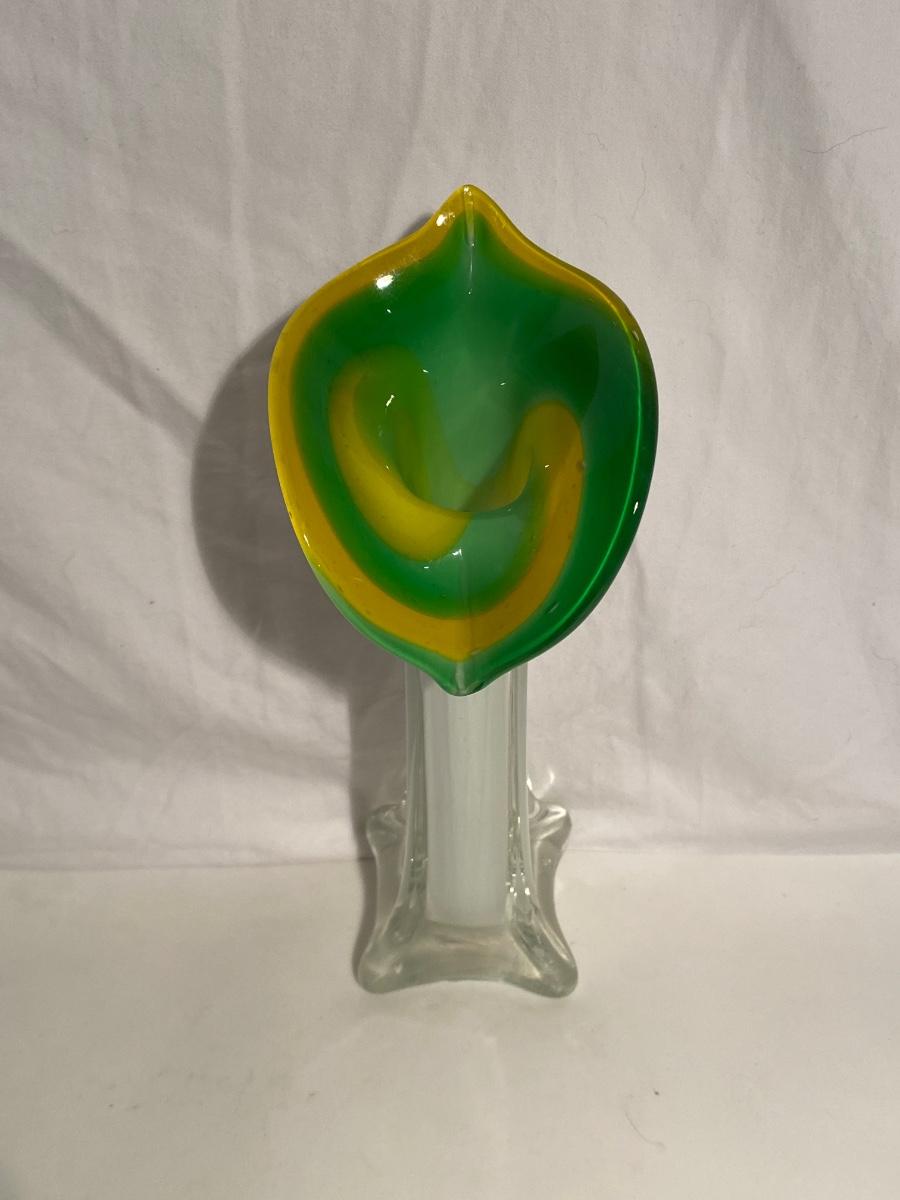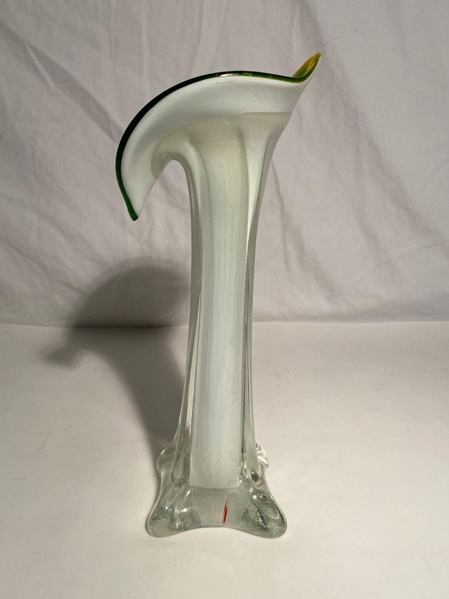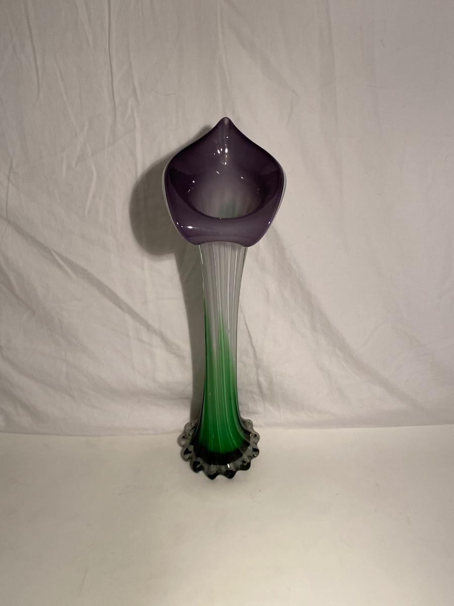 Two hand-made blown glass floral vases. Preowned, like new, and being sold as is