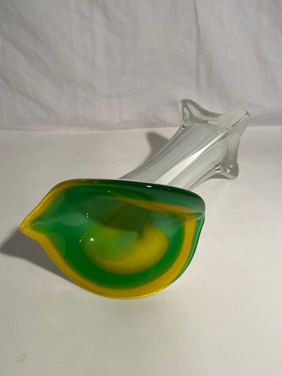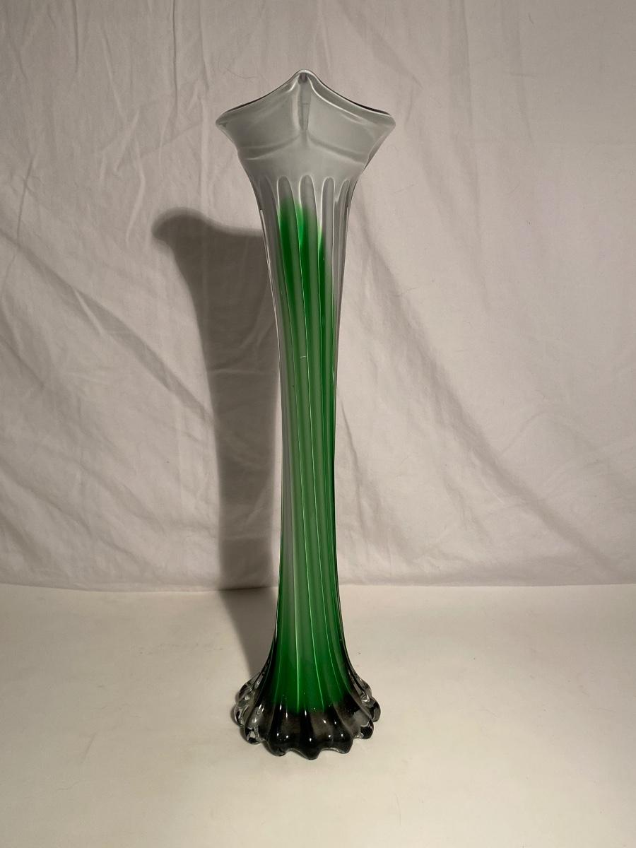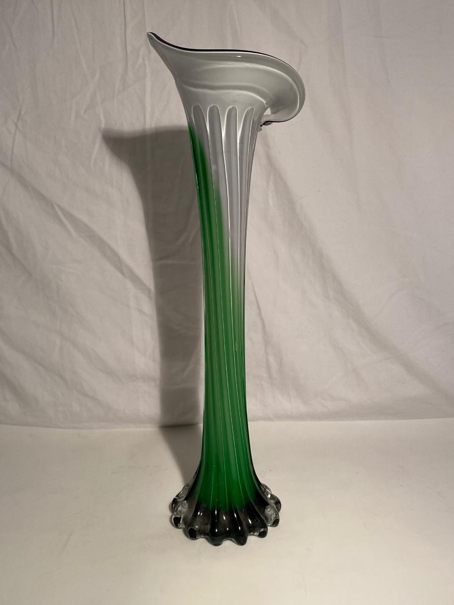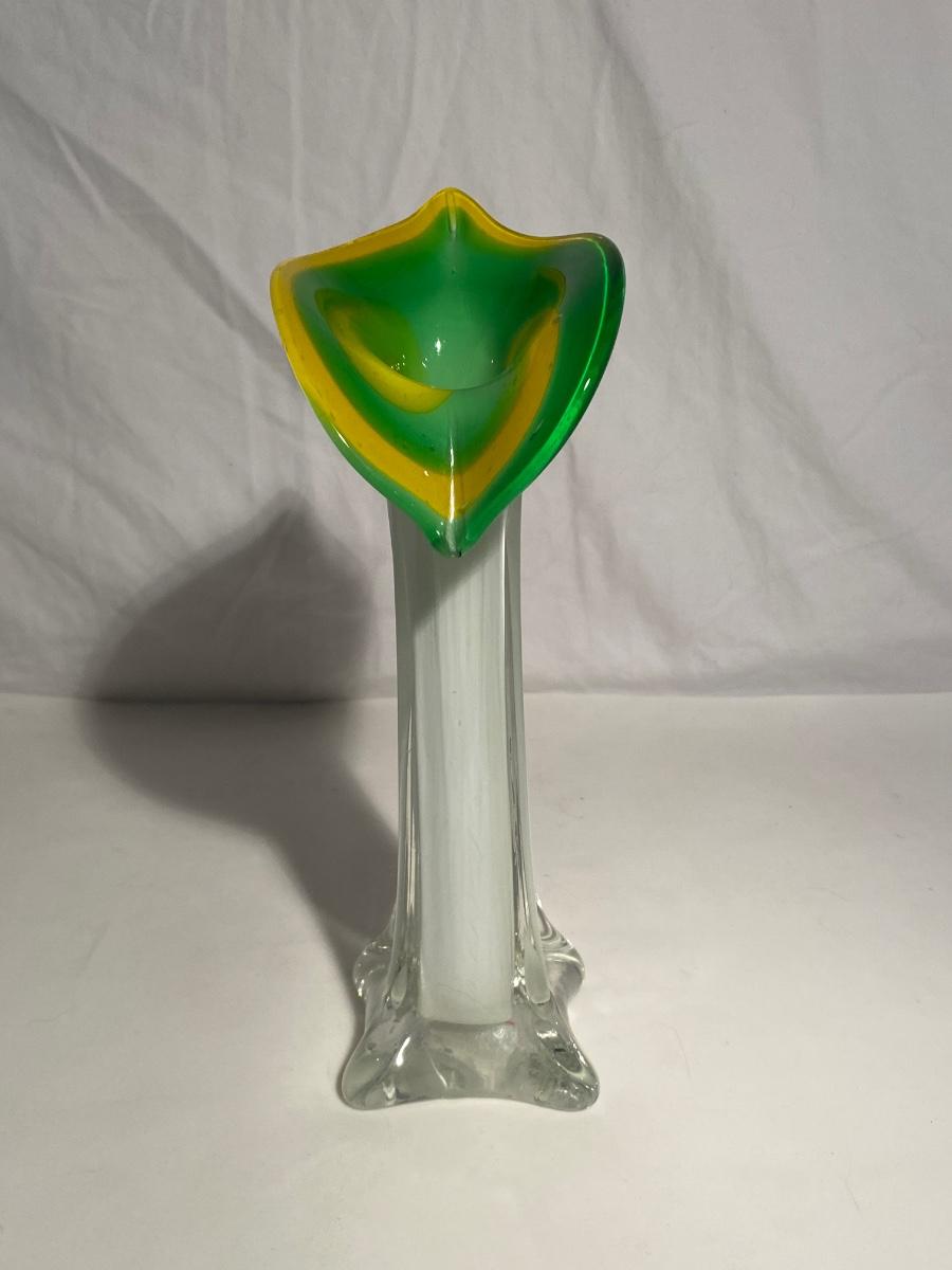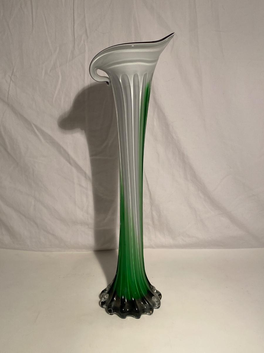 Two hand-made blown glass floral vases. Preowned, like new, and being sold as is