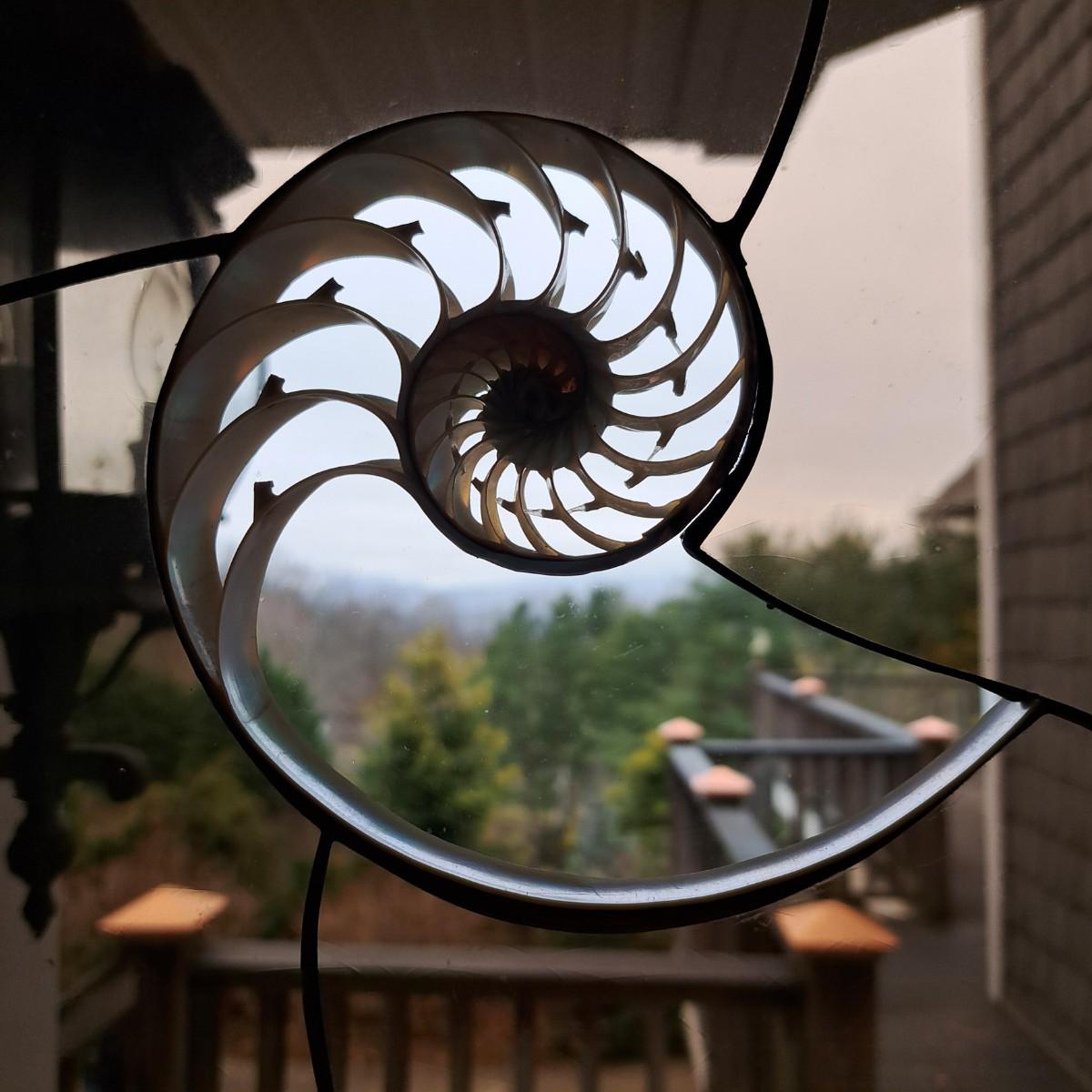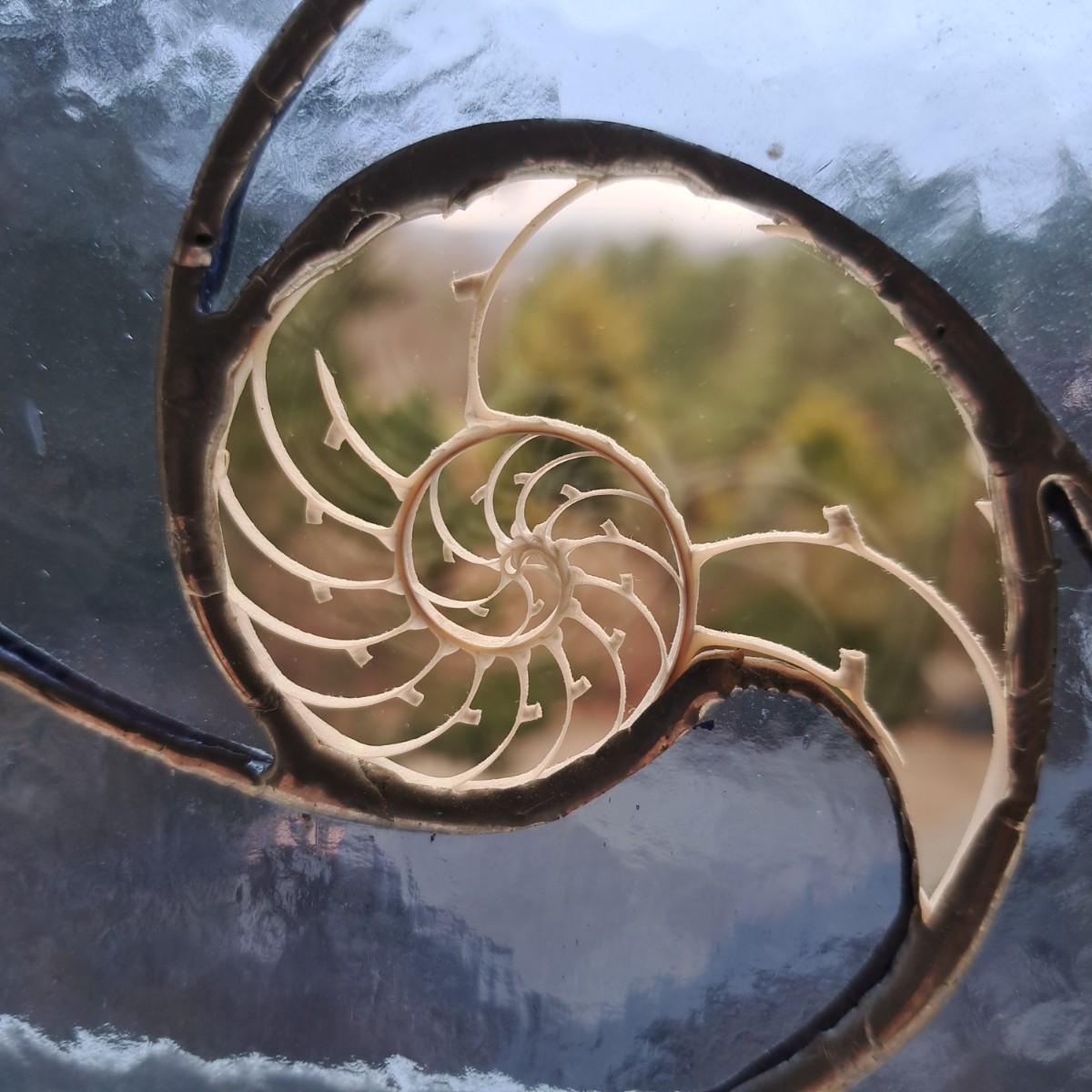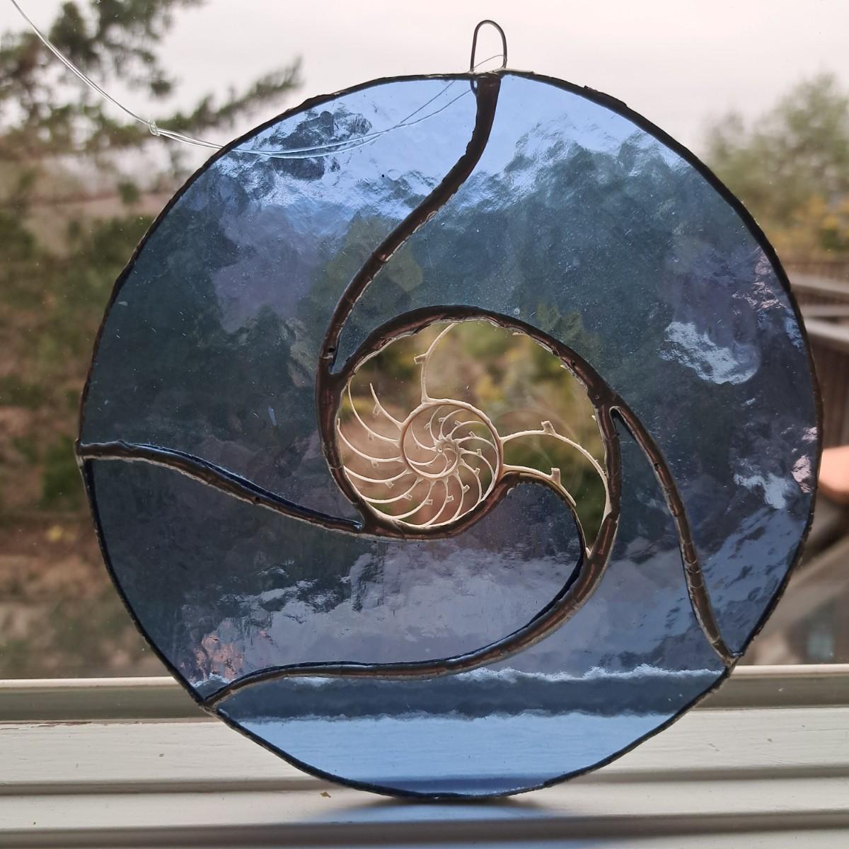 Two Handmade Glass & Nautilus Suncatchers (FE-SD)
