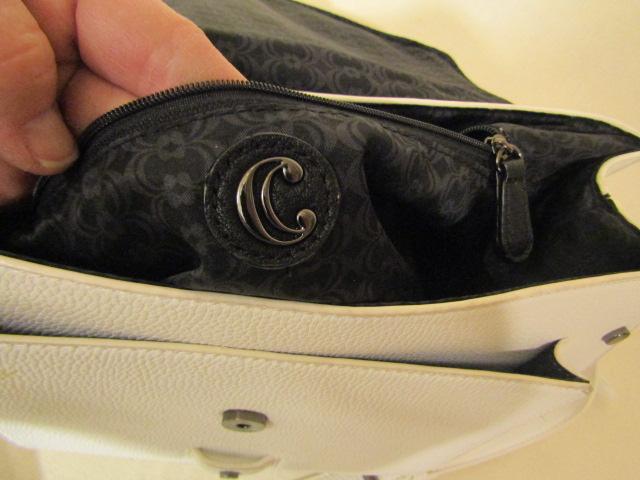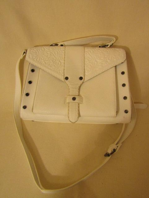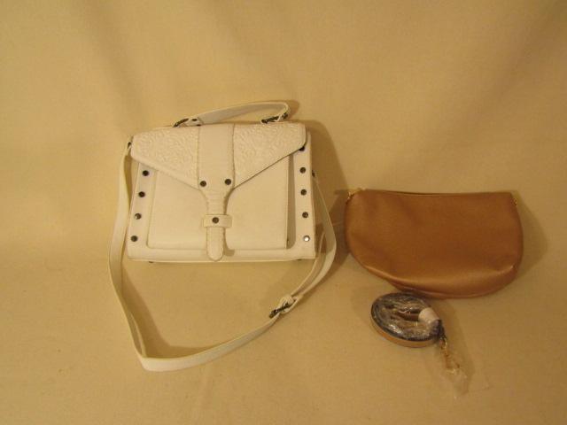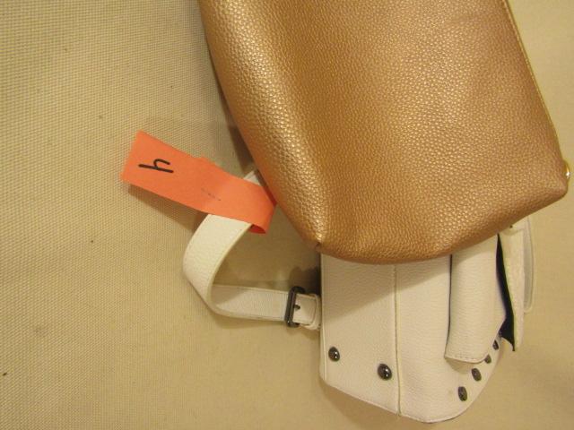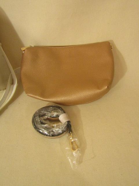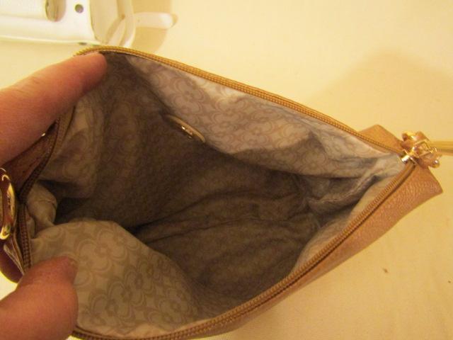 Two Hand/Shoulder Bags (#4)- Not sure of maker. White one is 12" across, tan one is 11" across.