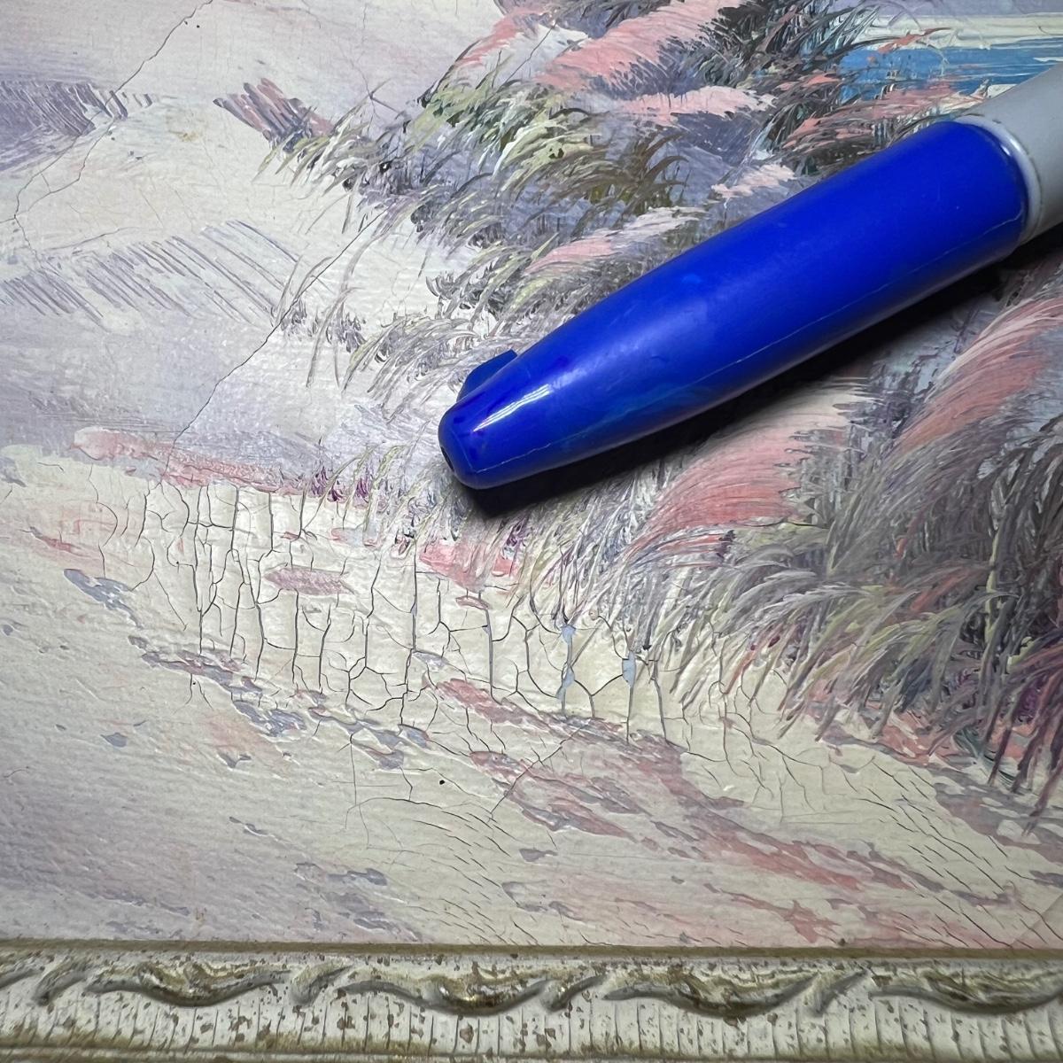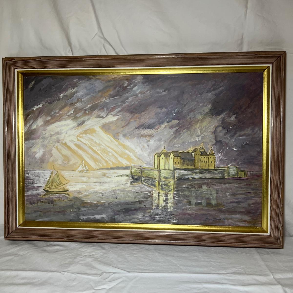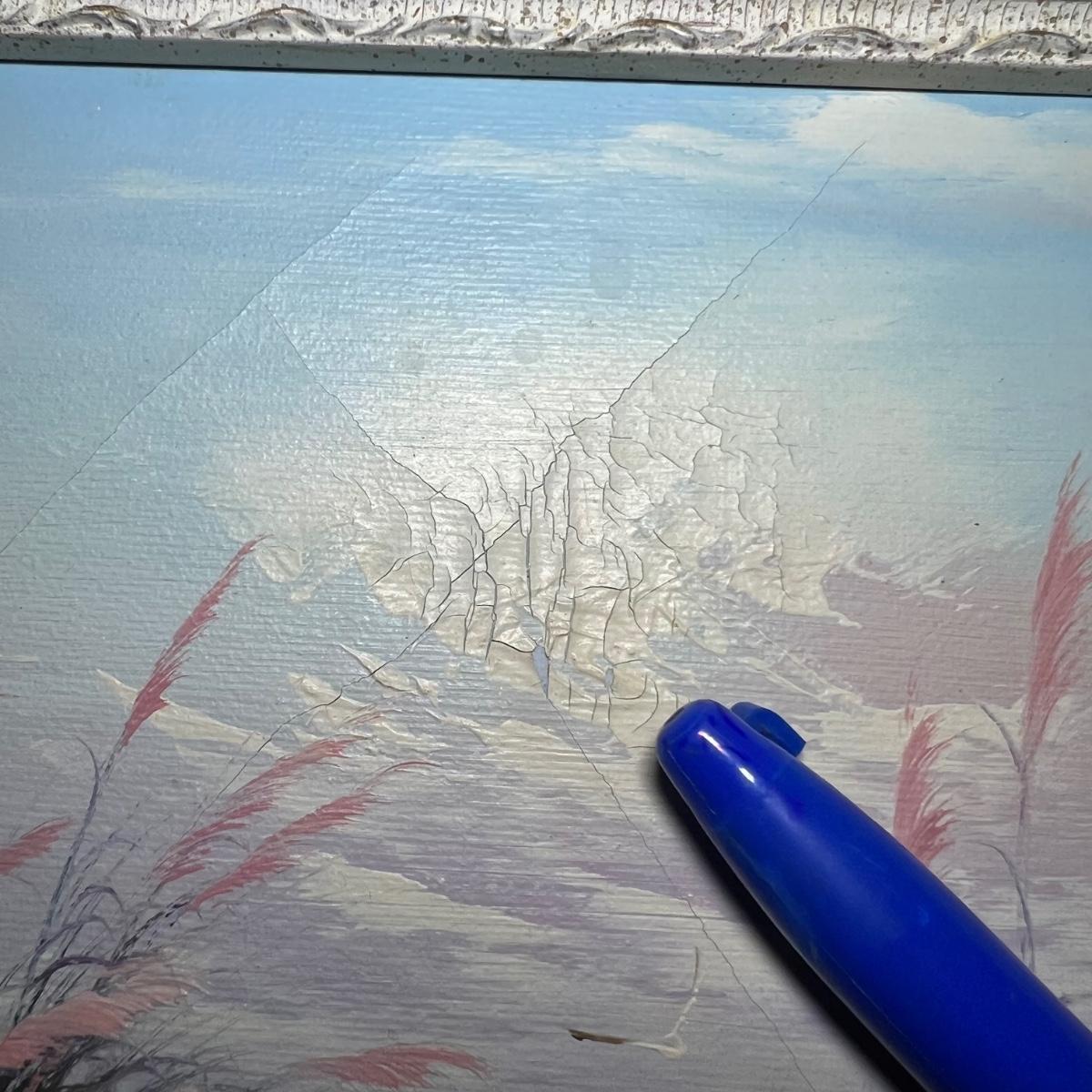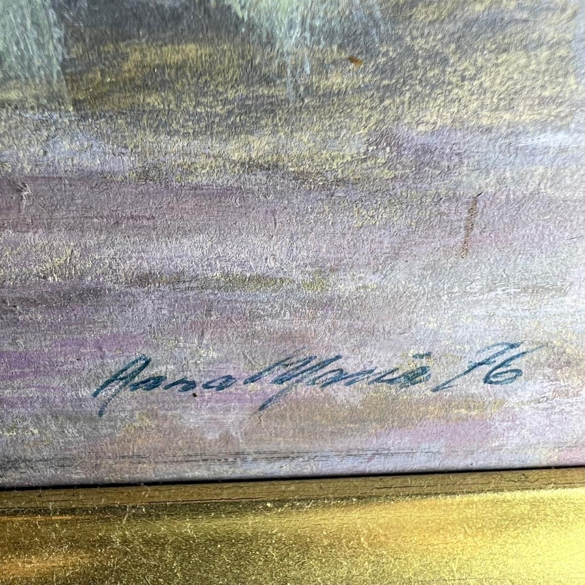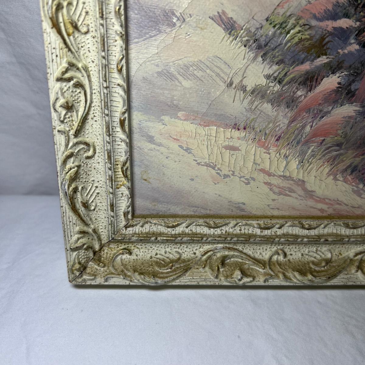 Both of these paintings appear to be originals and acrylic (no glass). The larger painting which is signed is on board, the other on canvas. Signature appears to read Anna Marie 76, its wooden frame measures 23” x 1.5” x 16”H. The smaller painting has a wood frame and note that there are a few small areas where the paint in the painting has cracked, see images.