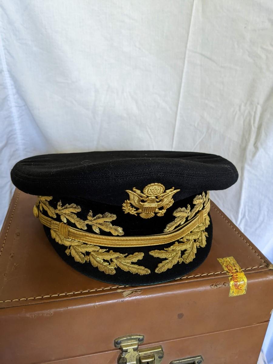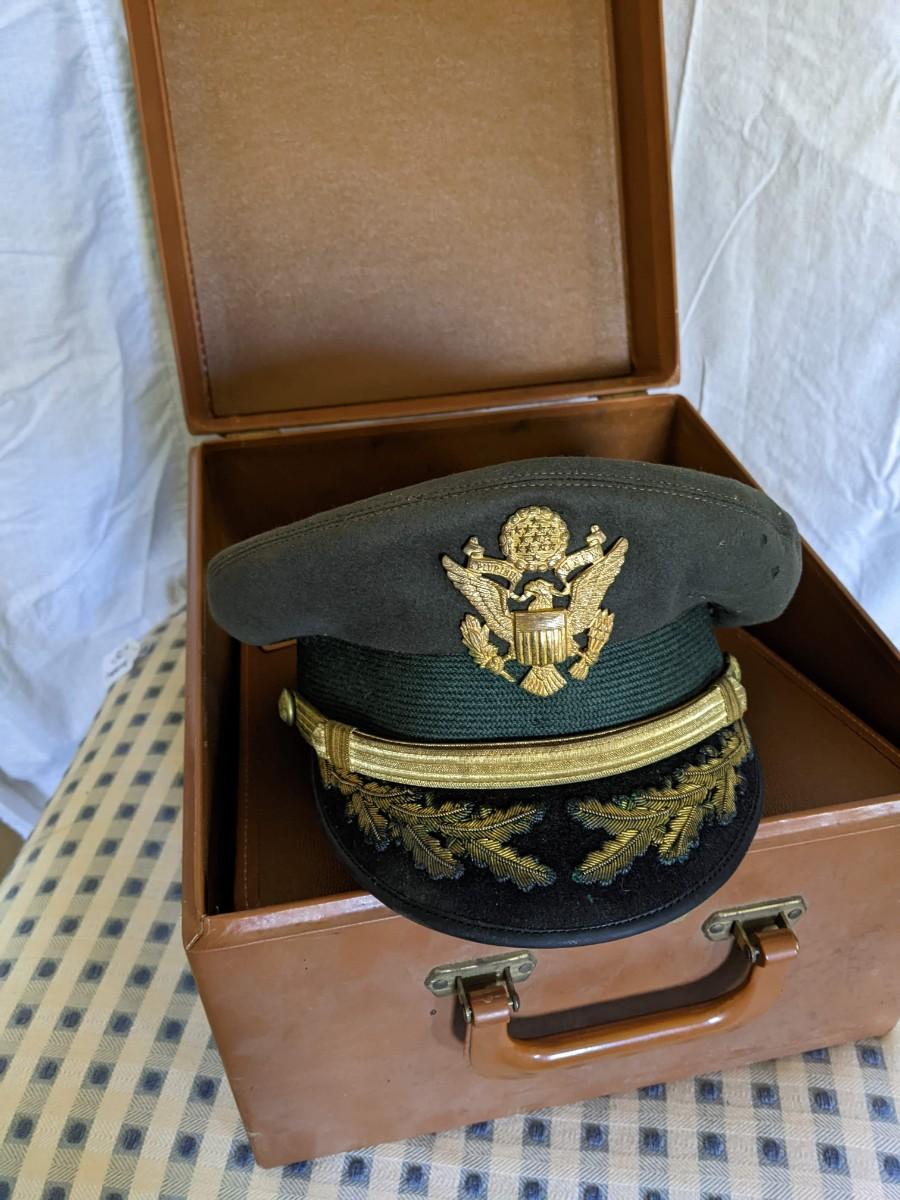 Two officer hats Brig Gen RH Harrison and case Luxenberg