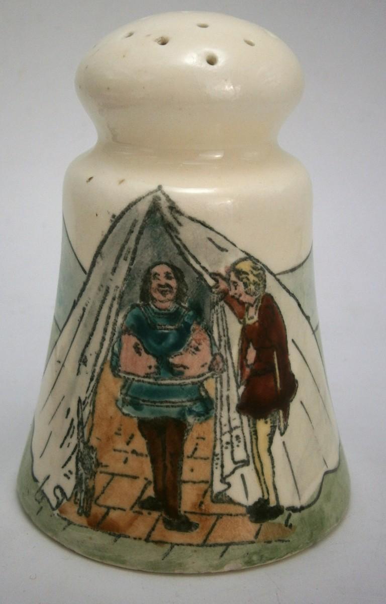 "TWO HEADS ARE BETTER THAN ONE" Salt Shaker made in Austria from the early 1900's, 3 1/2 in. tall, hand painted porcelain.