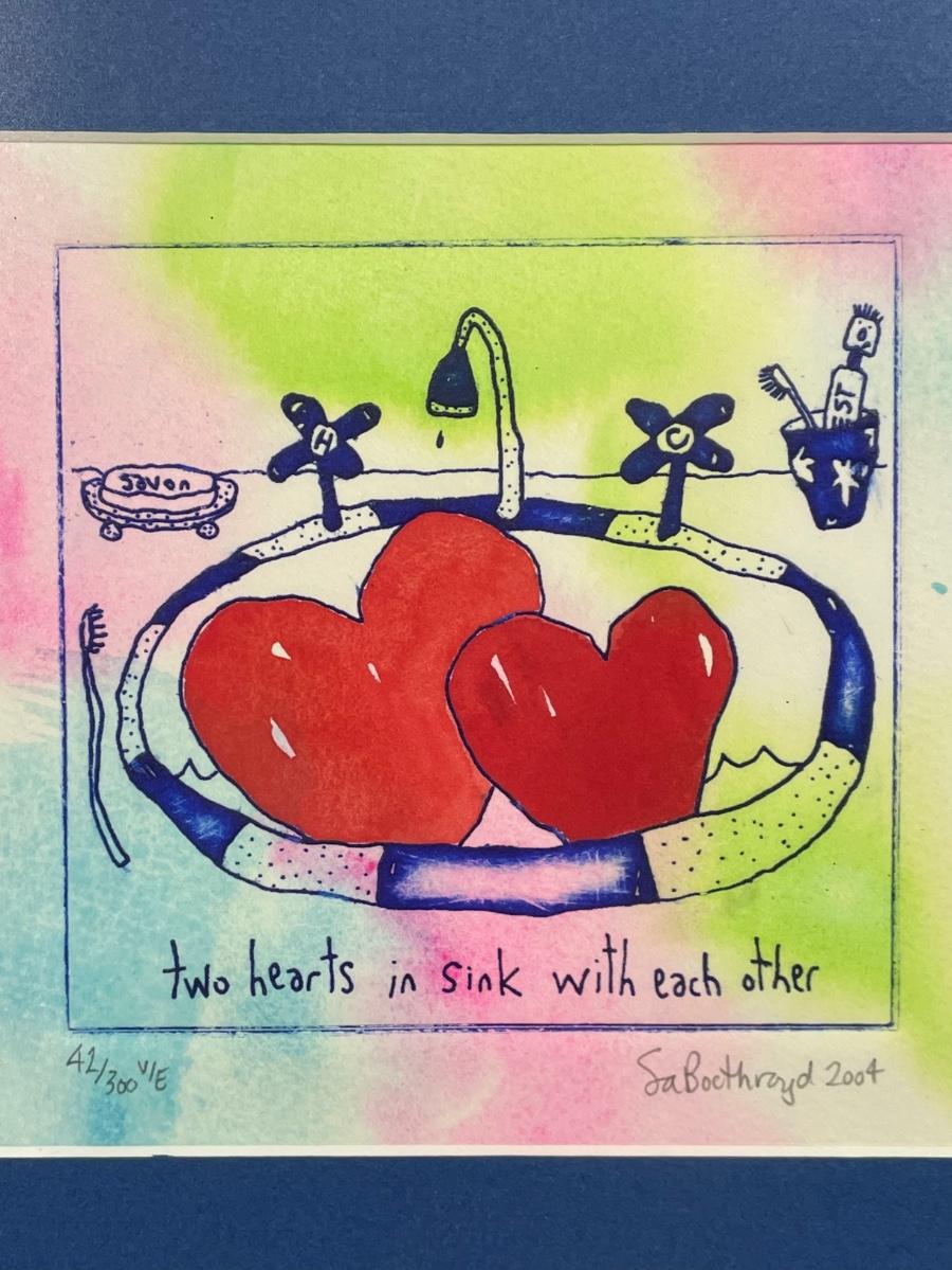Two Hearts in Sink With Each Other Artist Sa Boothroyd Signed Numbered Wall Art