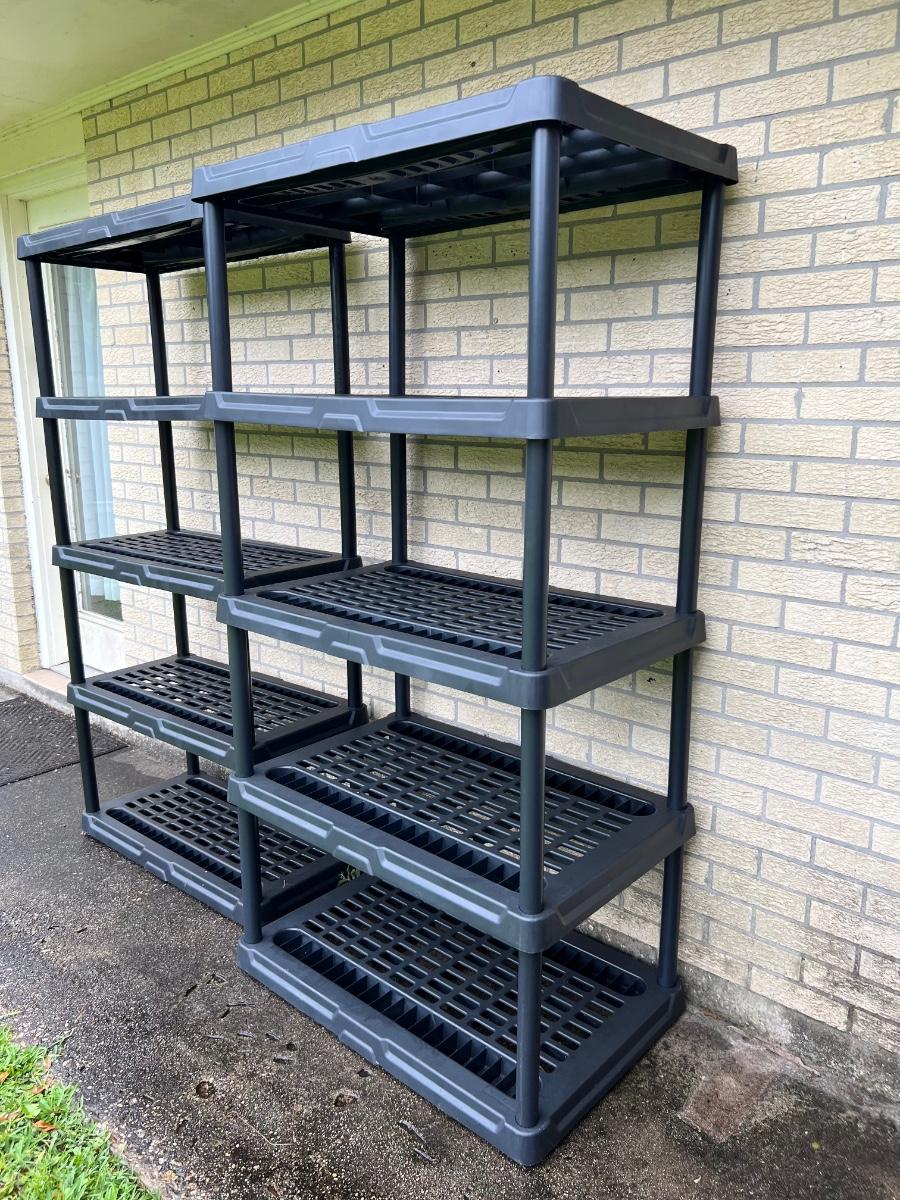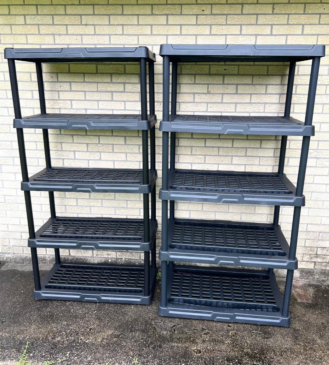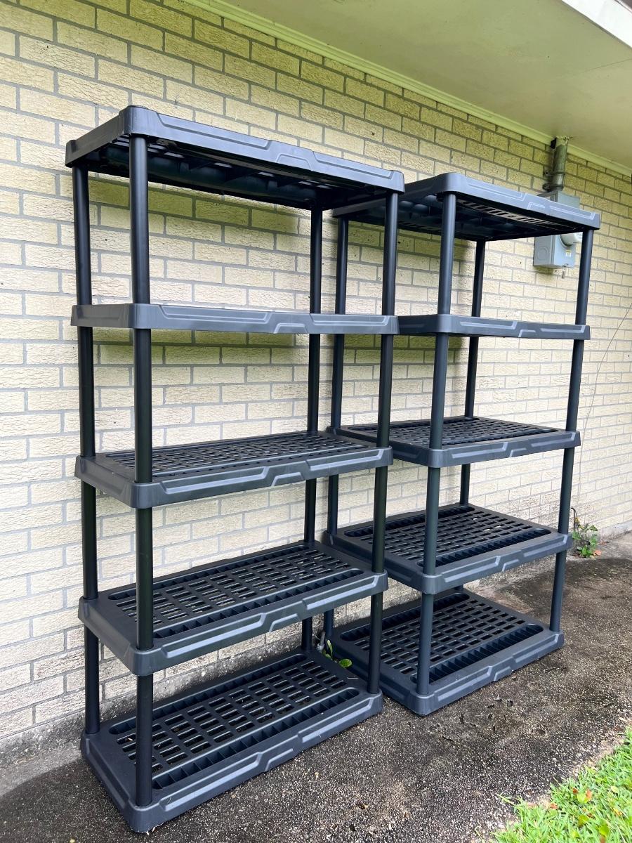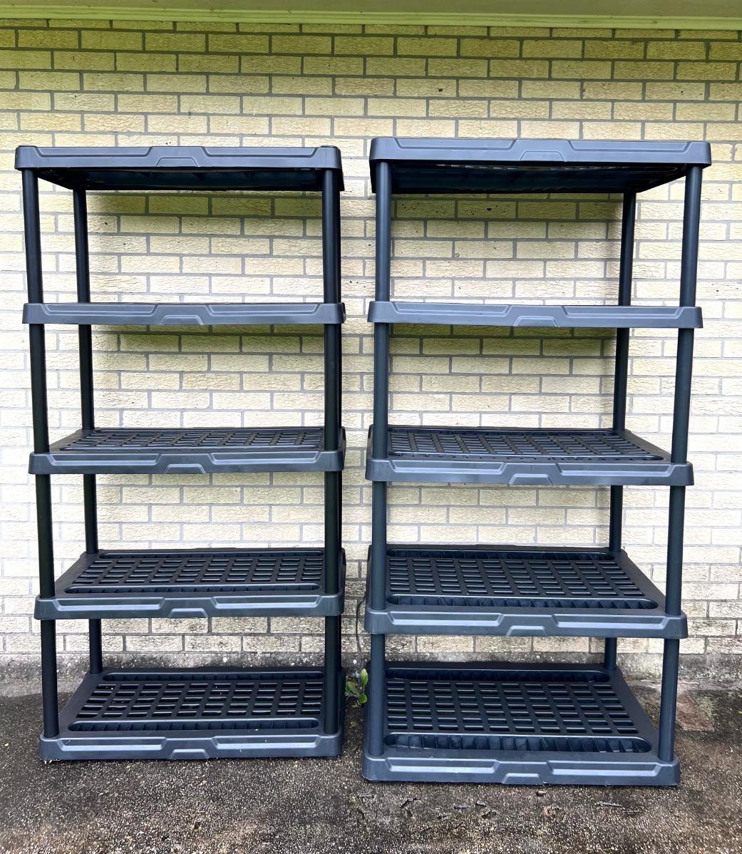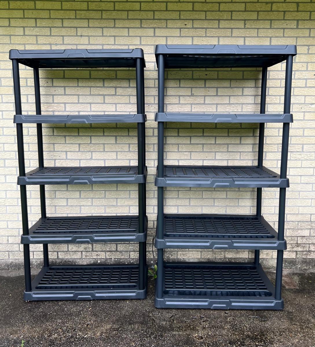 These heavy duty black shelves the bigger of the two measure at 71 inches tall, 35 inches wide and 23 inches deep. The smaller of the two measure 71 inches tall 35 inches wide and 17 1/2 inches deep.