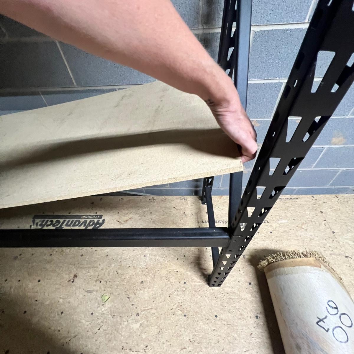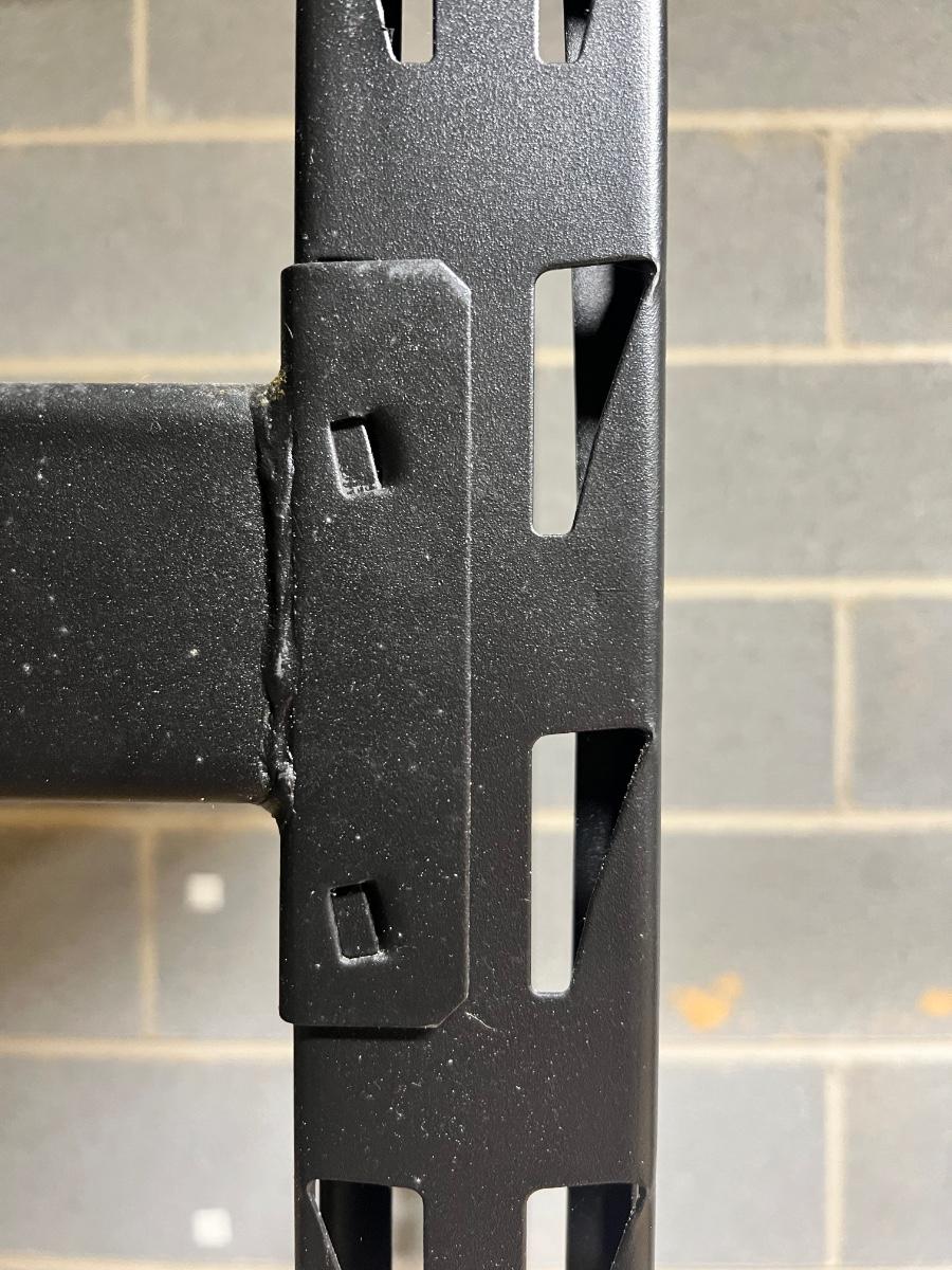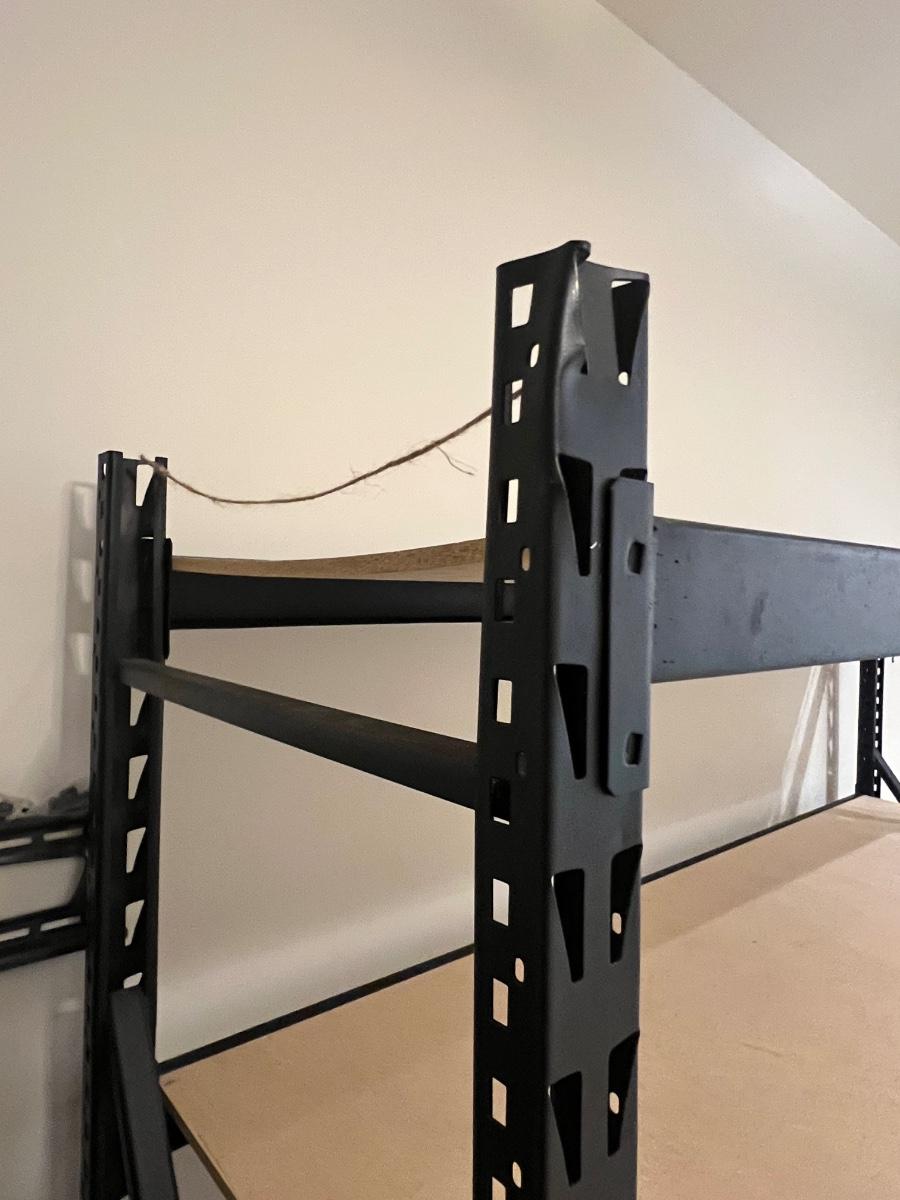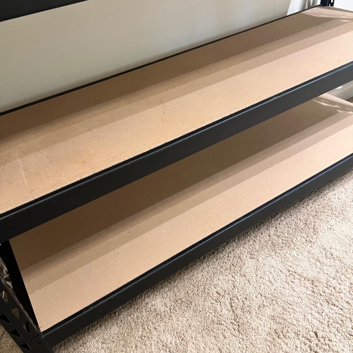 Two almost identical units with the only difference being one unit has more shelves, see pics. Both units are very sturdy powder coated black steel. They are fairly lightweight and have removable particleboard shelves. Shelves are adjustable and interchangeable. Winning bidder will need to dismantle shelves to bring upstairs. No tools are required; winner may want to bring a mallet to help dislodge shelves.