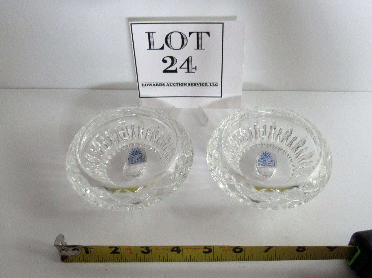 Two Heavy Lead Crystal Matching Double Candle Holders, Princess House