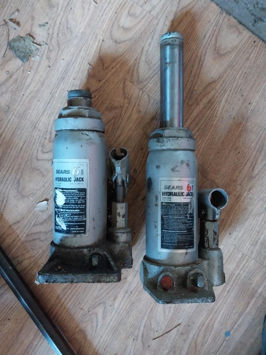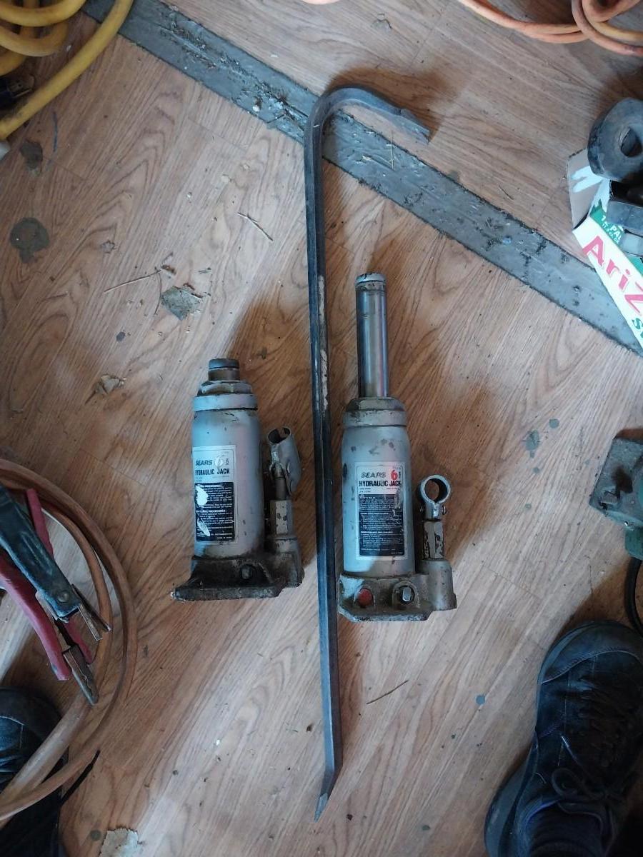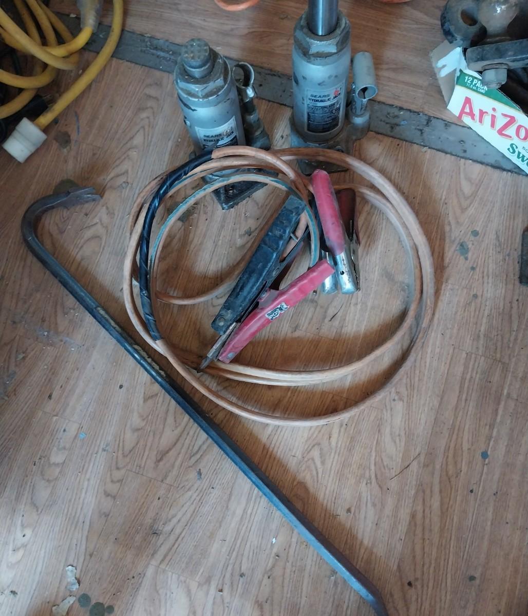 TWO HYDRAULIC JACKS AND JUMPER CABLES
