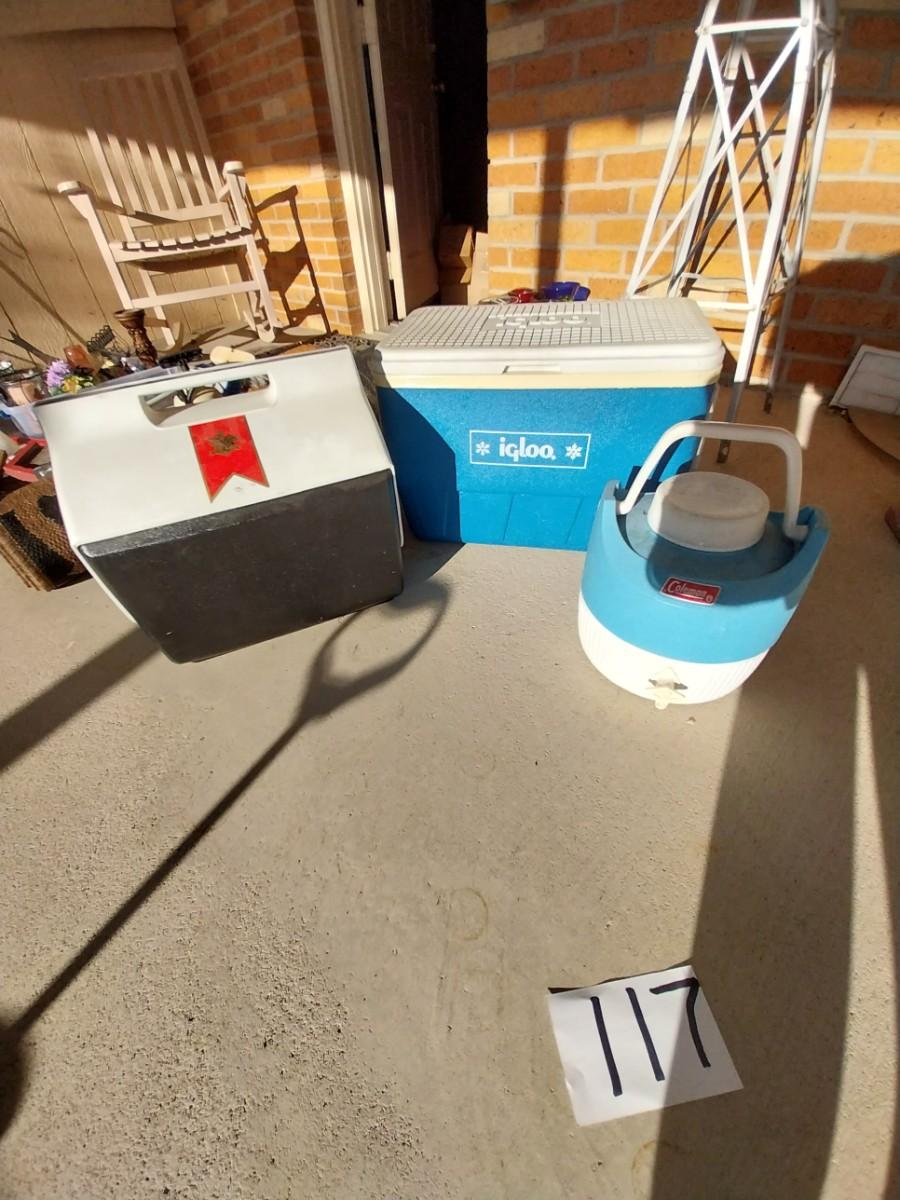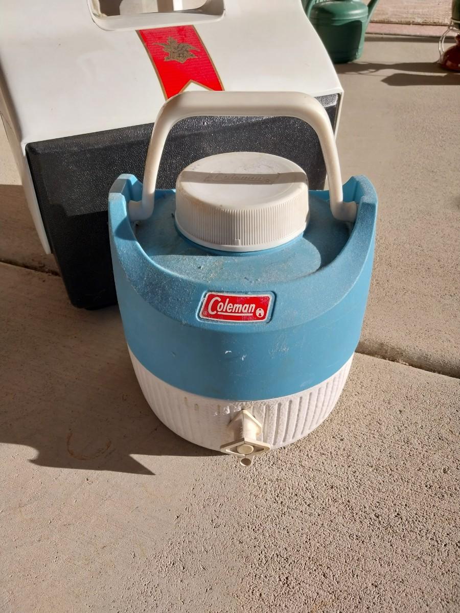 TWO ICE COOLERS AND COLEMAN WATER JUG