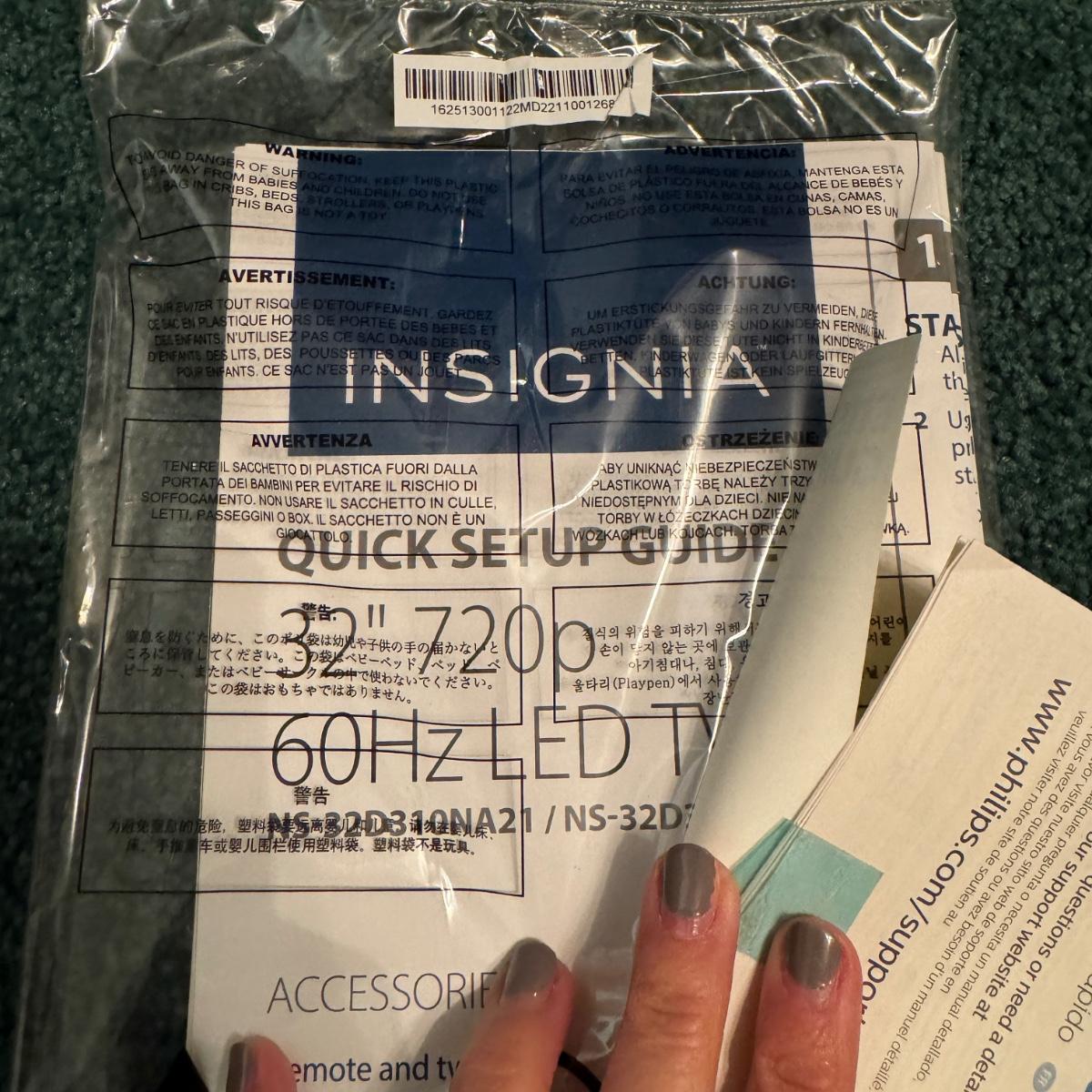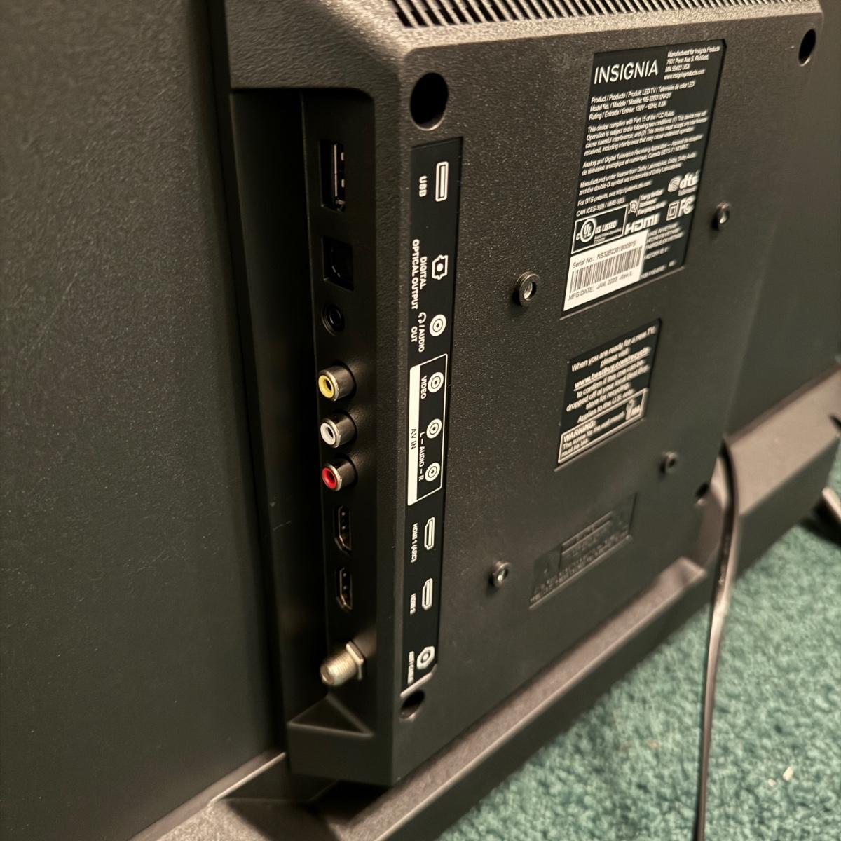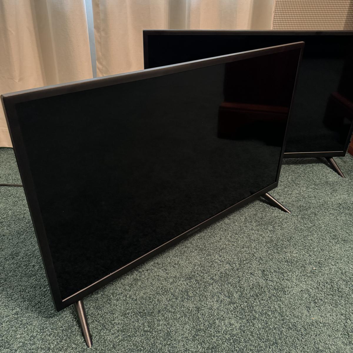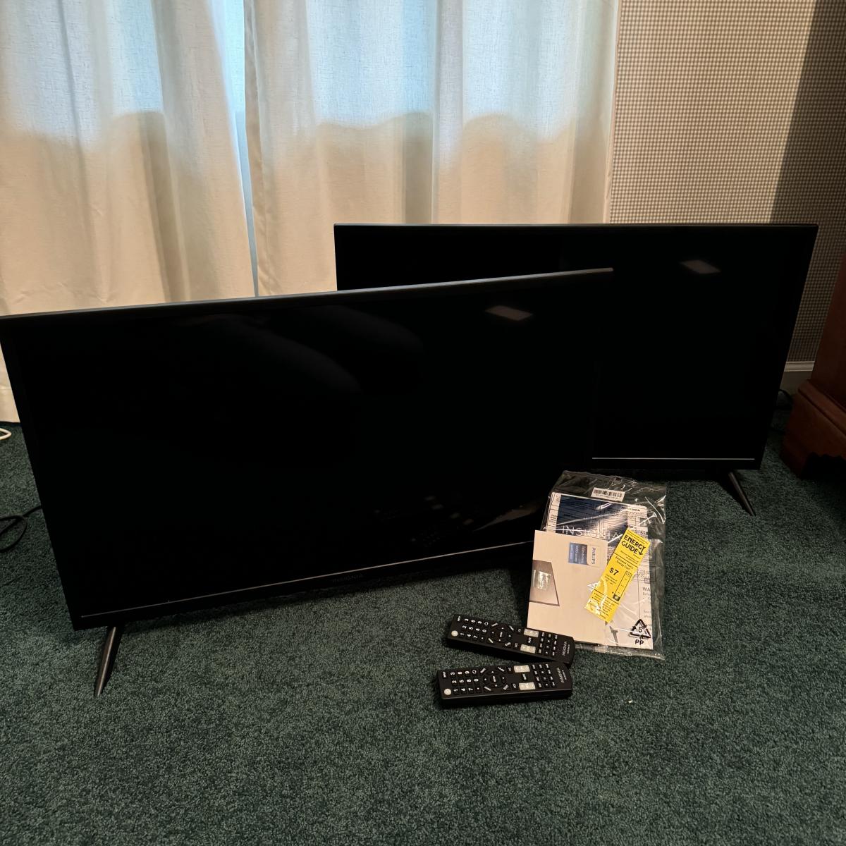 Two Insignia 32” TVs. Both are the same brand and say Mfg Date: January 2023. Both come with a remote control and one packet of original paperwork. Both powered on when plugged in. Local Pick Up Only.
