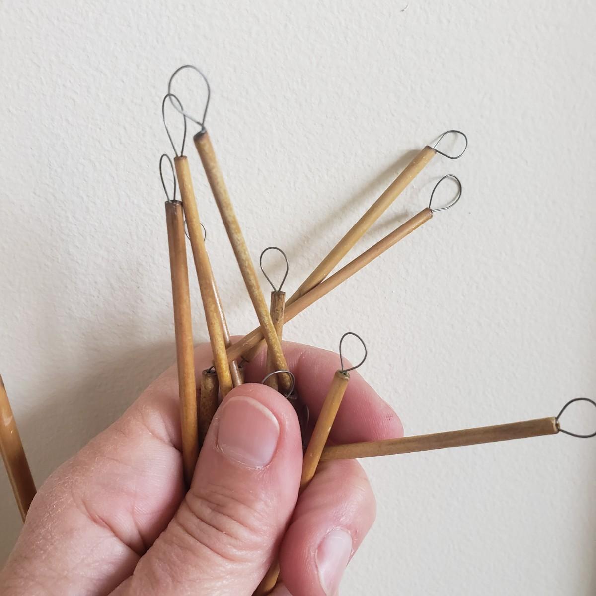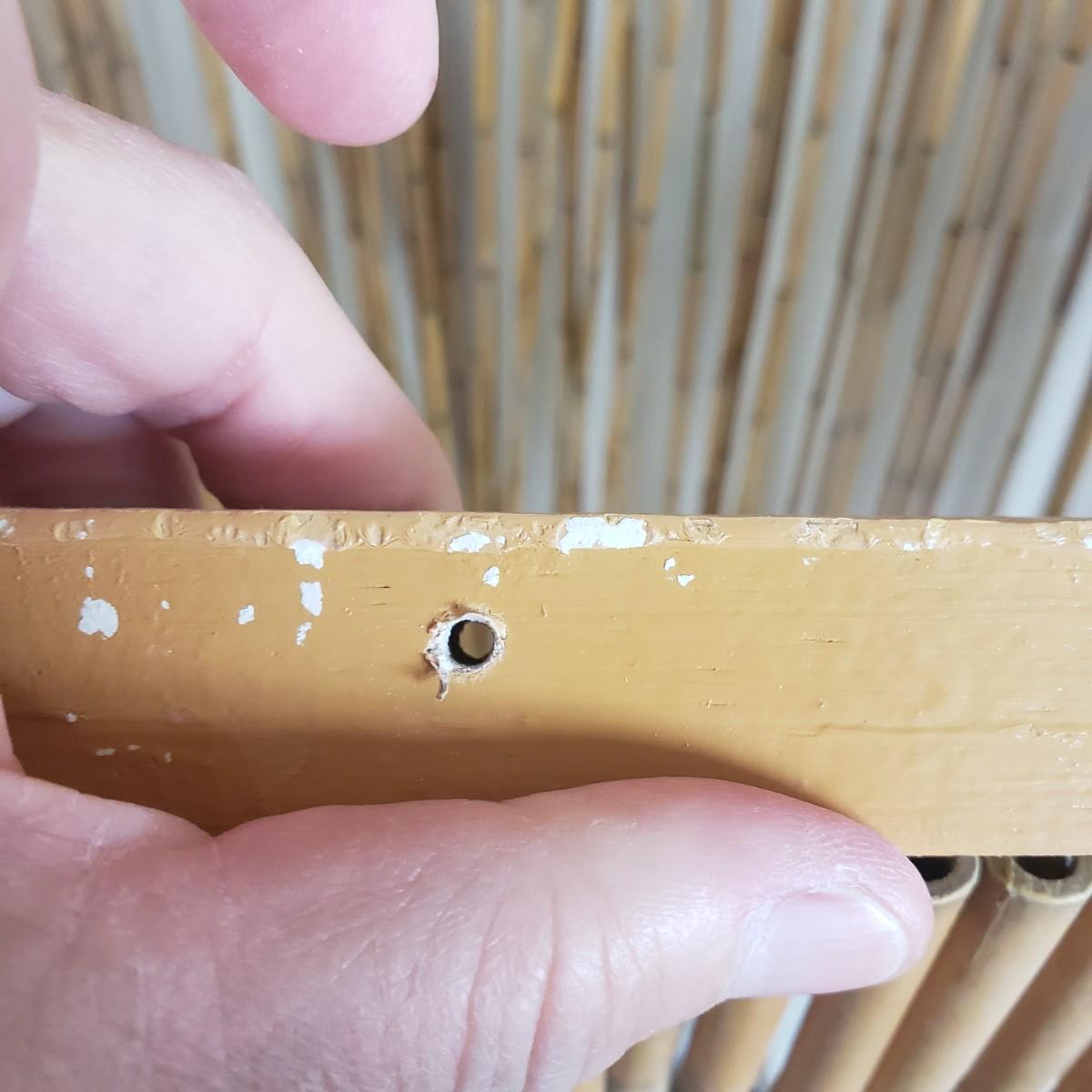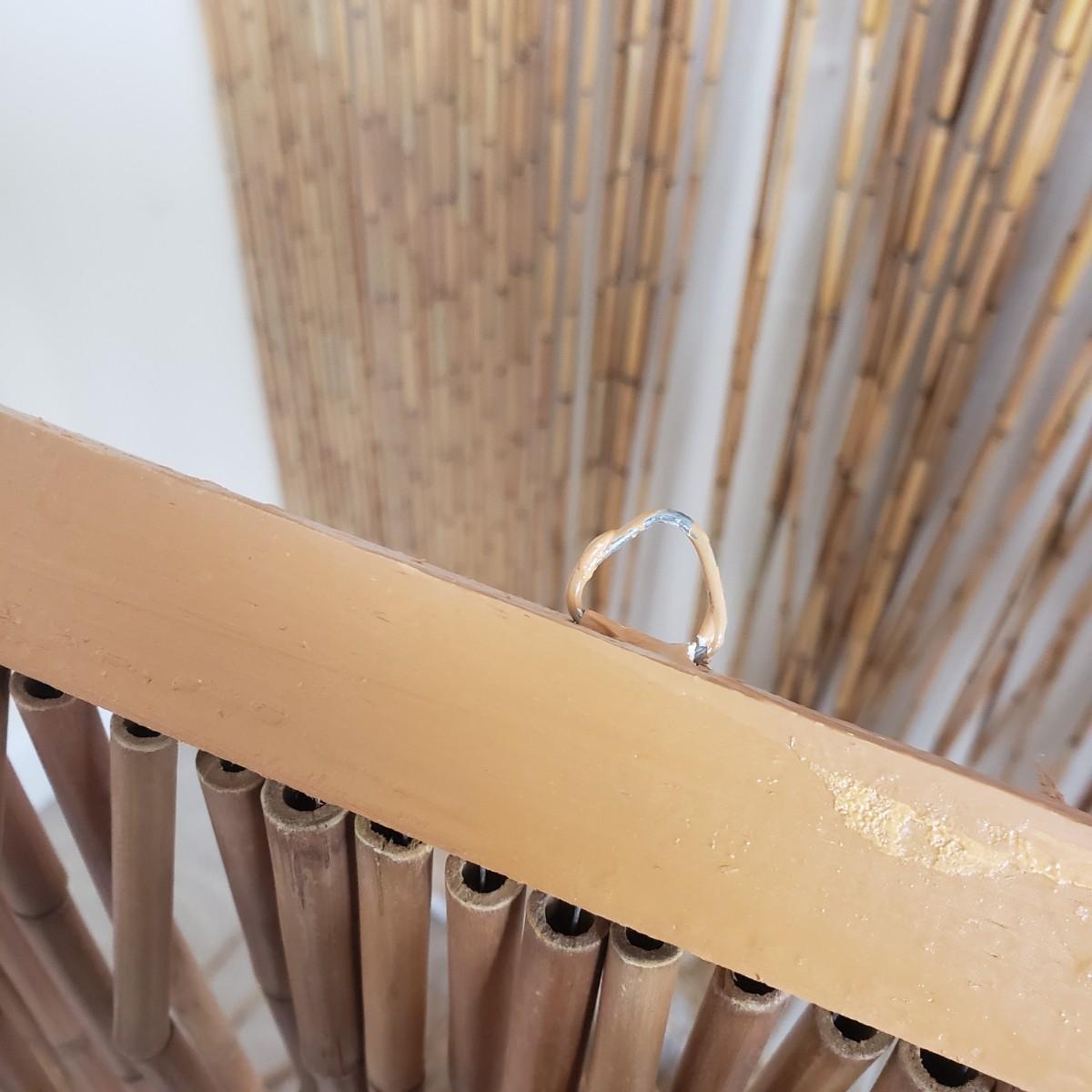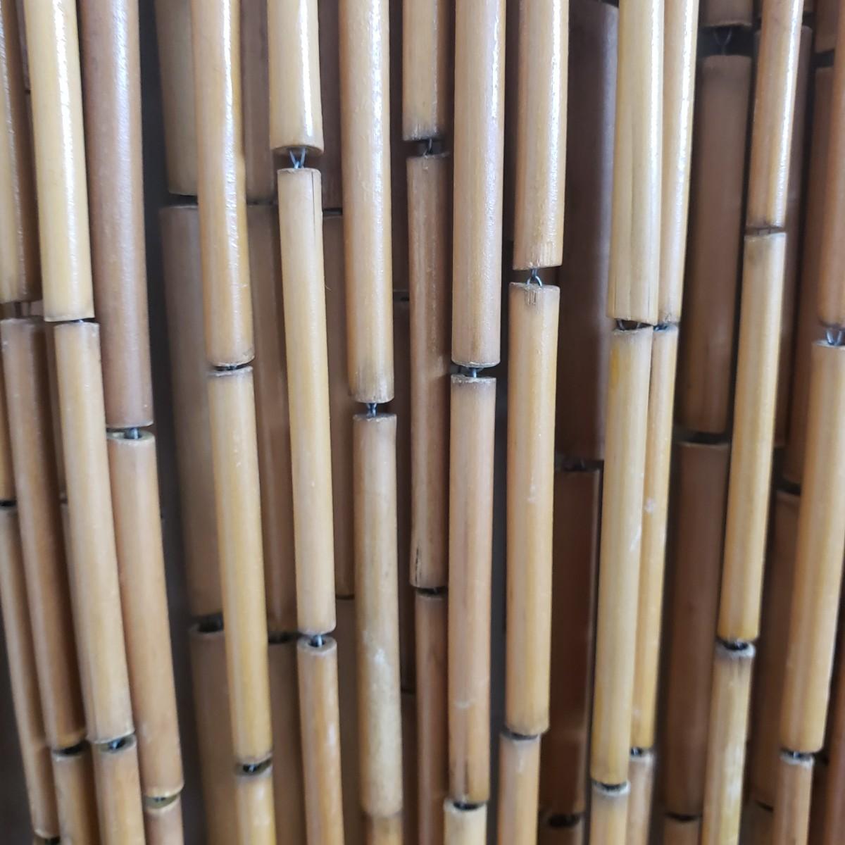 These identical bamboo curtains measure 35.5" x 78". The curtain bamboo parts are threaded with wire and attached to the brace. The brace has two hooks and a hole in the center, where it was screwed into the wall for added support.