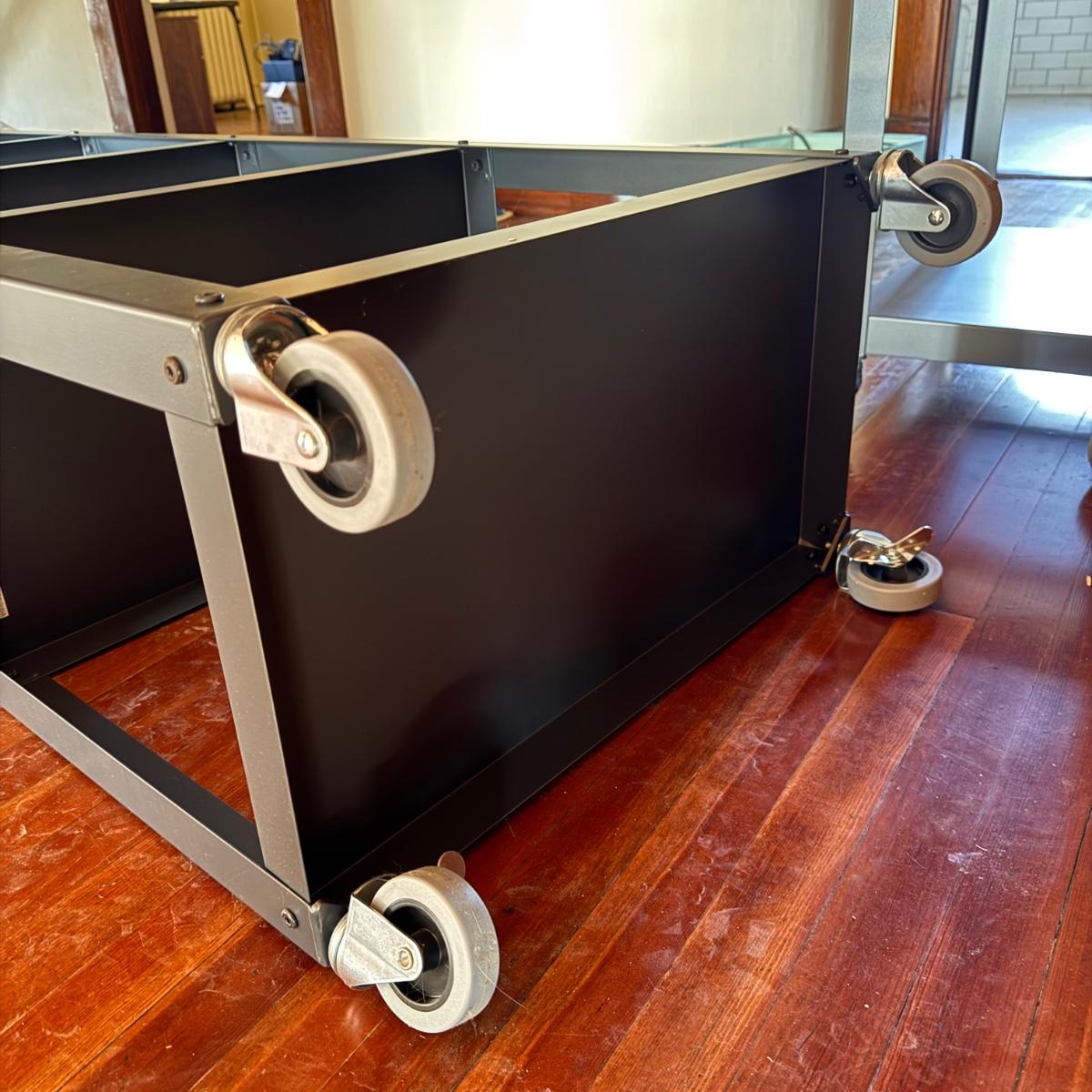 Two Identical Metal Shelves on Wheels (UO-DZ)