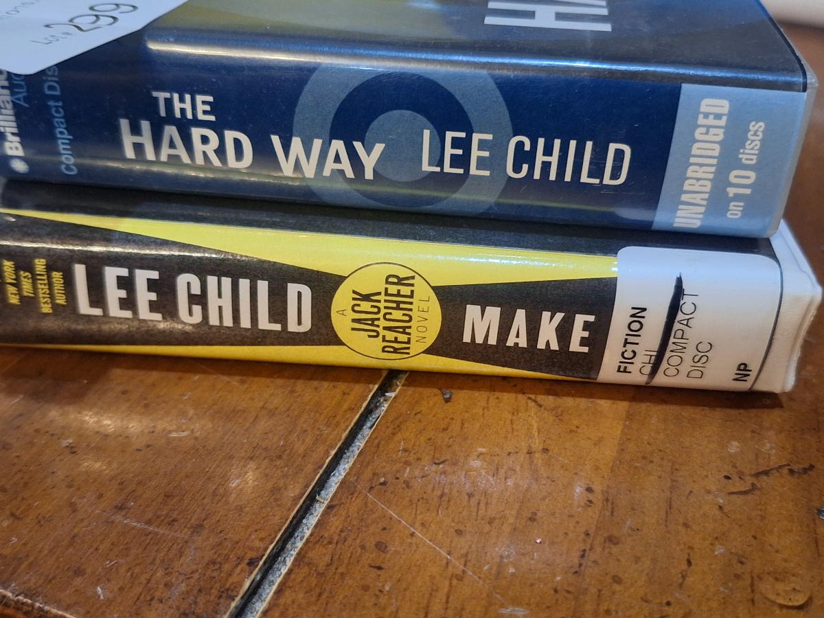 two Jack Reacher audiobooks by Lee Child: Make Me and The Hard Way.
