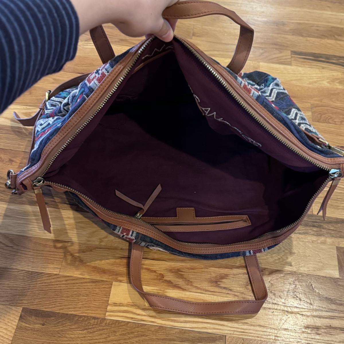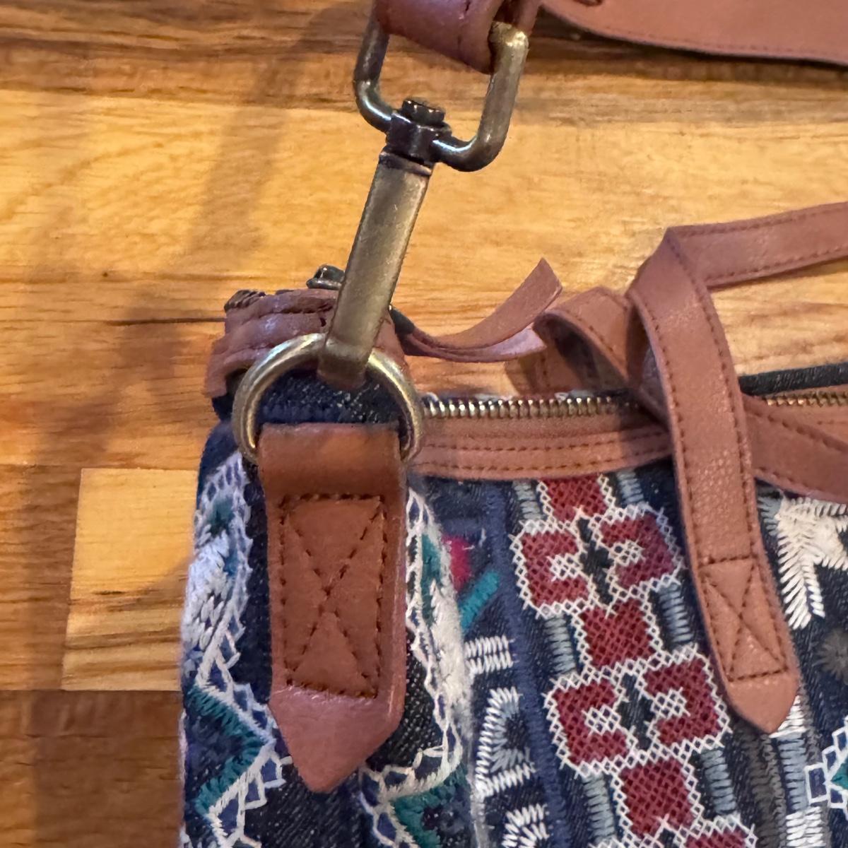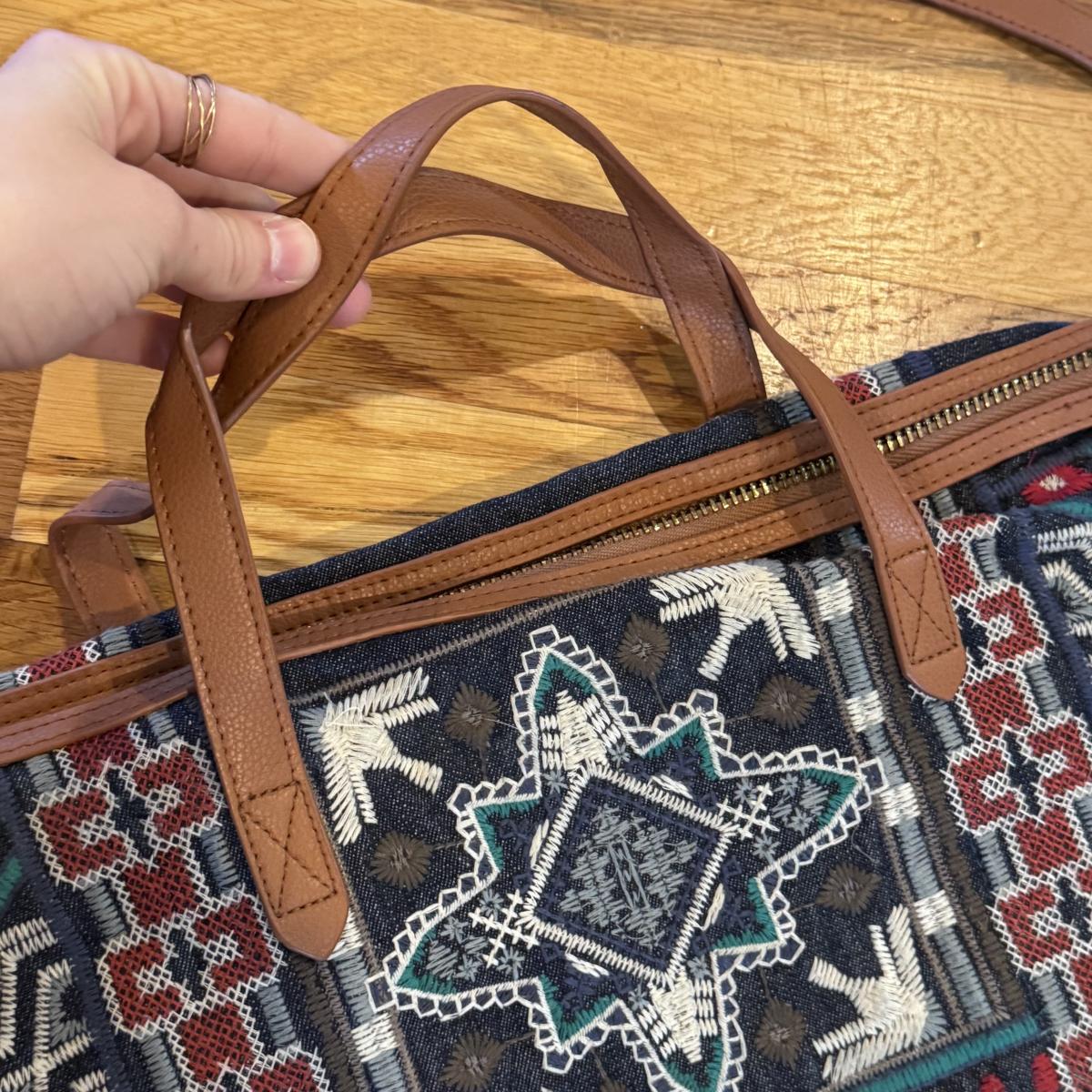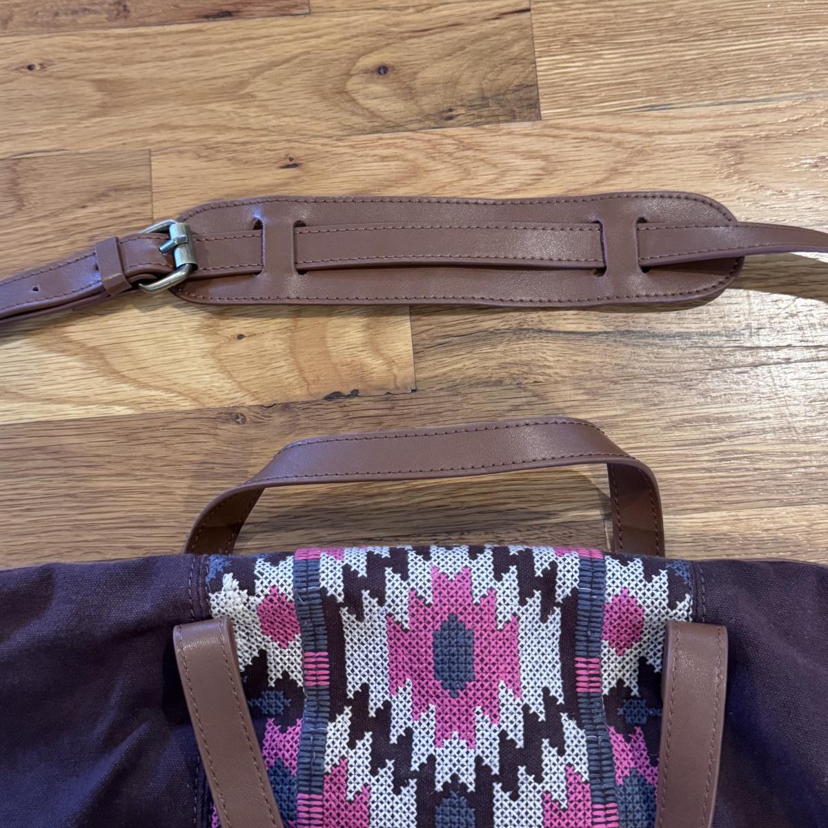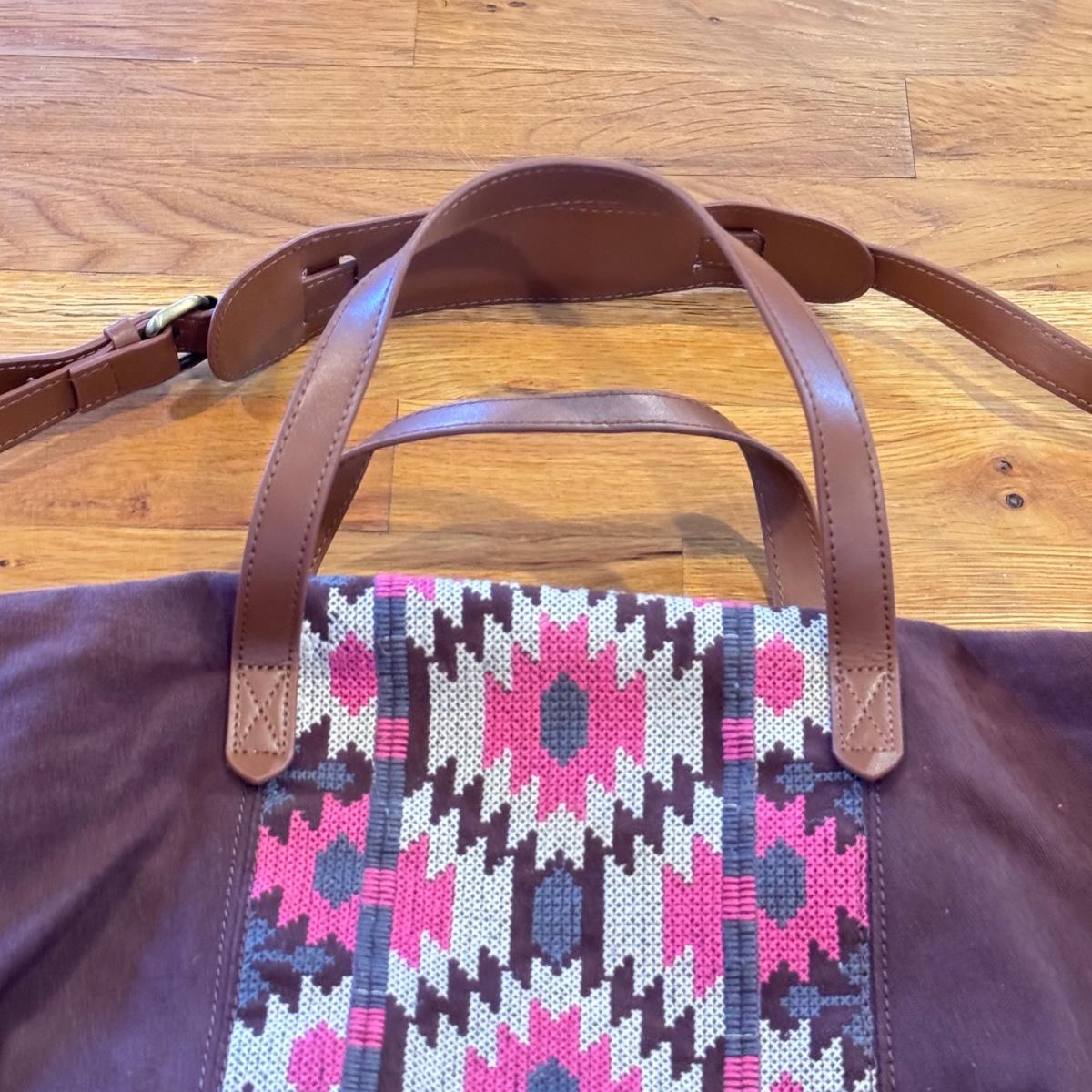 This lot includes two lovely Johnny Was weekend totes in a bohemian style. Both bags are made of cotton with embroidery and leather features. The burgundy/brown colored bag has a paint stain, smaller than a dime, on the back of it. Both bags individually measure 23” x 7” x 24”H with the strap included - 17” without the strap. Shipping available.