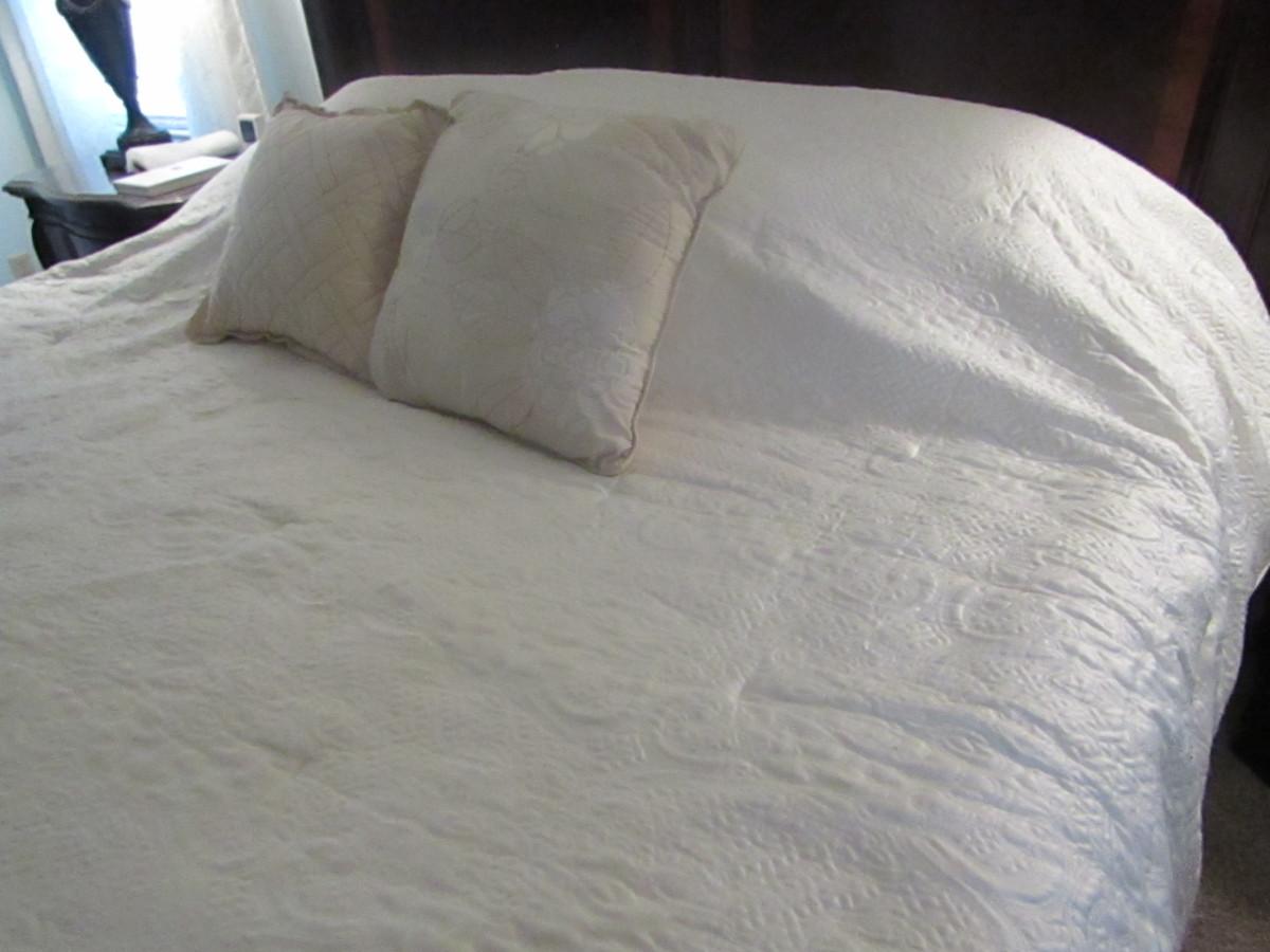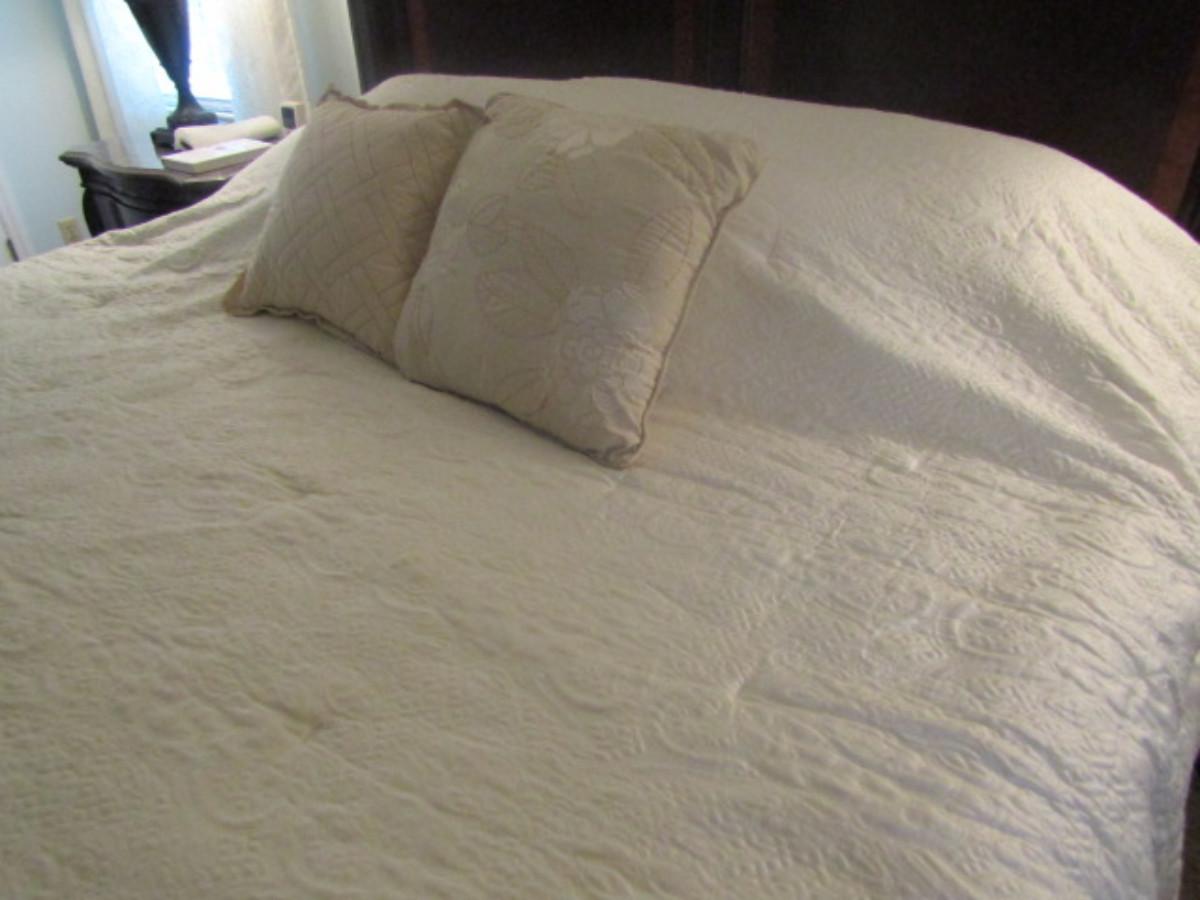 Two King Size Coverlets with Pillow Shams and Decorative Pillows