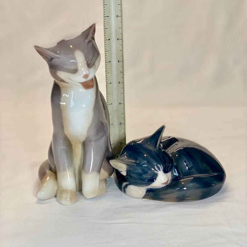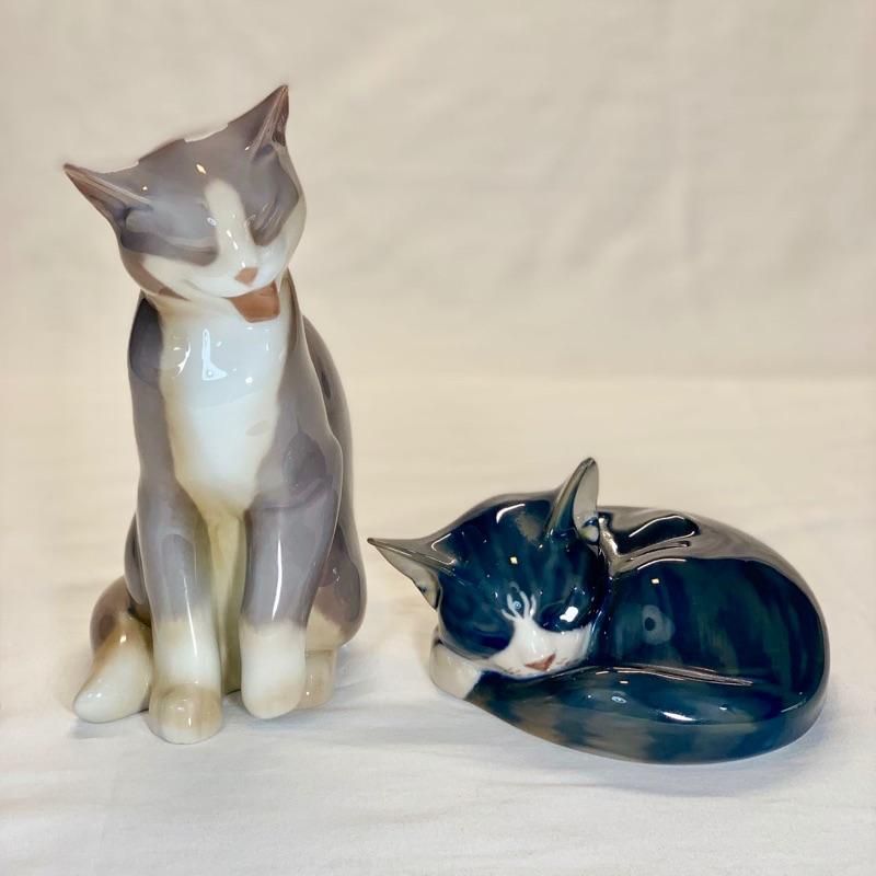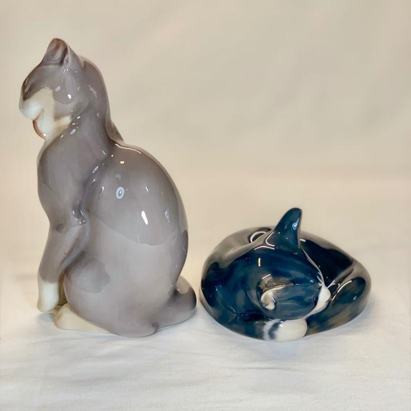 One Royal Copenhagen gray sleeping kitten figurine and other kitten sitting both made in Denmark, excellent condition. Shipping available for extra cost.