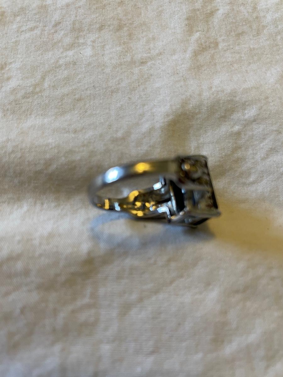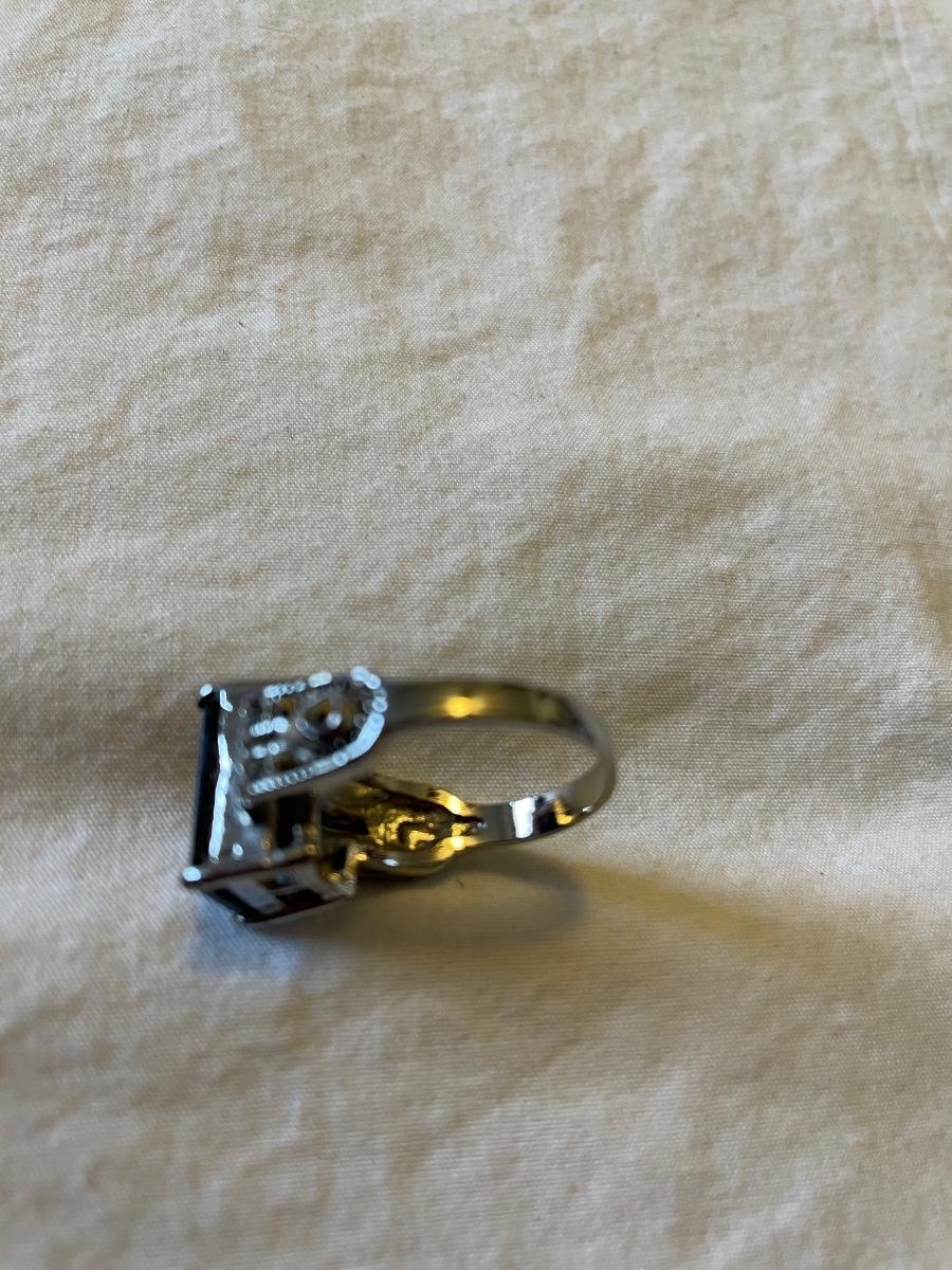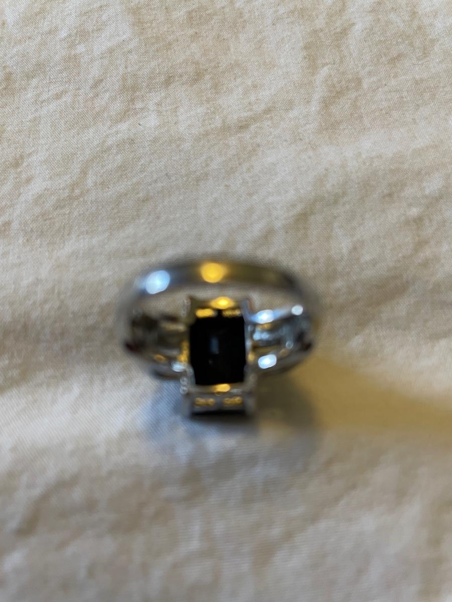 TWO LADIES RINGS. ONE LADIES STERLING SILVER RING ONE BLACK STONE SILVER TONE RING