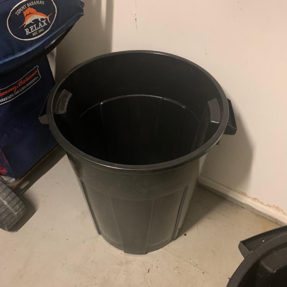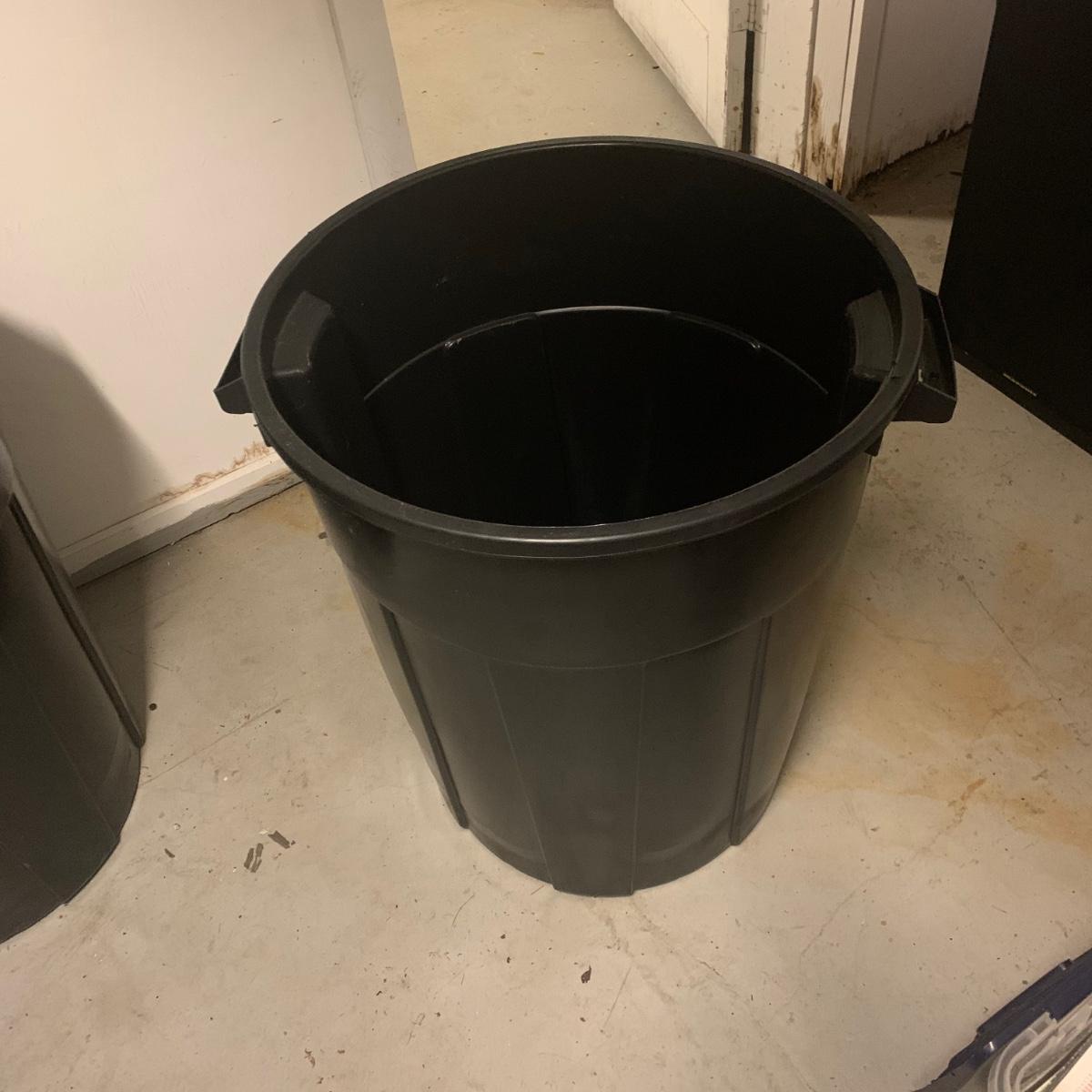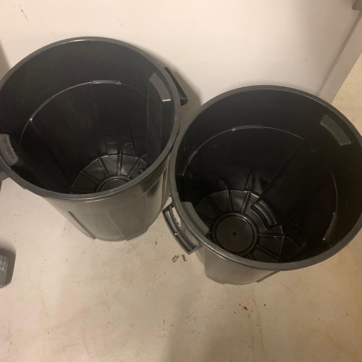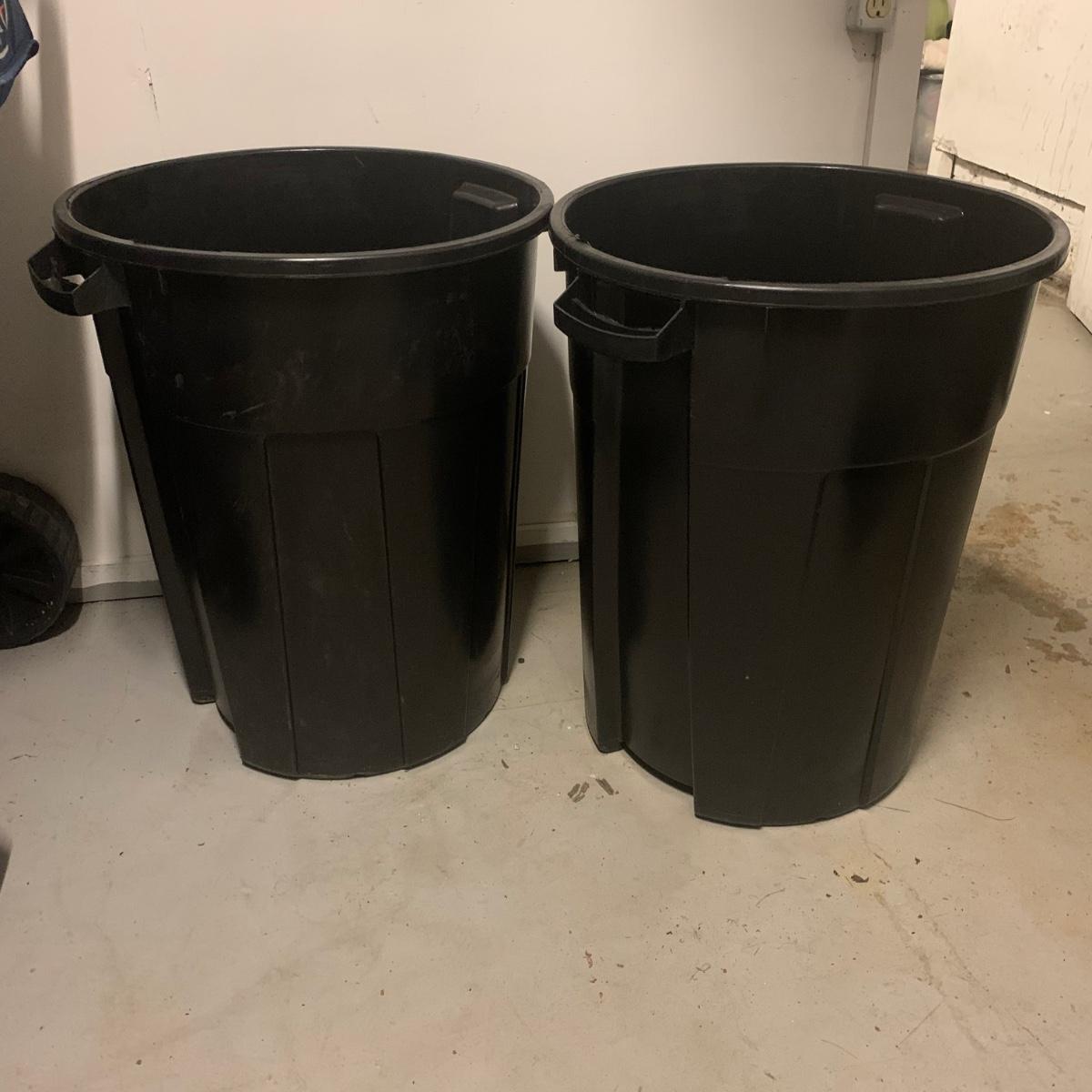 Two large plastic trashcans with handles but no lids. Each is clean and in good condition. Cannot verify but look like 55 gallon size. 27.5” tall and 21.5” diameter top opening (not including handles). Local pick up only.