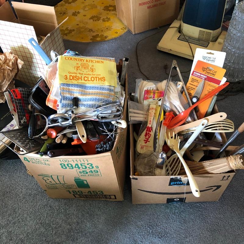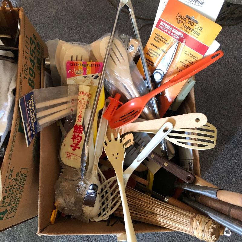 Two Large Boxes of Vintage & Current Kitchen Tools