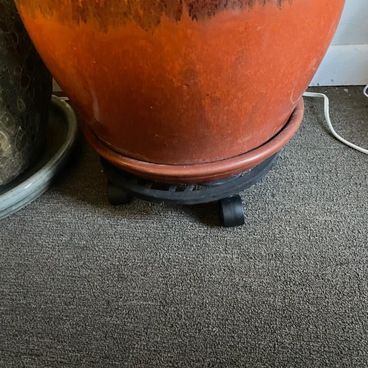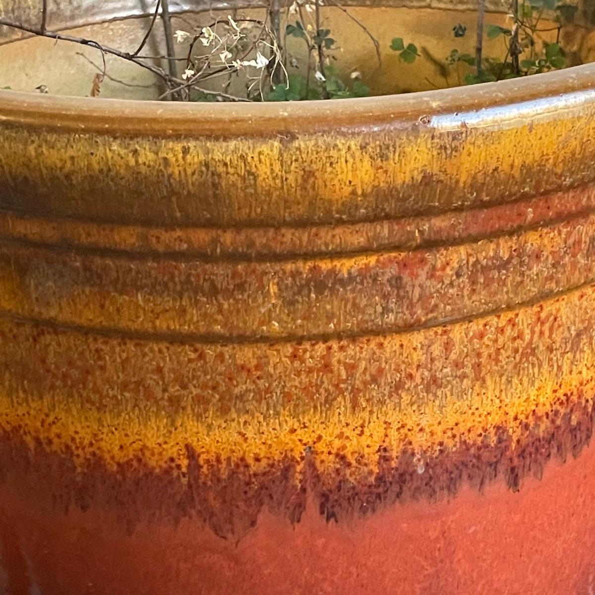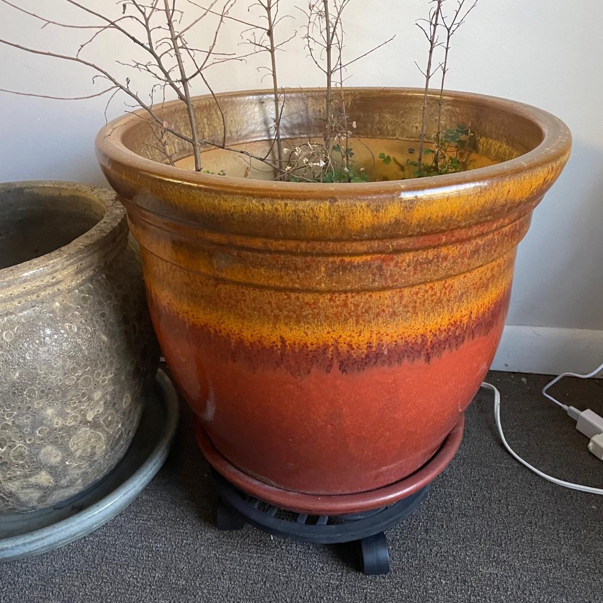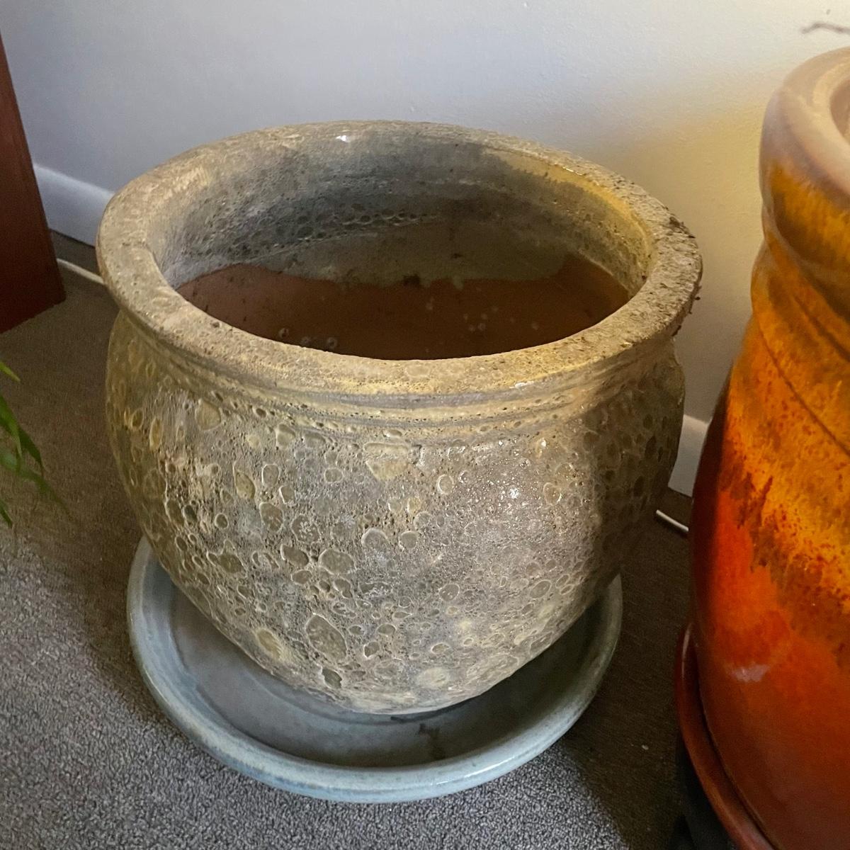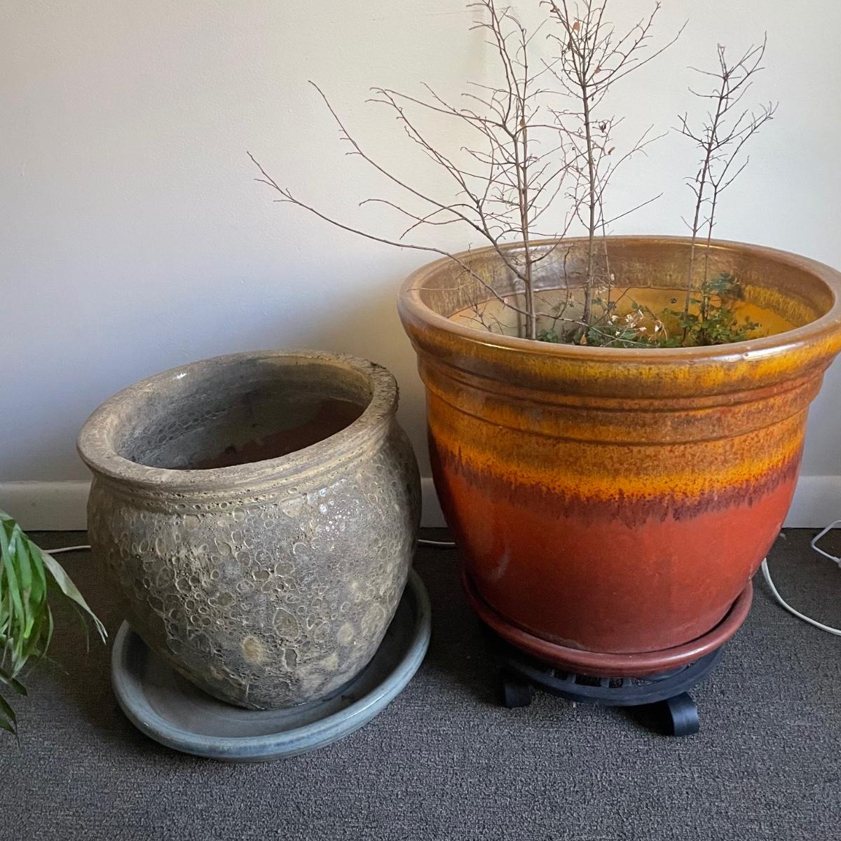 Both of these large ceramic planters come with bases but the blue dish isn’t an exact match to it’s pot.