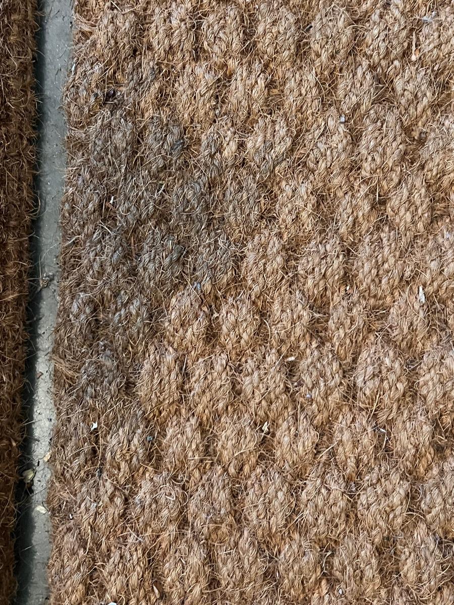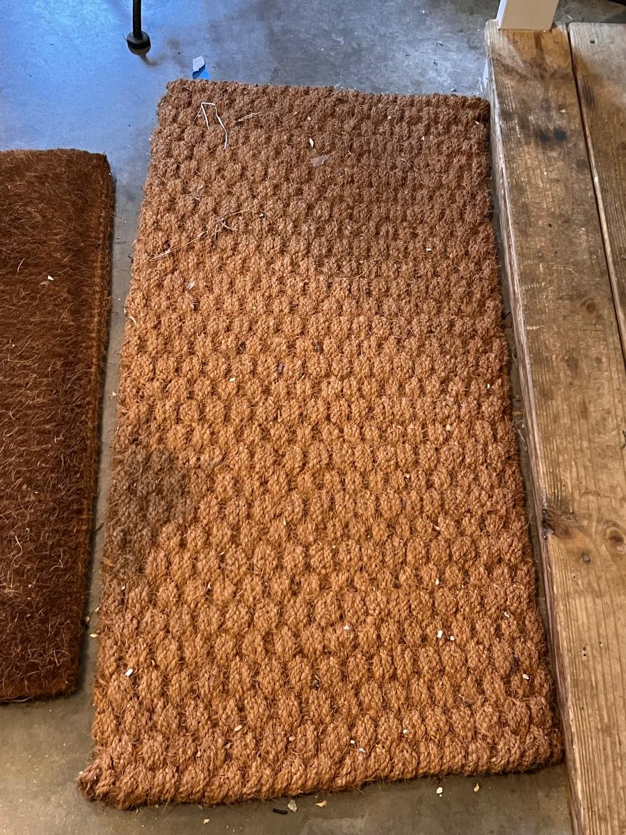 The larger of the two of these large coir doormats measures 23” x 48”; it has an area that is slightly darker than the rest on one side, but it can be reversed.