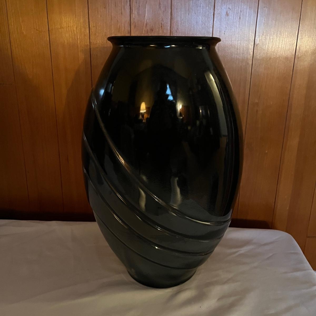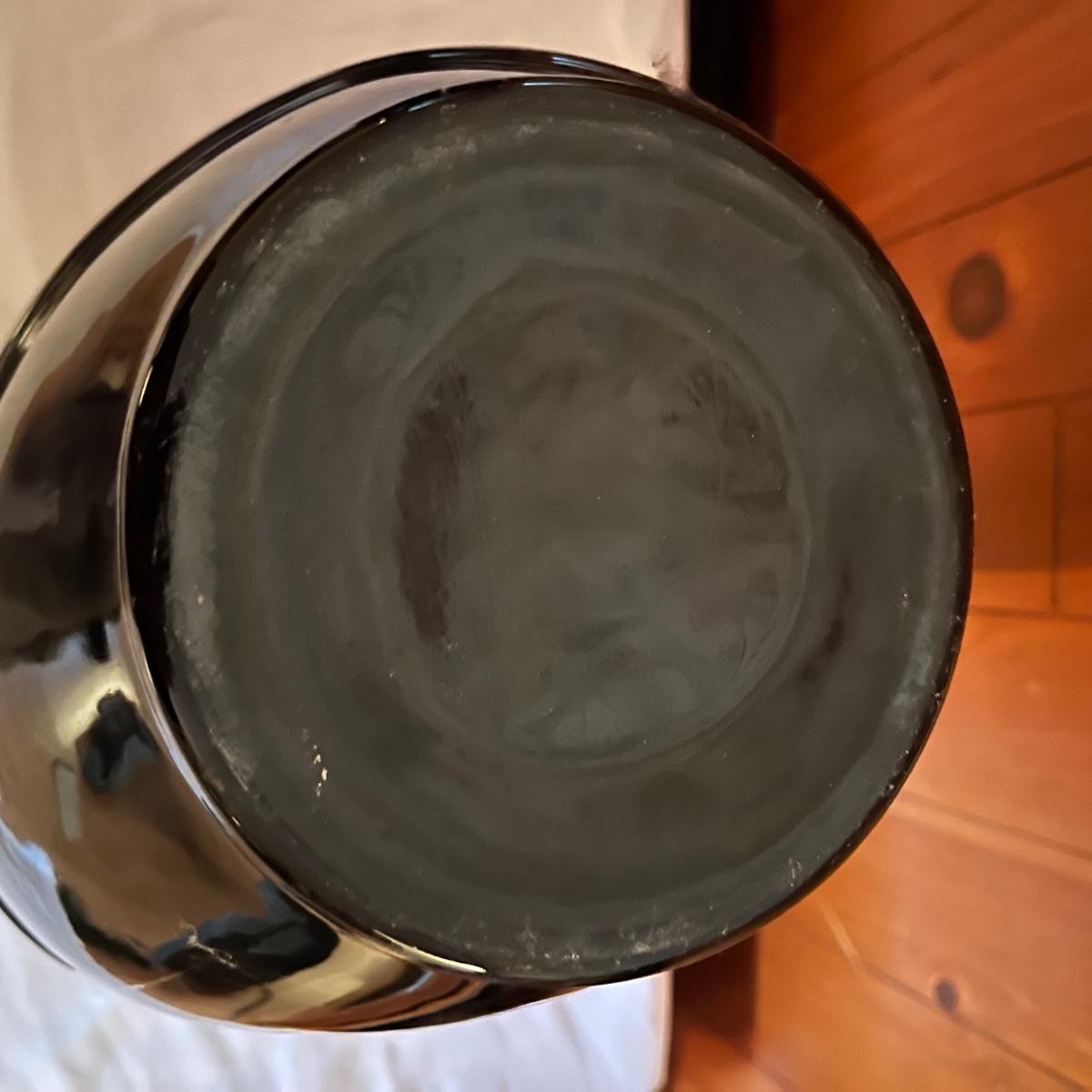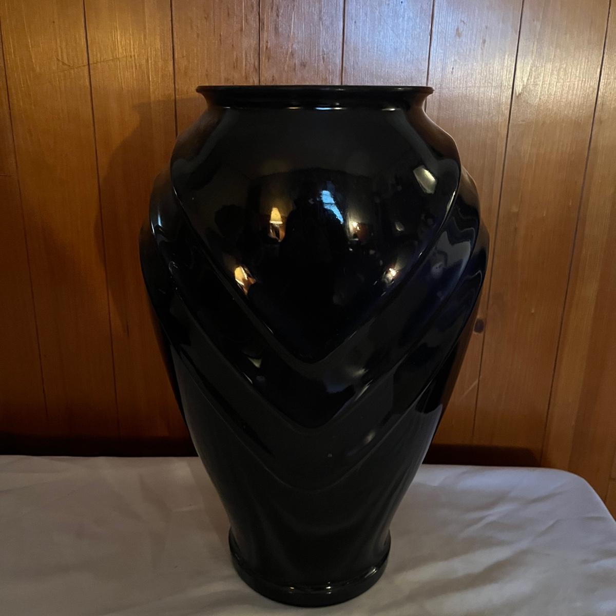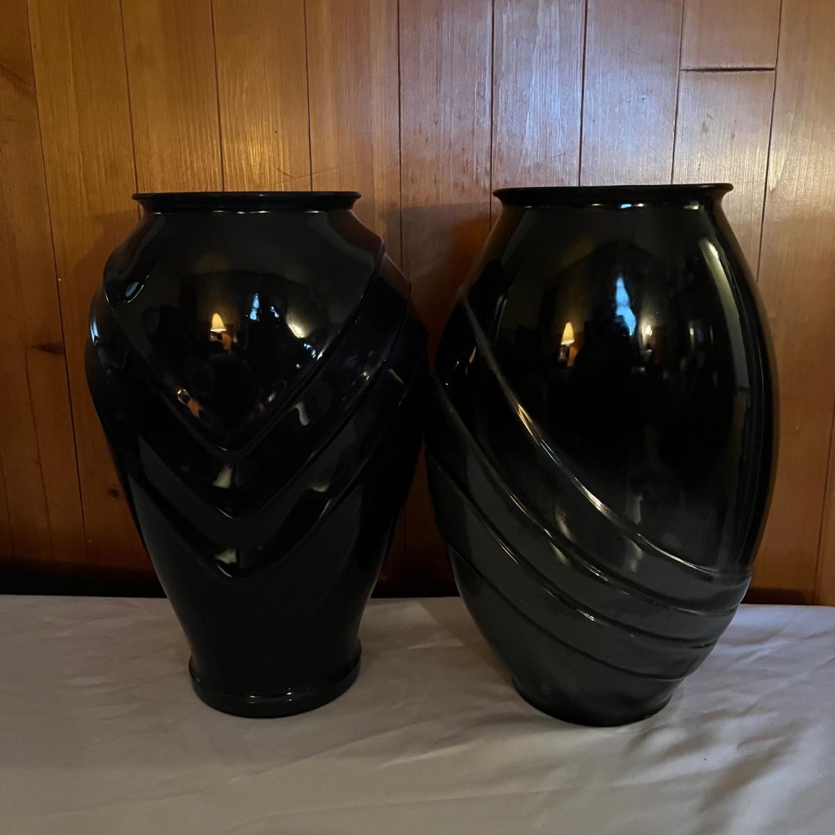 Lot includes two large glass vases that appear to be painted on the inside. Vases measure 7” x 9.5” x 16”.
