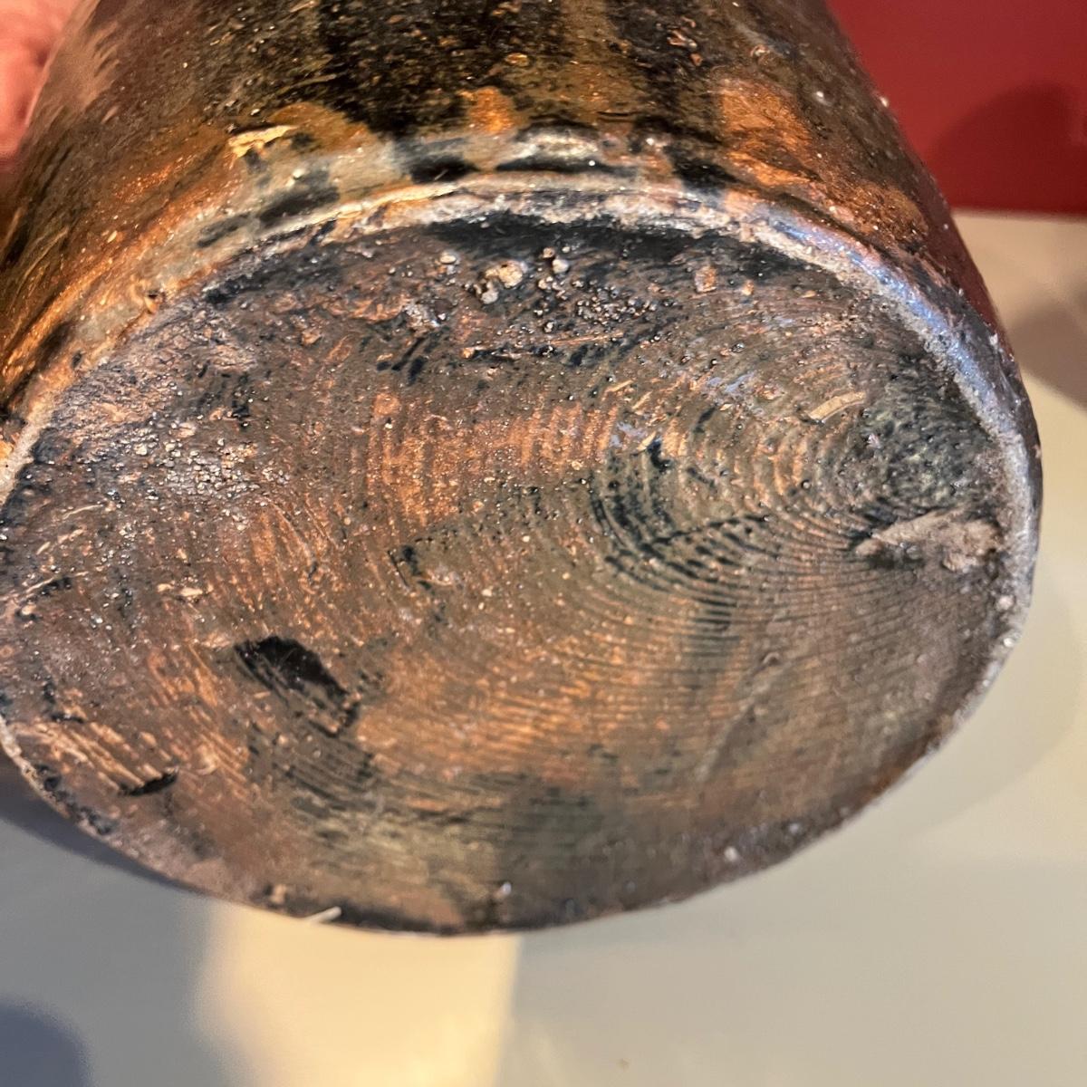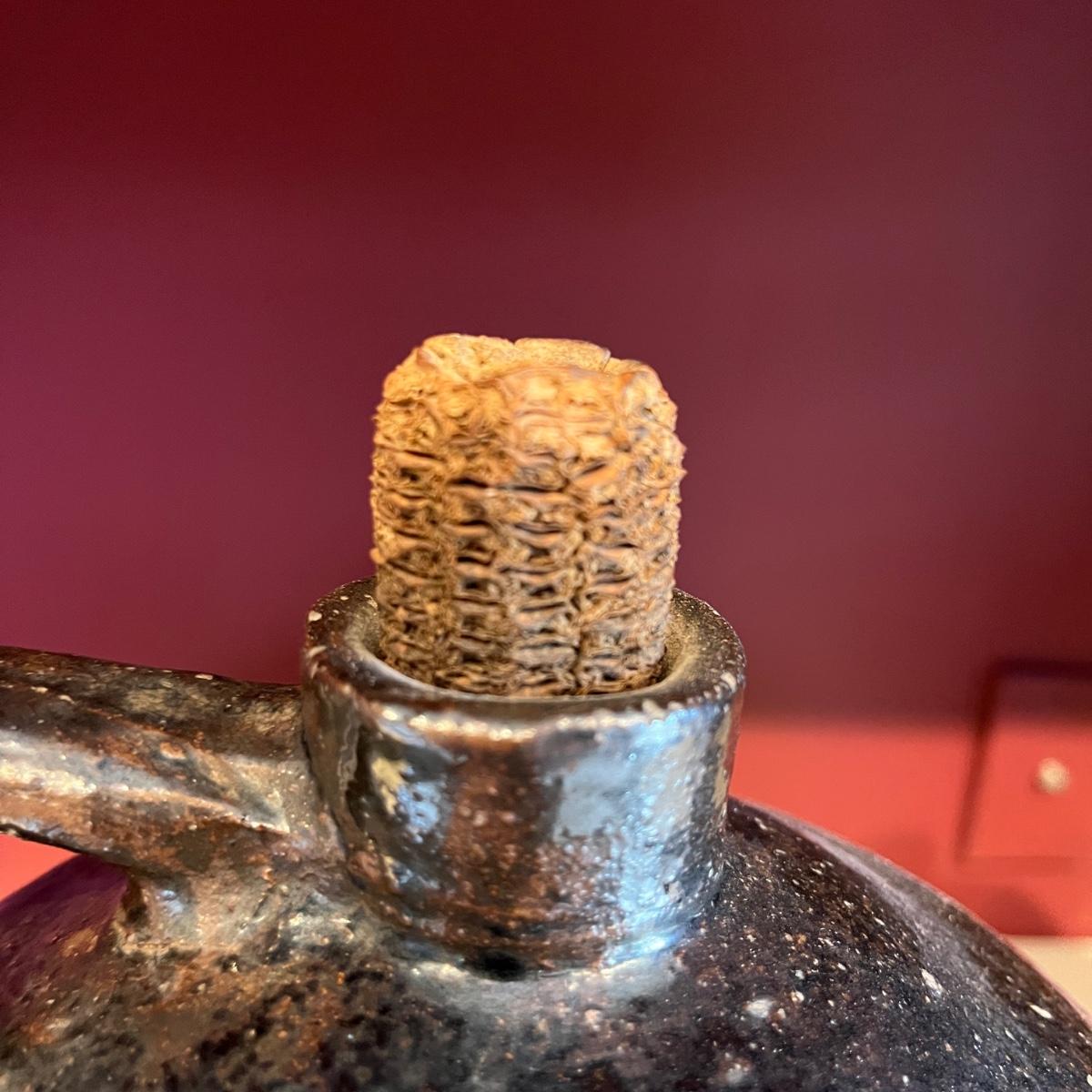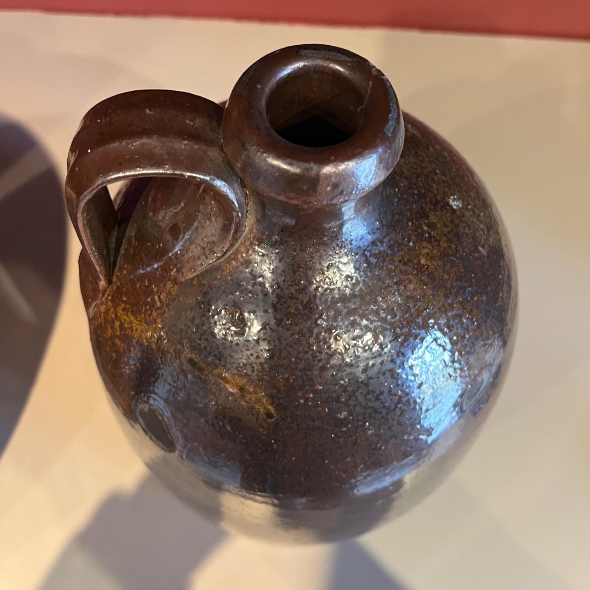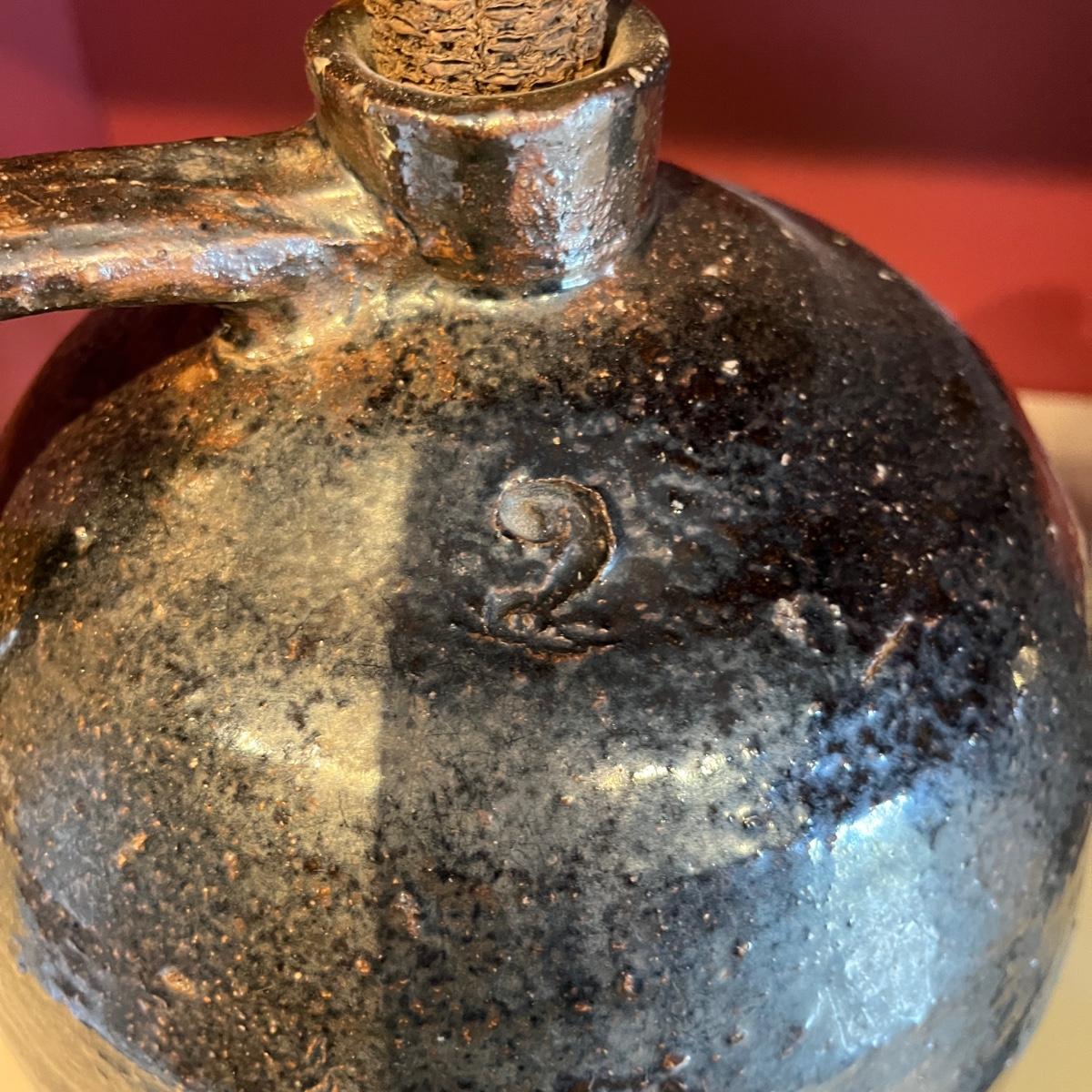 Lot contains a two gallon Ironstone pottery jug with corn cob top and a smaller Ironstone jug. Two gallon jug measures 8”D x 14”H.