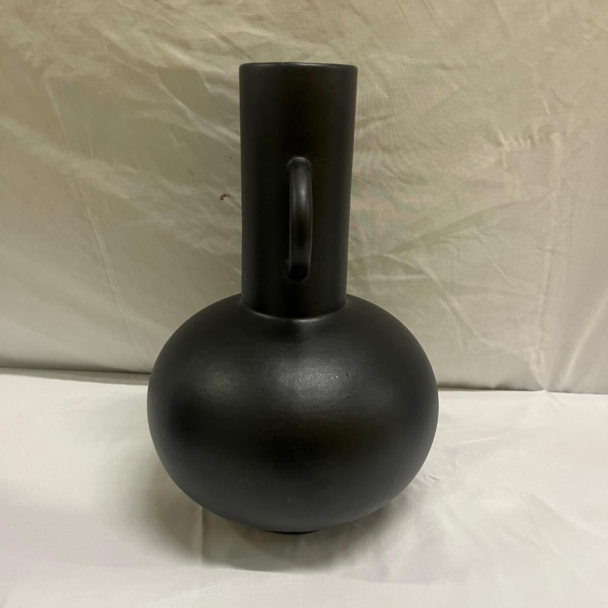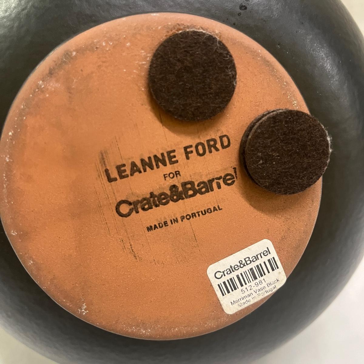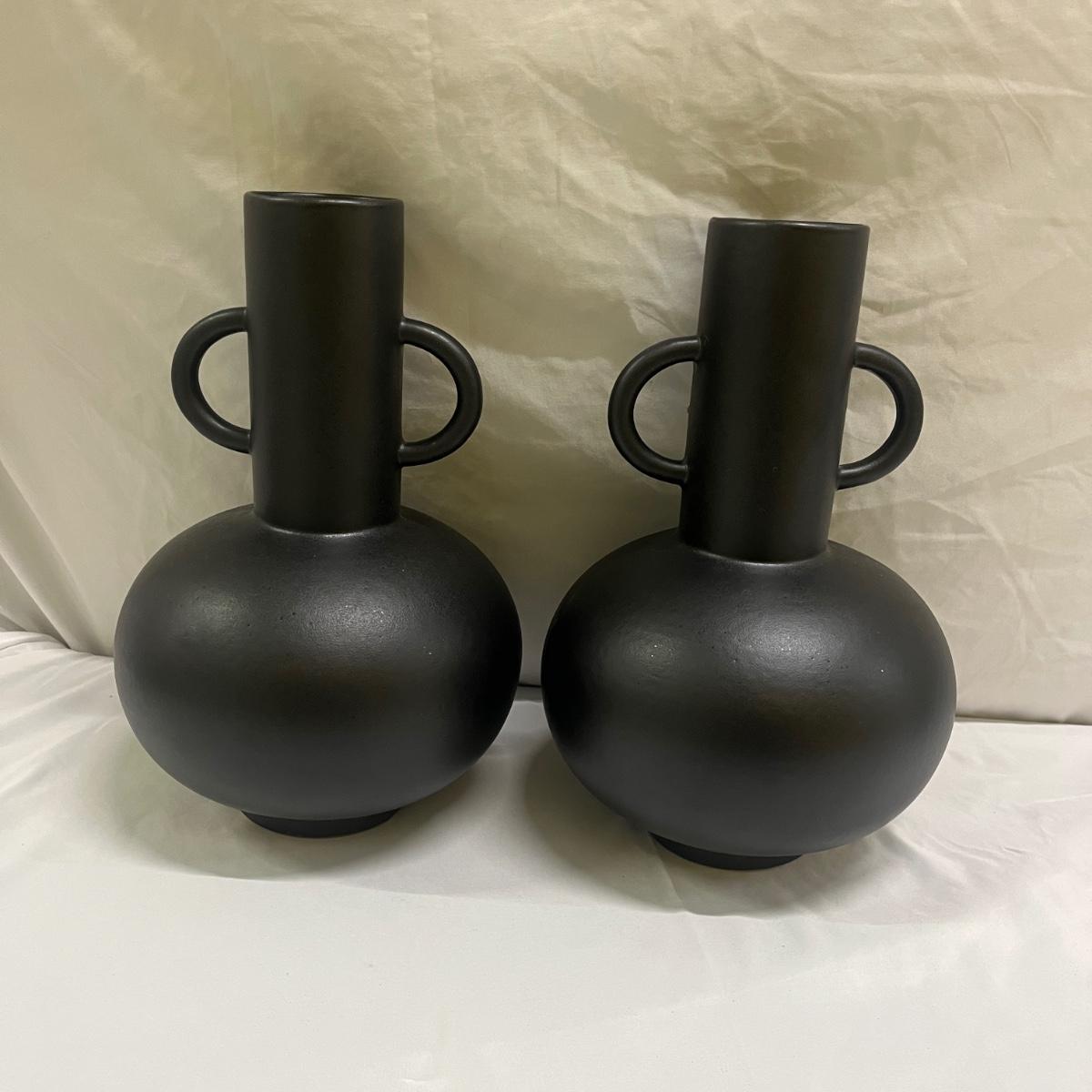 Lot includes two vases that appear to be The Merriman vase by Leanne Ford for Crate & Barrel. They are marked made in Portugal. They look to be terracotta with a black glaze. Vases measure 8.5”D x 14”H.