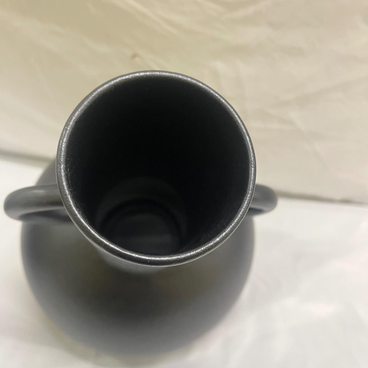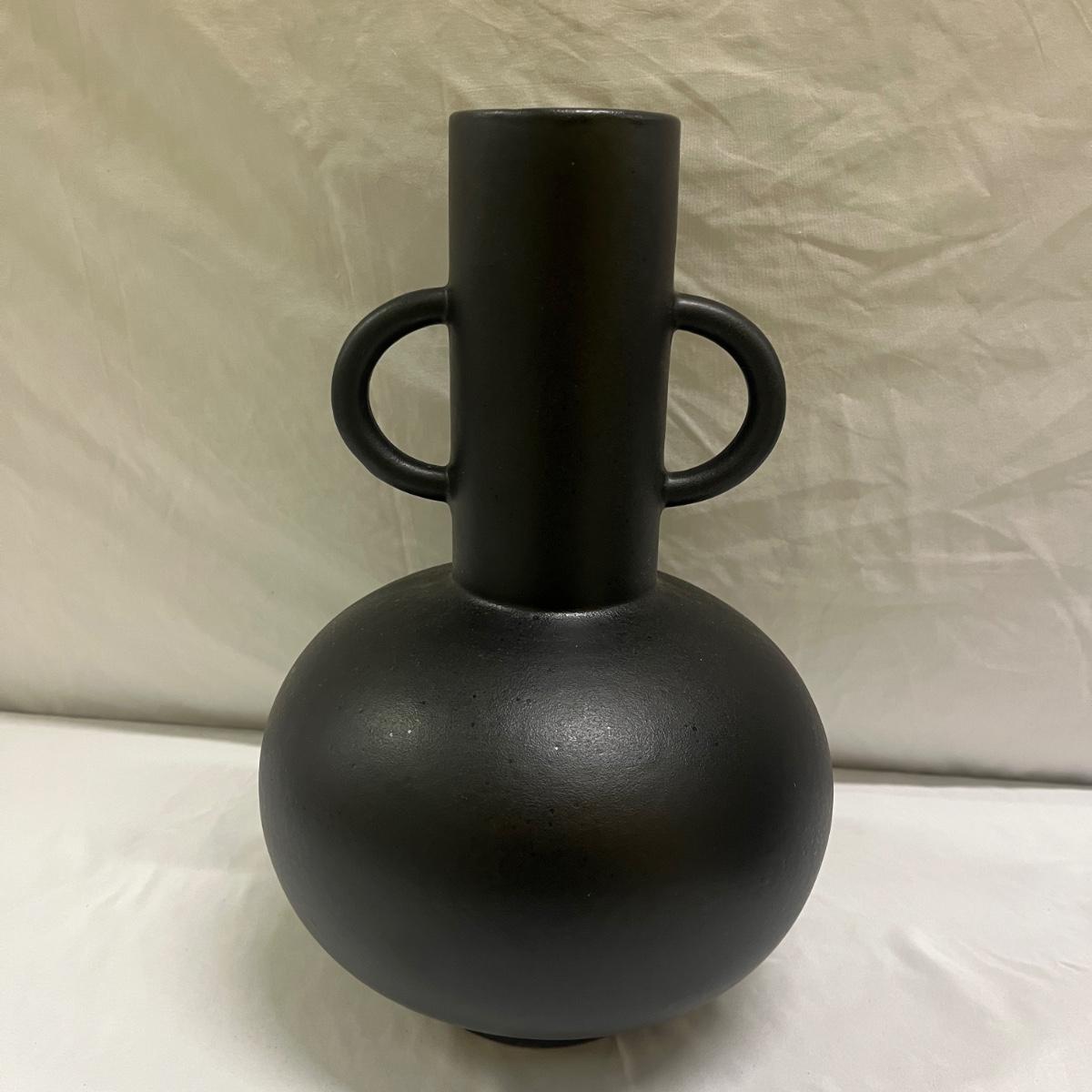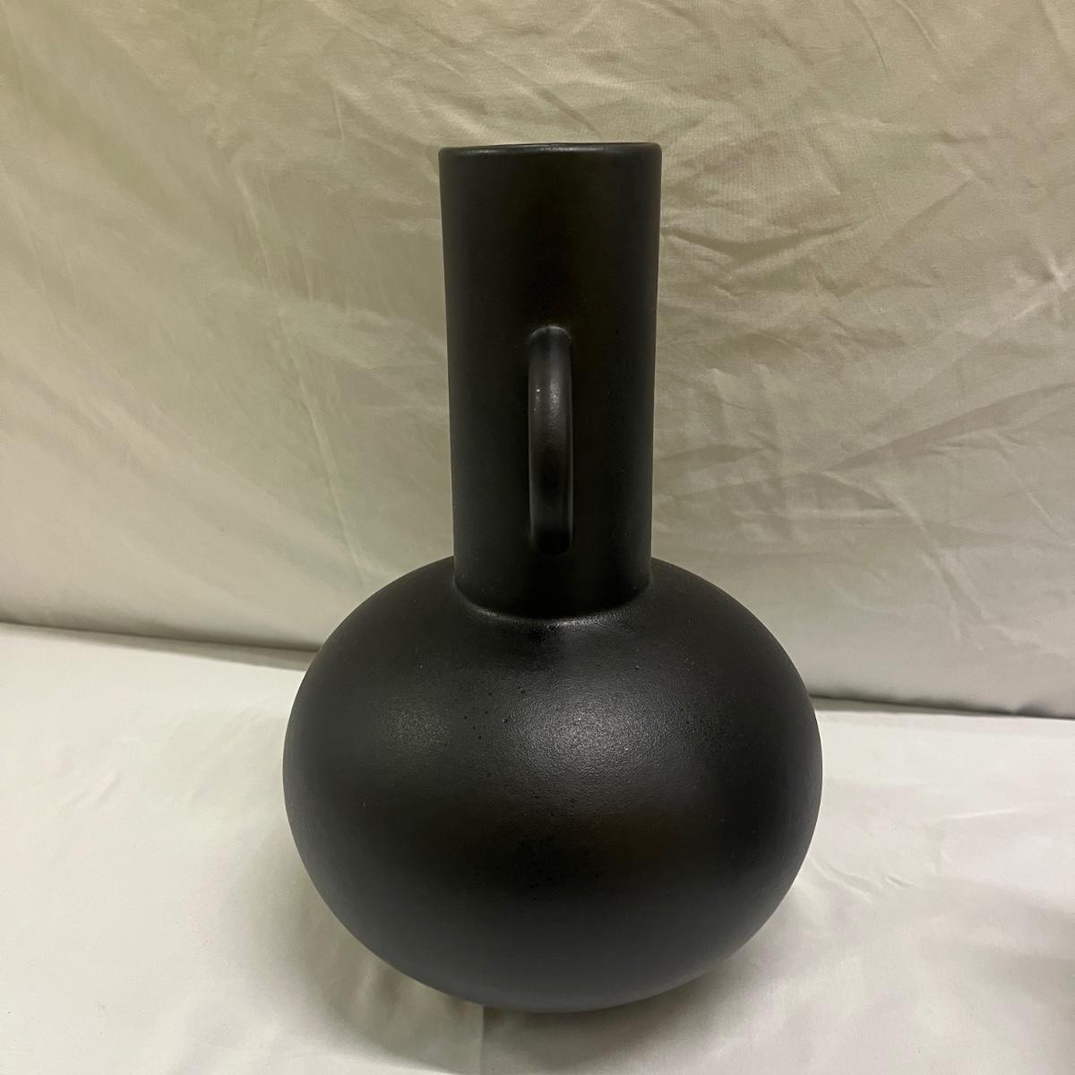 Lot includes two vases that appear to be The Merriman vase by Leanne Ford for Crate & Barrel. They are marked made in Portugal. They look to be terracotta with a black glaze. Vases measure 8.5”D x 14”H.
