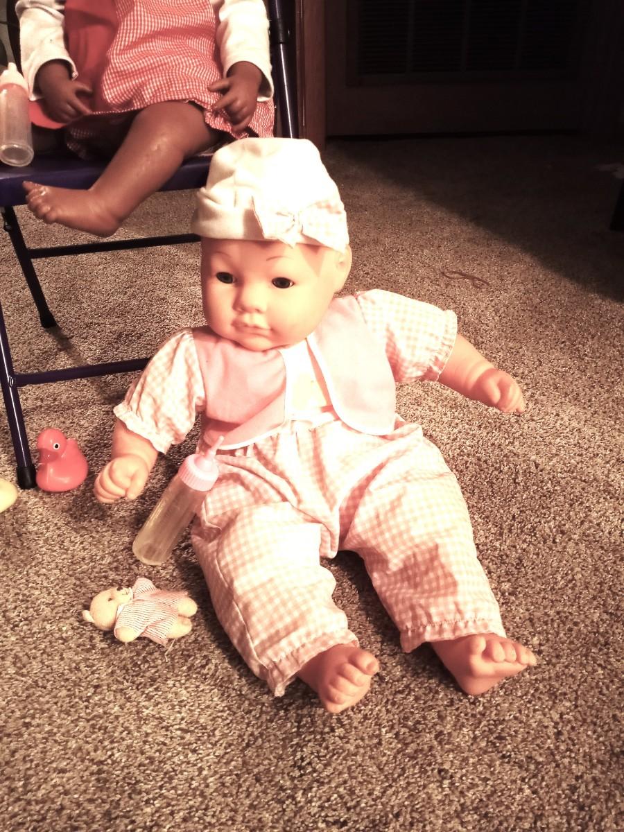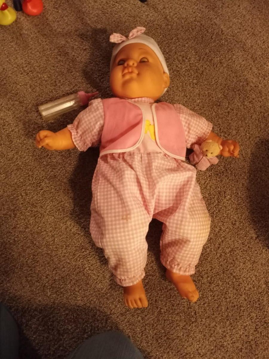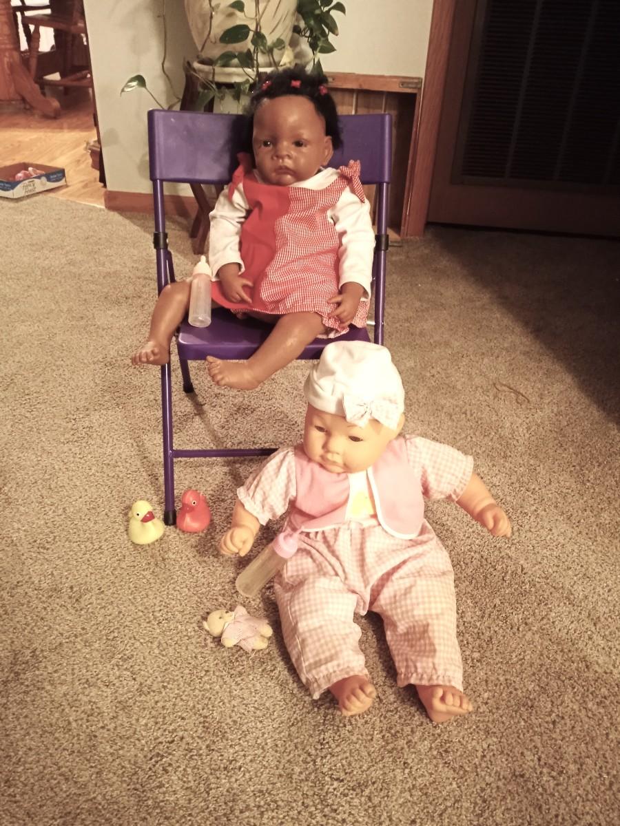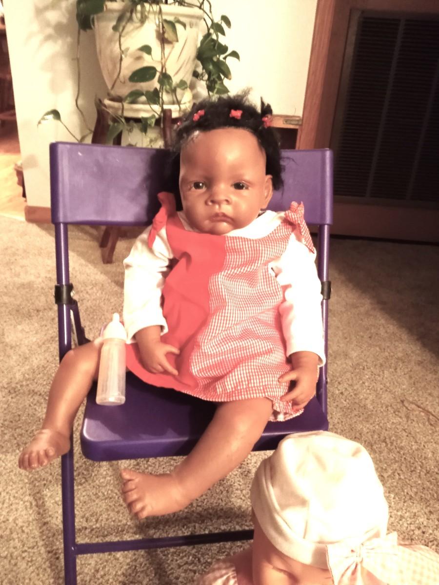 LIFE LIKE BABY DOLLS LOOKS AND FEELS EVEN HAS REALISTIC WEIGHT AND KIDS FOLDING CHAIR