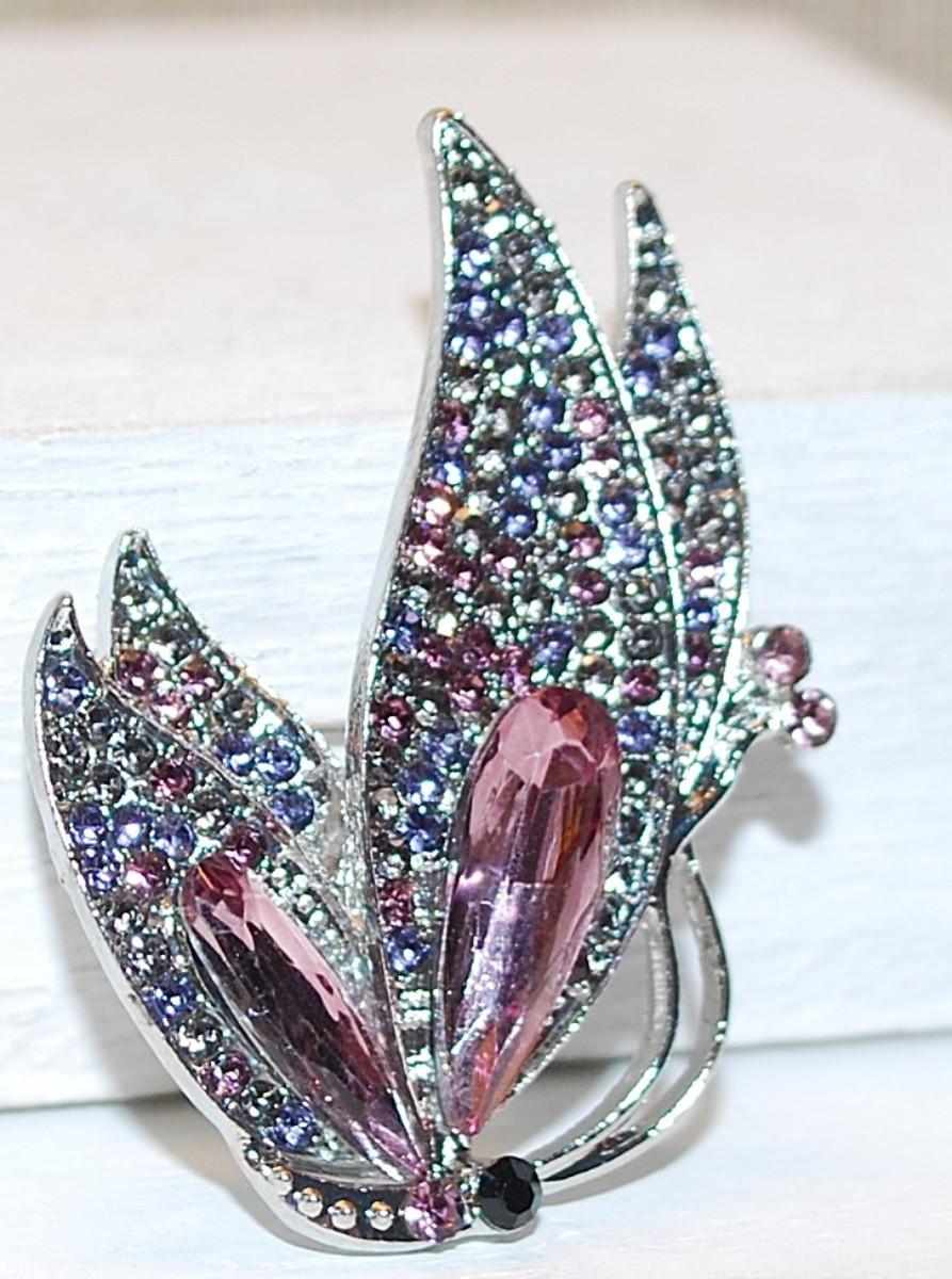Two Light PURPLE Teardrop Stones BROOCH (1½" x 1¼") with Tiny Purple Stones Accent on a Silver Tone Setting