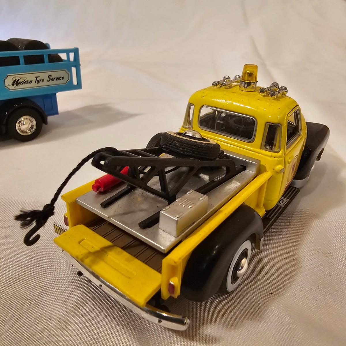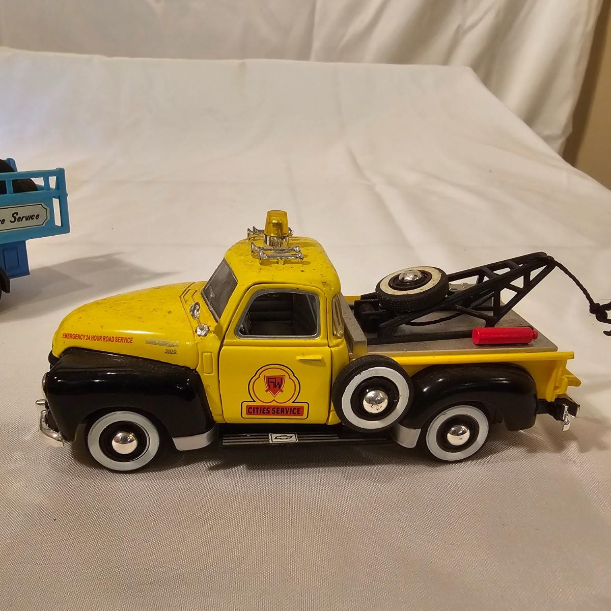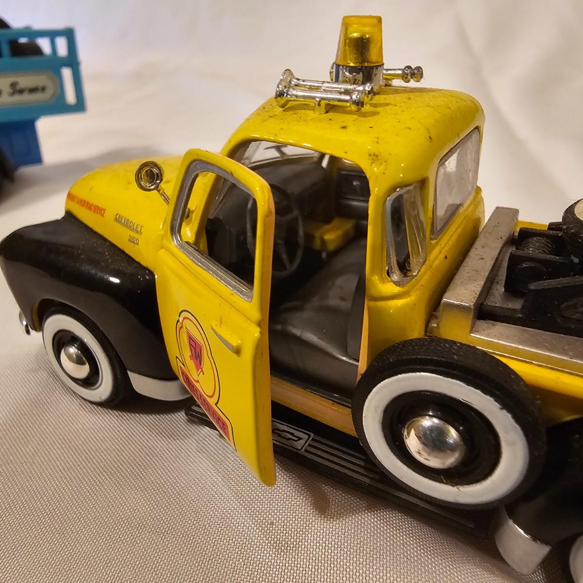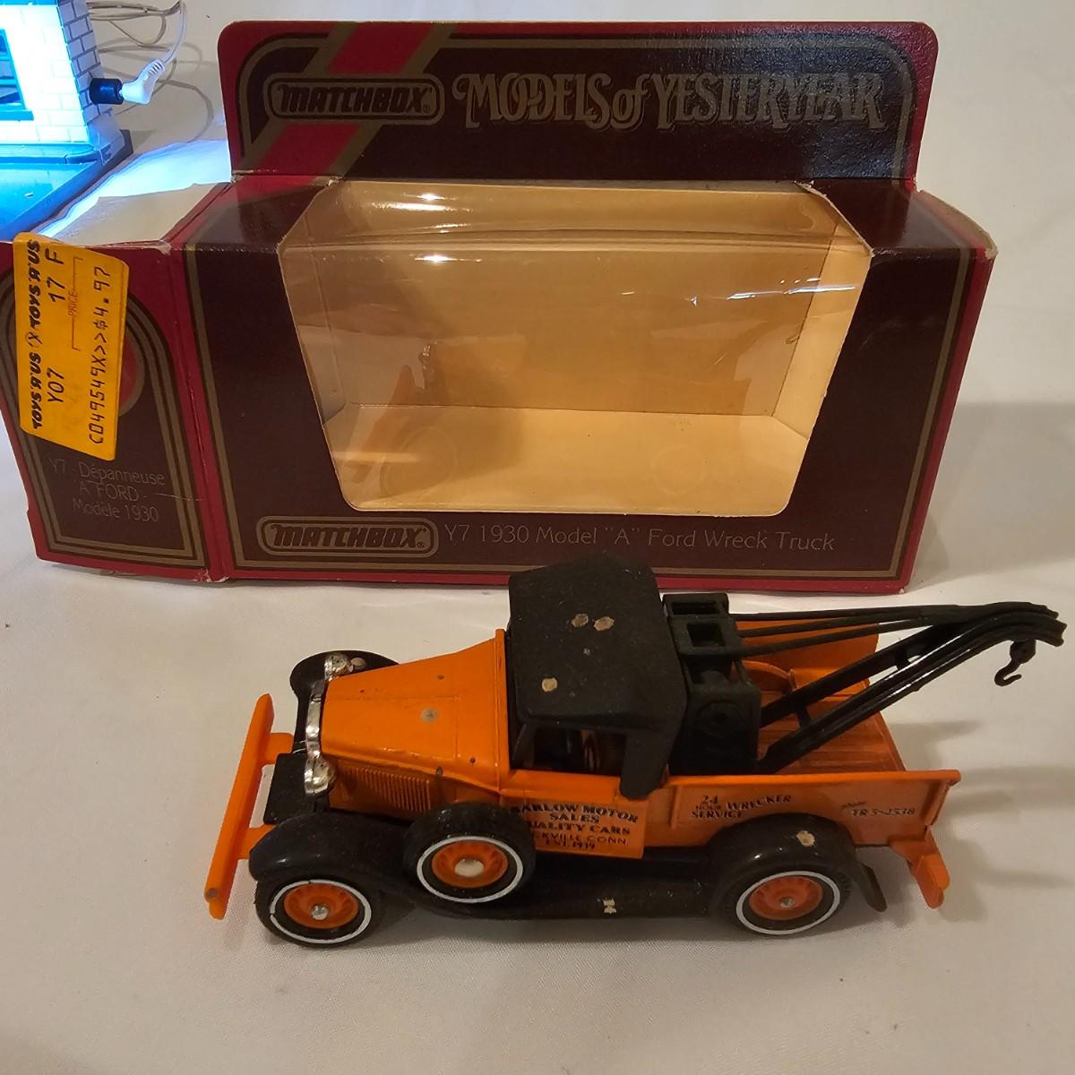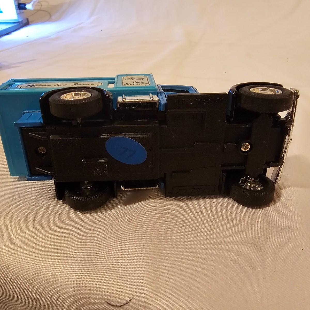 A pair of illuminated service stations, one with an animated rotating sign. Dave's Garage has drive thru pumps, a lighted wrecker and lots of signage. Two extra metal gas pumps included. Building measures 11" x 6.5" x 7" H. Runs on AC adapter, included. Wally's Service Station has a rotating Shell logo on the roof and lots of other lighting as well. 15" x 9.5" x 7"H. Also included are some extra wrecker vehicles, a motorcycle and a Hess gas truck that is battery run and lights up, tested working. Please note the AC adapter provided has three individual plugs to run both of these structures and also one more. See photos for details. Shipping available.Please note that any price tag seen on an item was not put there by Sterling Transitions and does not reflect the current value of the item.