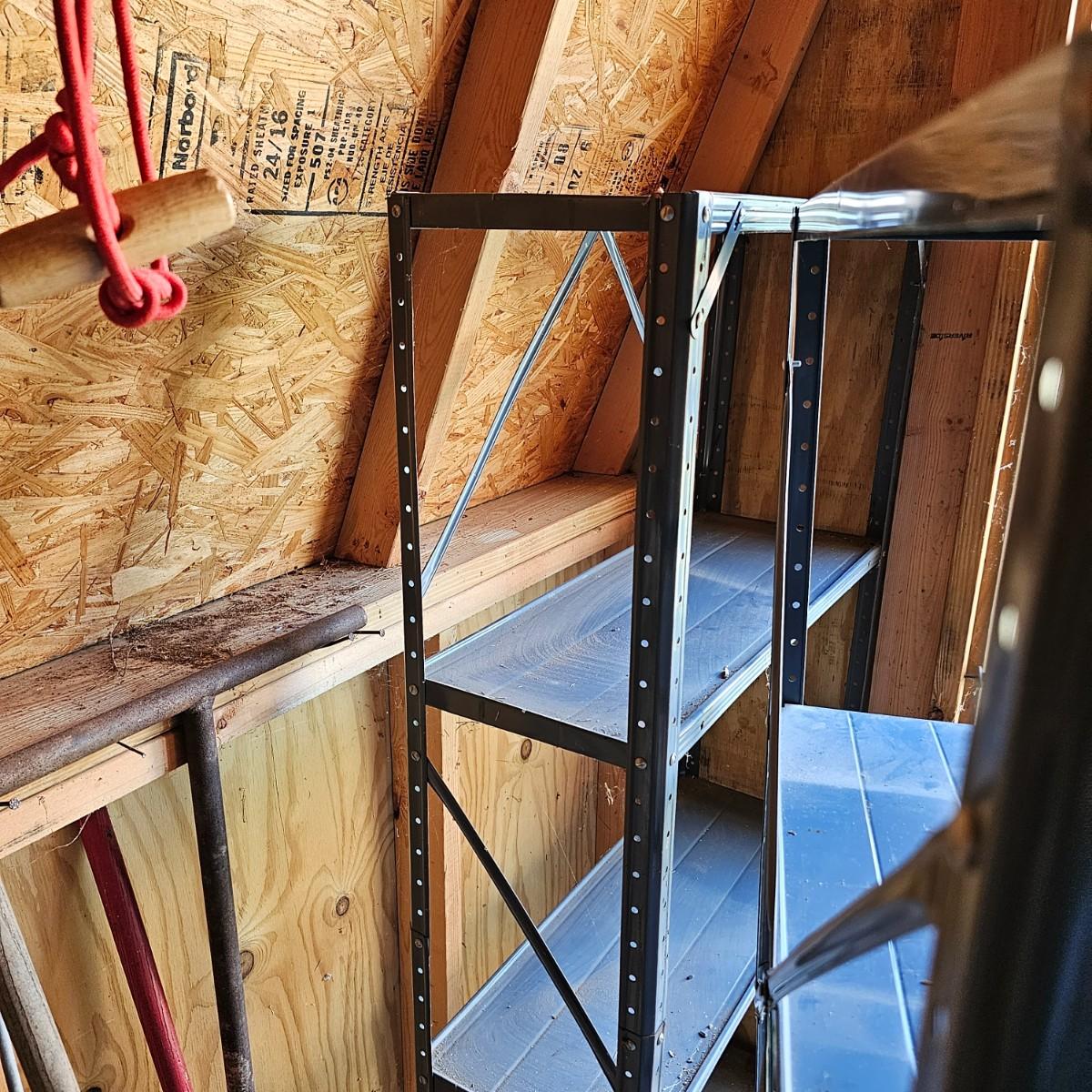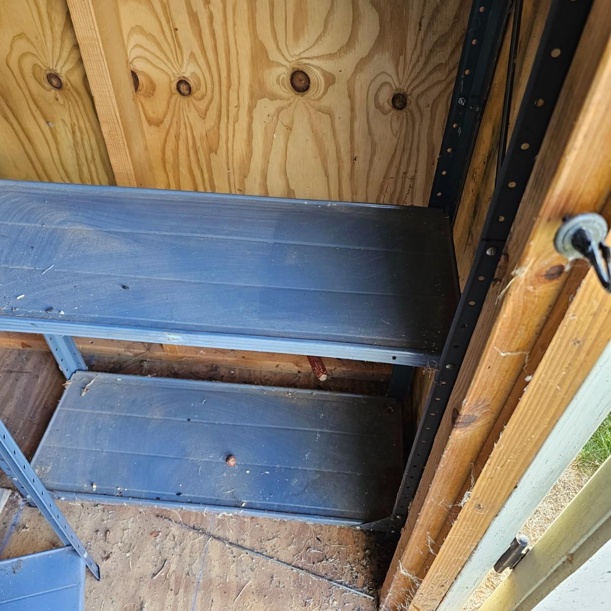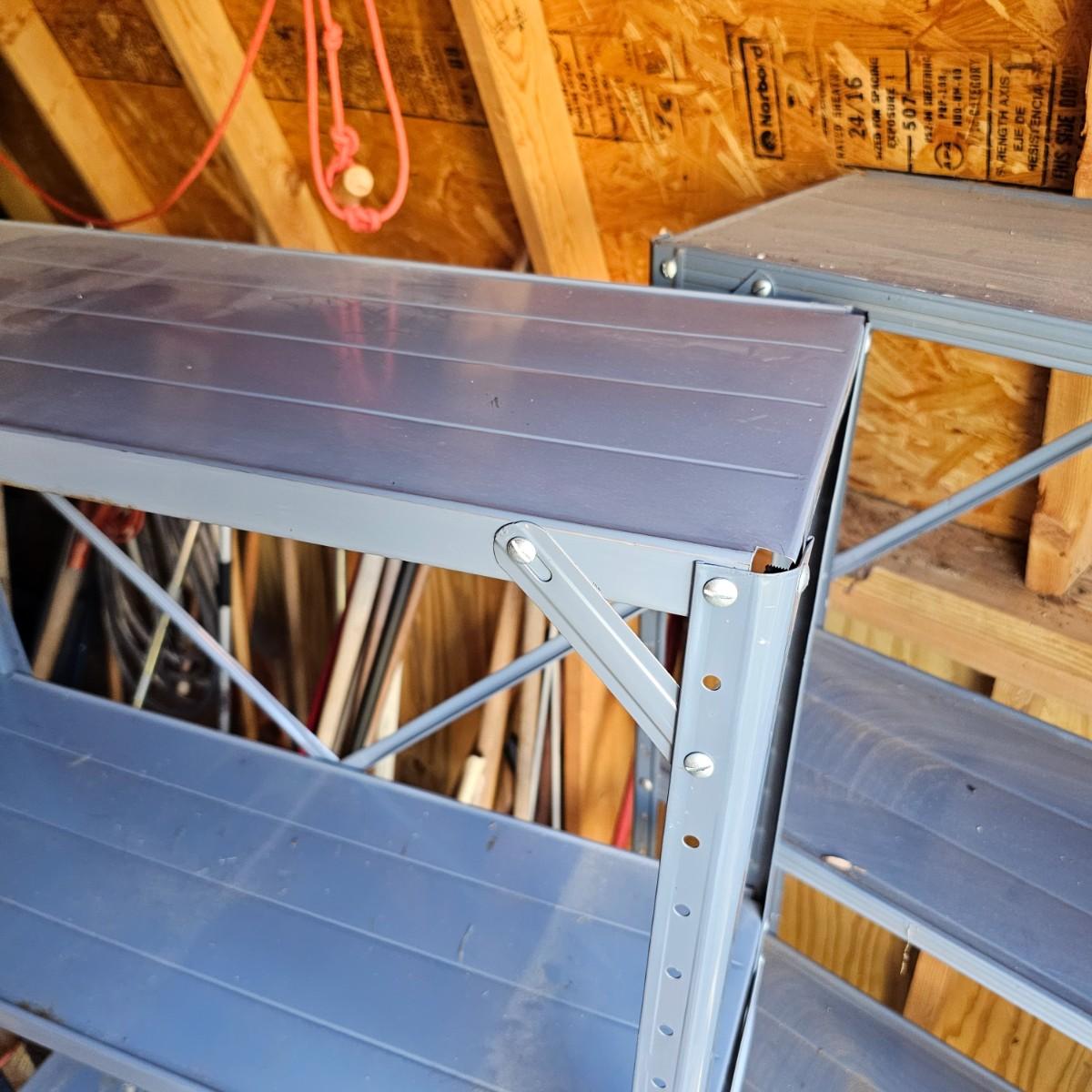 A pair of lightweight utility shelf units. Four shelves each, some adjustable. Each unit measures 30" x 11.5" x 61"H. Some stains from use, see photos for details. Local pickup only.