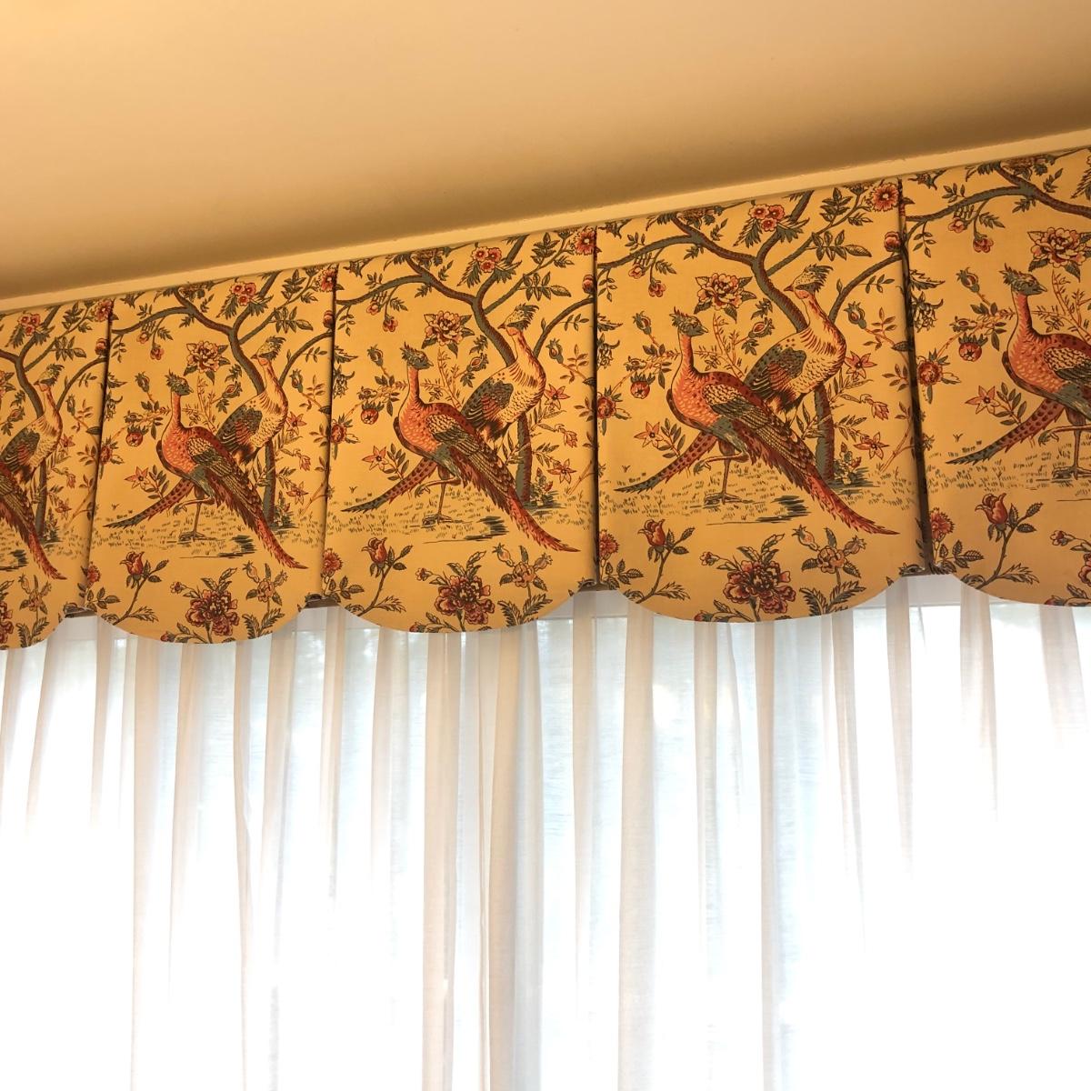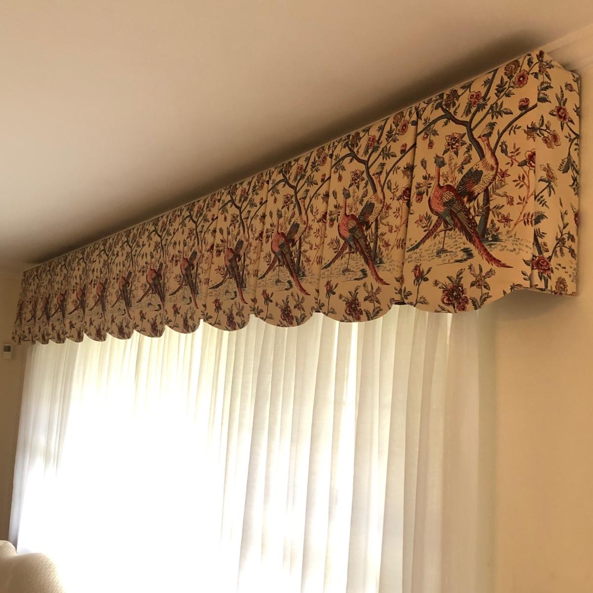 Two Lined Peacock Valances & Full-length Lined Curtains (LR-KM)