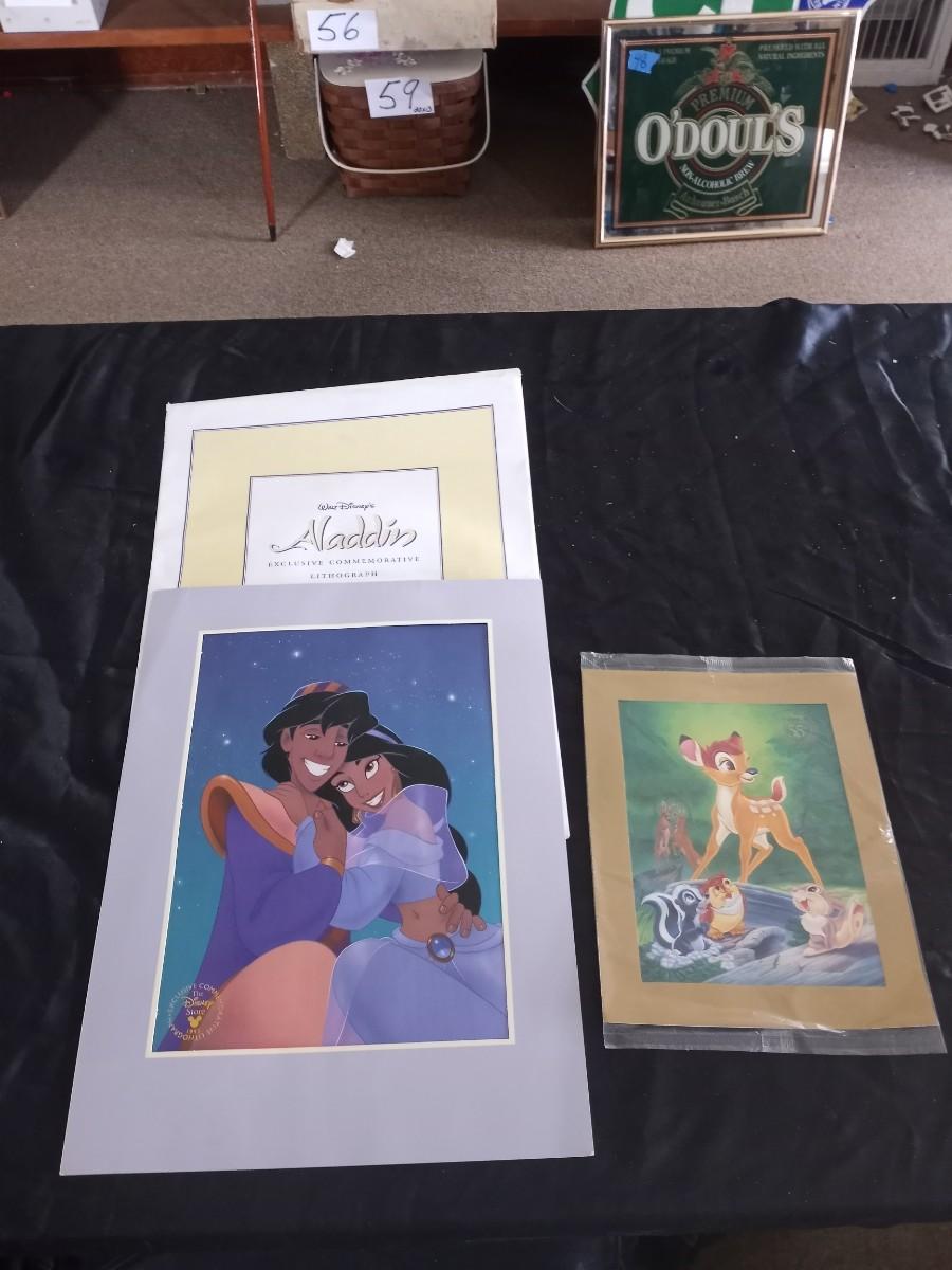 TWO LITHOGRAPHS ALADDIN AND BAMBI