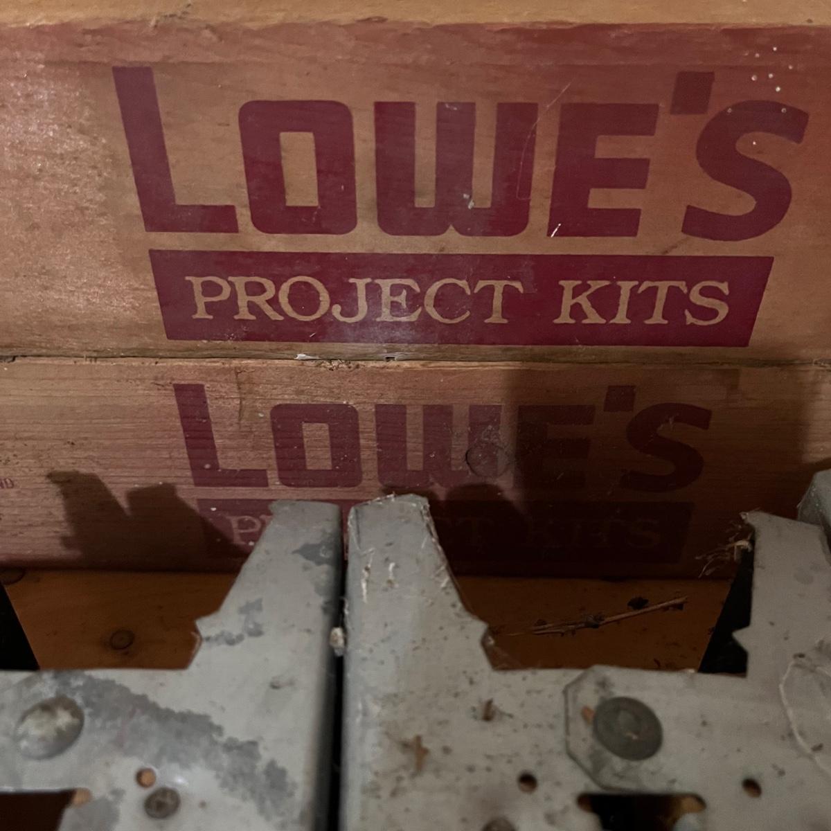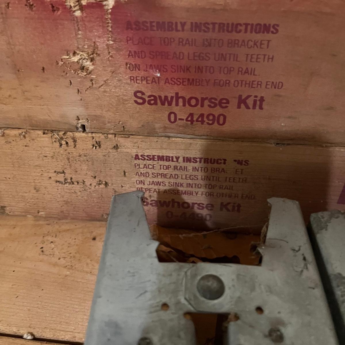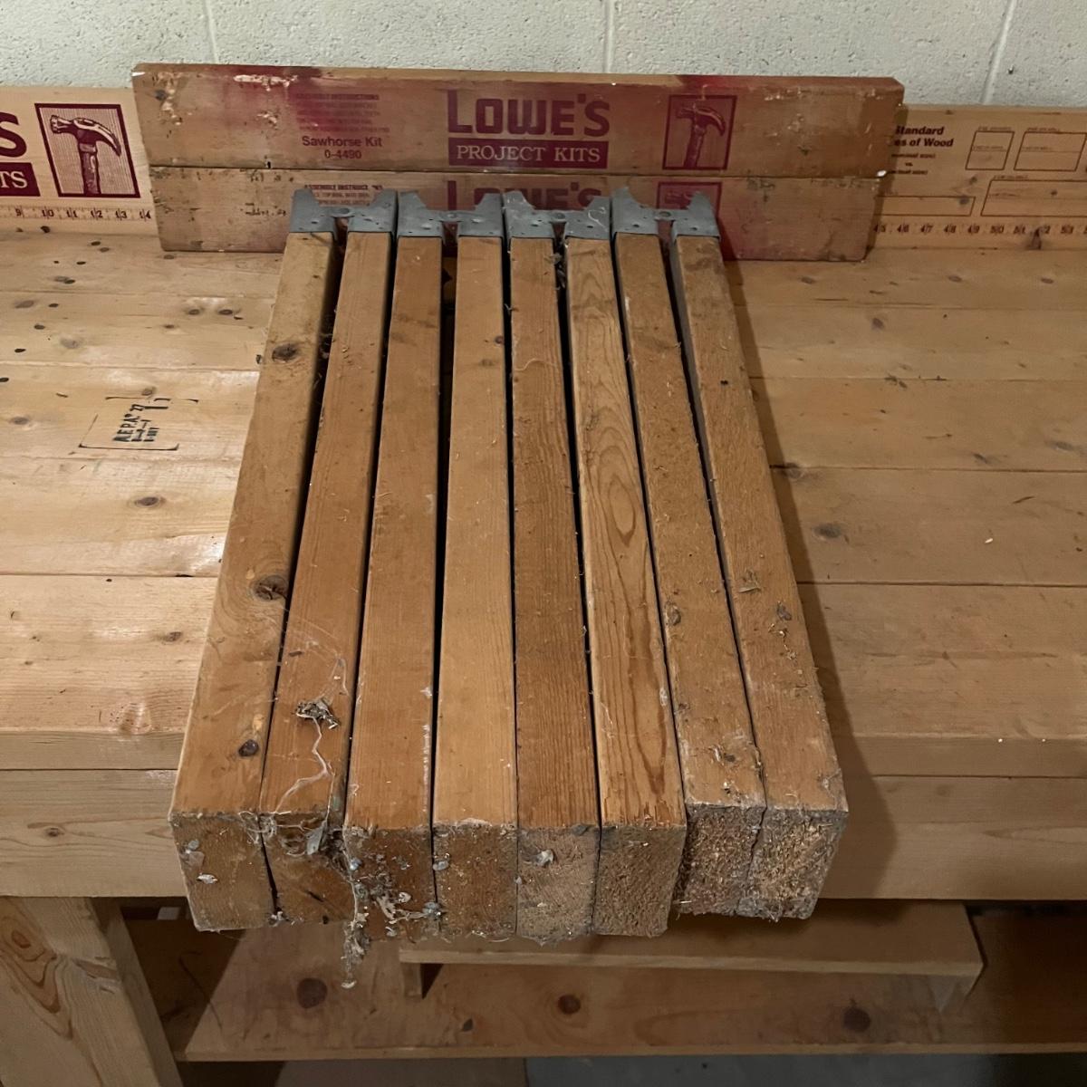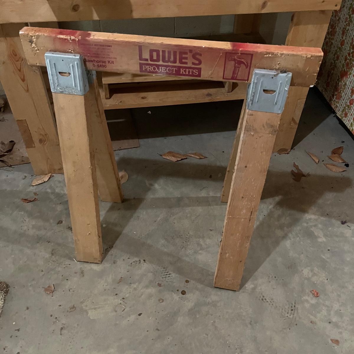 Lot includes two folding wooden Lowes sawhorses. Sawhorses measure 17” x 29” x 30” when put together.