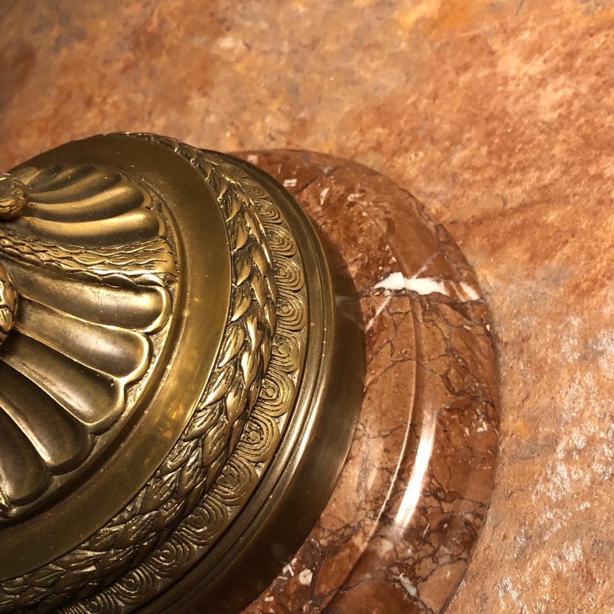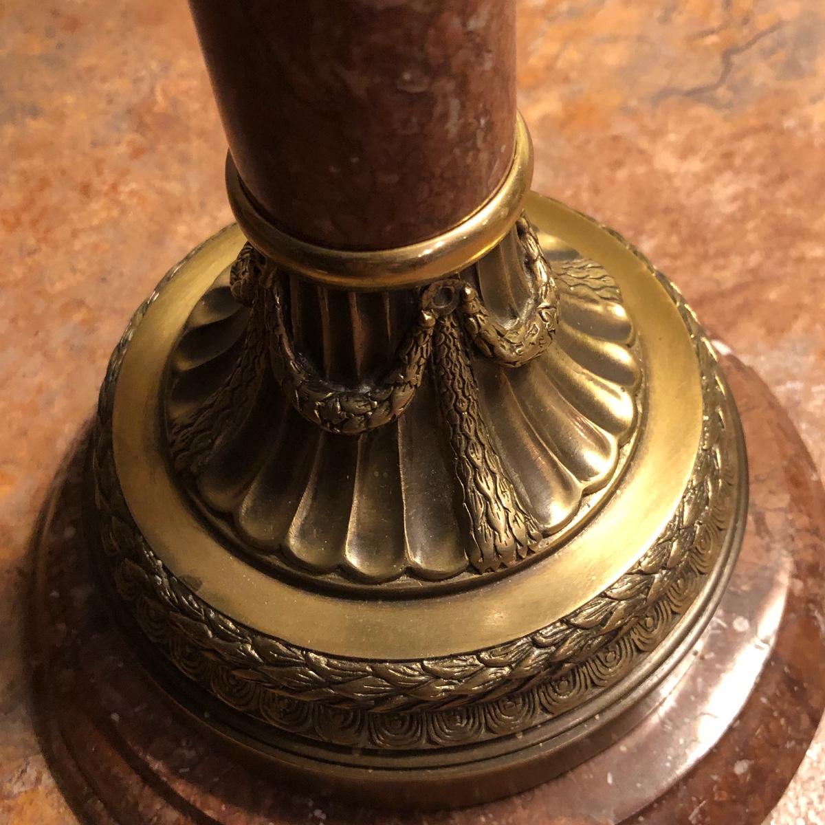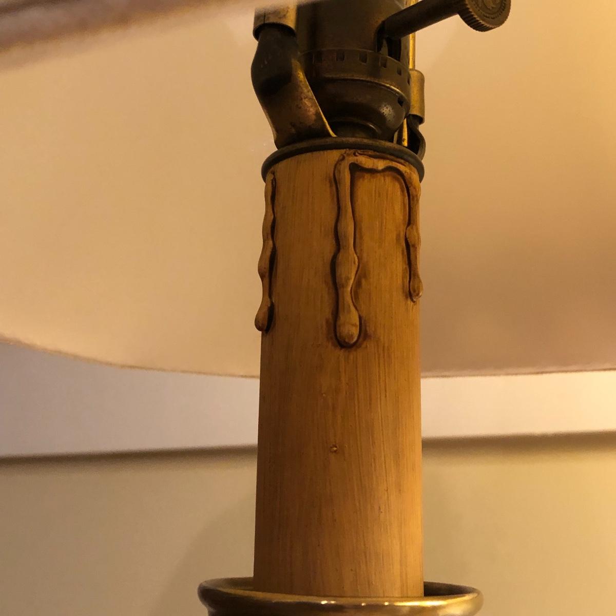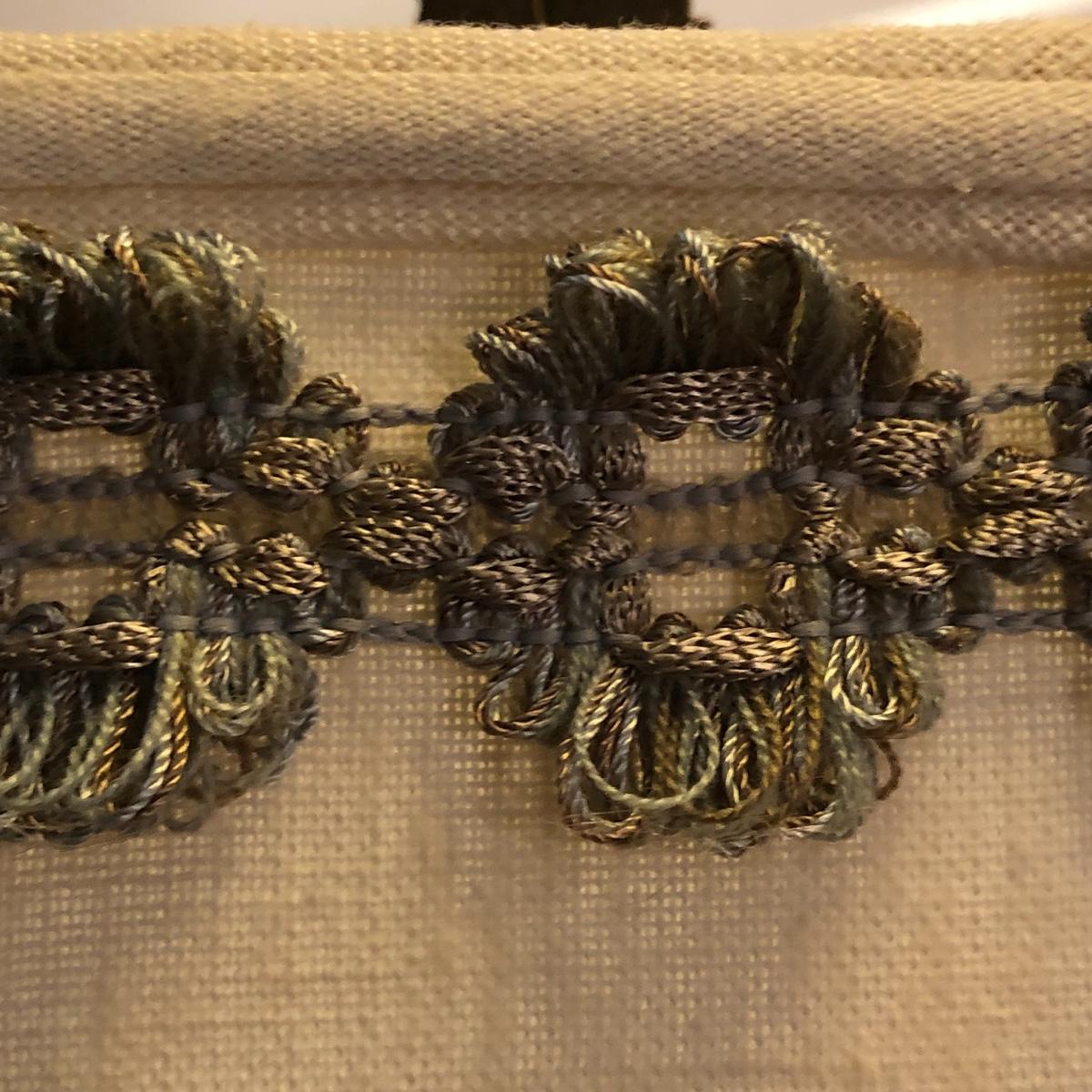 Two marble like lamps with with decorative embroidered circular tassels.The finials are sculpted leaves. The lamps measure approximately 31” tall with the base measuring 7” in diameter. Local pick up only.