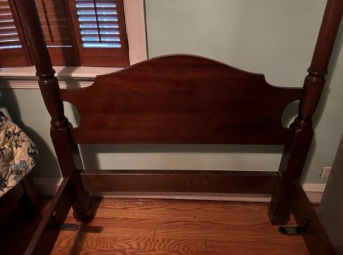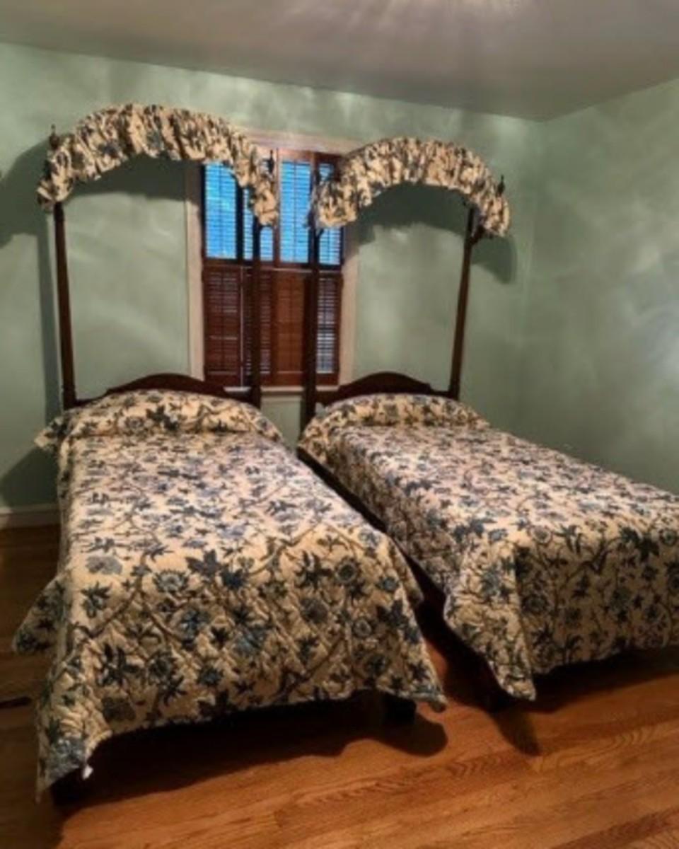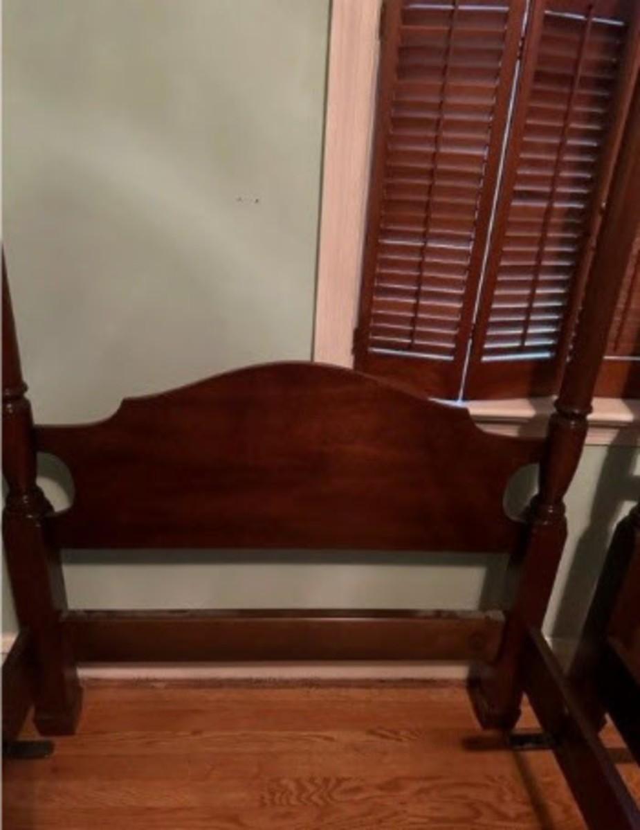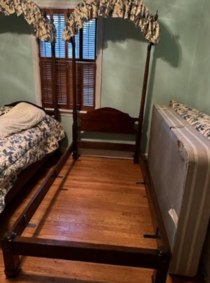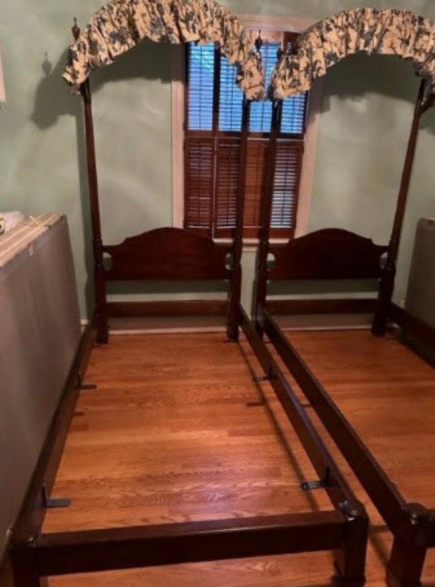 Four Poster Bed, Used - Good Condition, Color: Brown Size: Twin. A rare find - two Matching Vintage Kittinger Twin Size Mahogany Poster Beds - sat mostly unused in a bedroom for over 60 years.