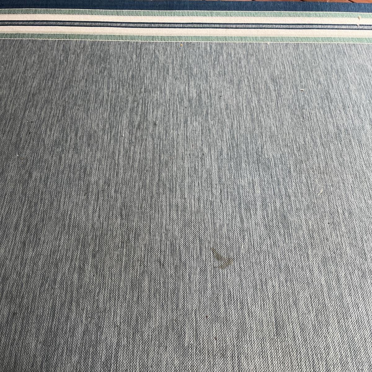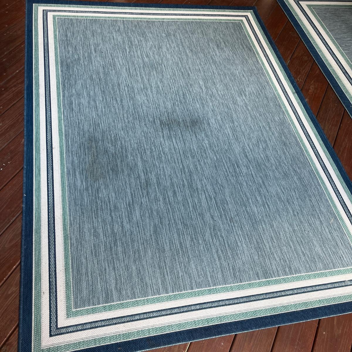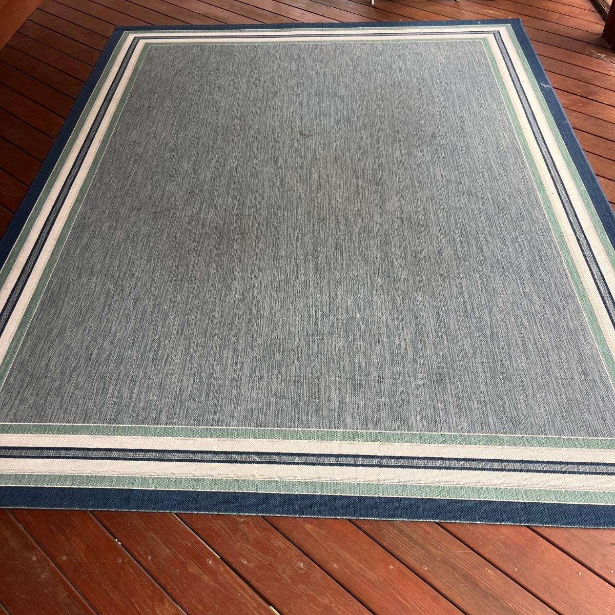Lot includes three matching outdoor rugs that are made from polypropylene. Largest rug measures 121” x 95”. Rugs have a few spots, see pictures. Local Pickup Only