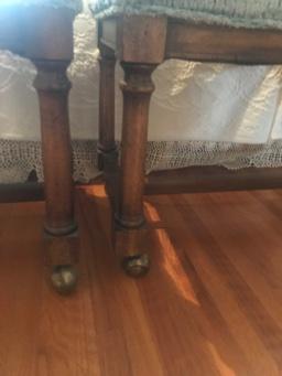 Two Matching Pillow-Top Uphosltered Rolling Walnut Bench Seats by Globe