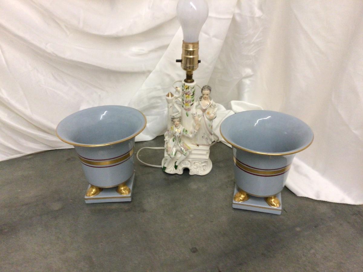 Two Matching Planter and Made in Japan Victorian Lamp.
