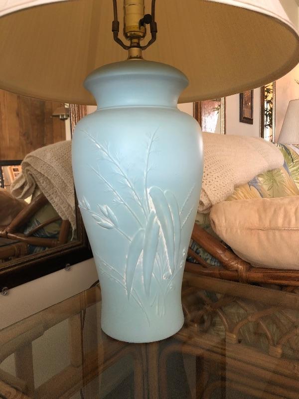 From the base of the lamp to the top of it is 16 inches tall without the shade with the shade it’s 28 inches tall the width is about 8 inches wide