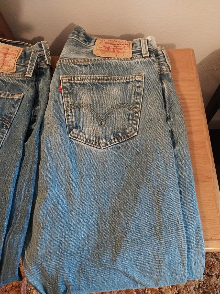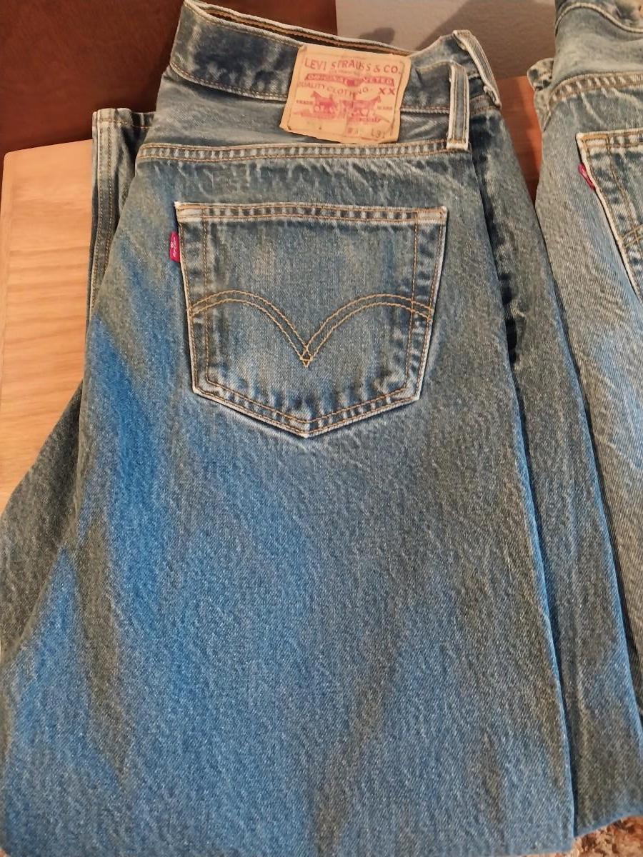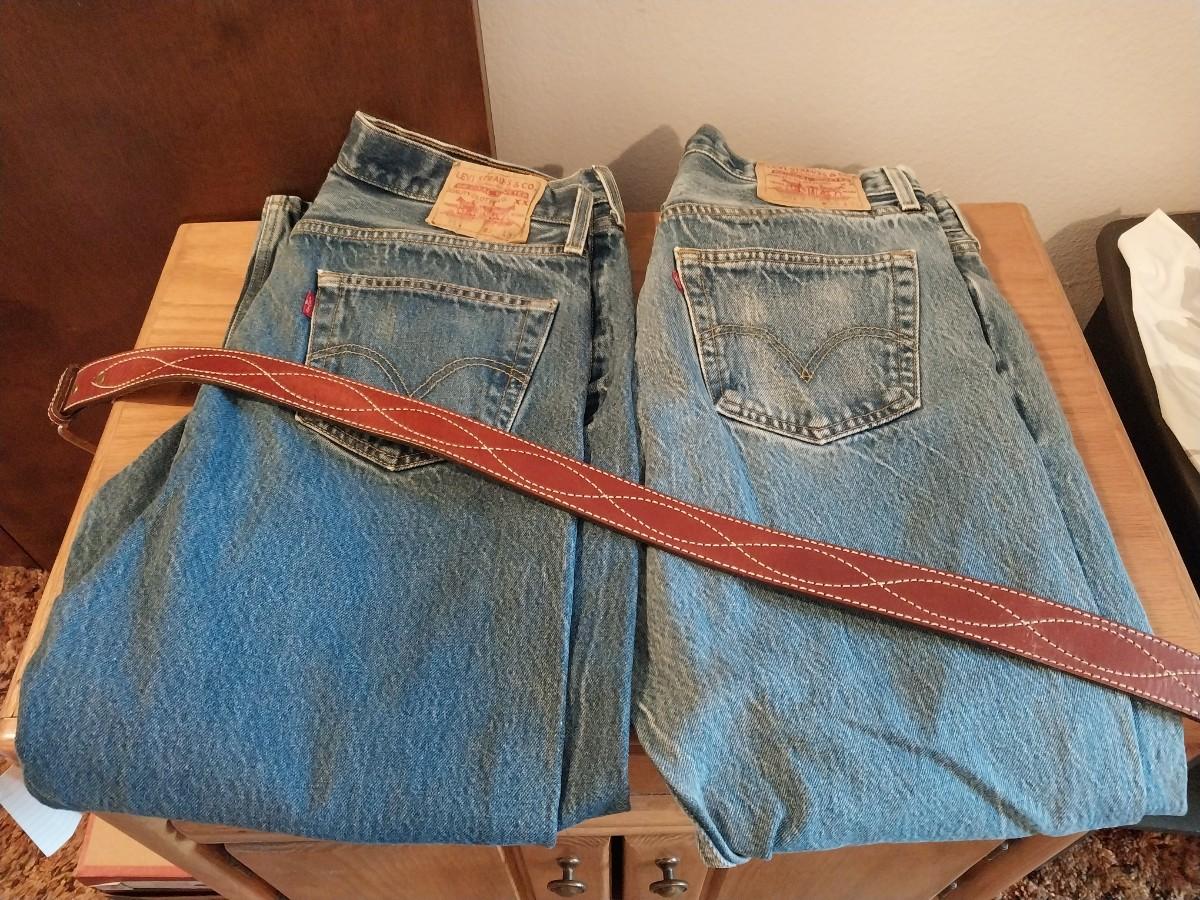 TWO MENS 501 LEVI JEANS AND LEATHER BELT