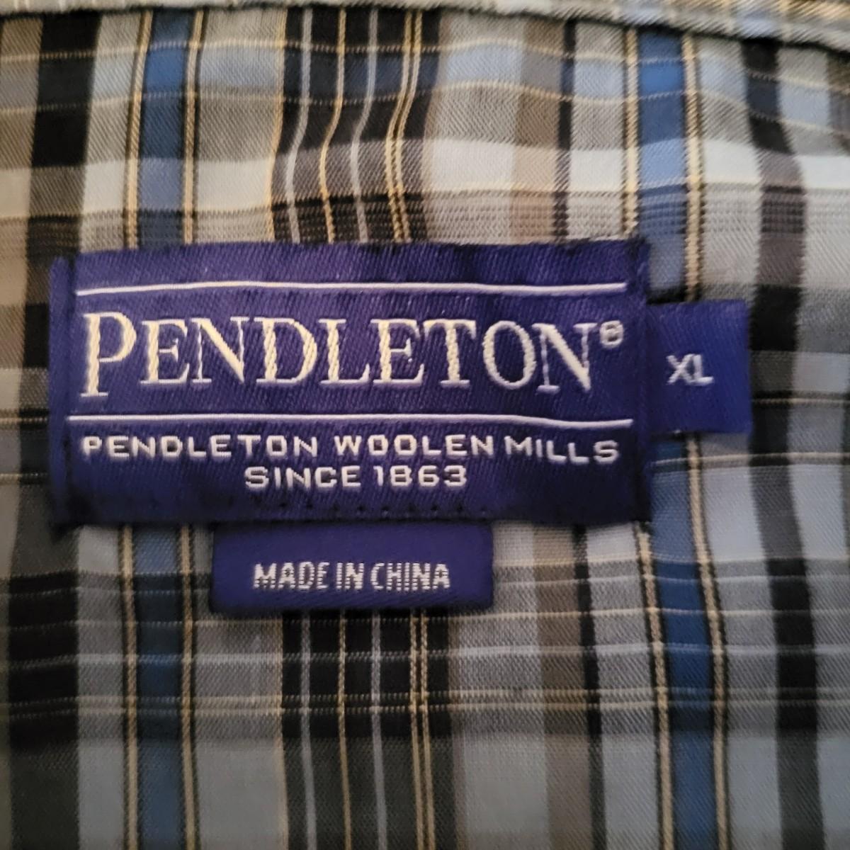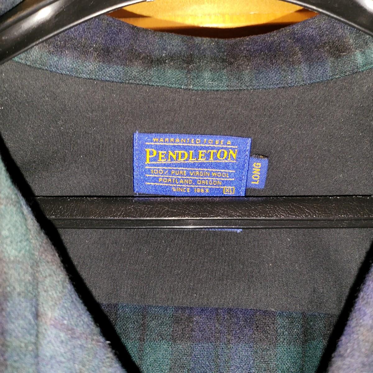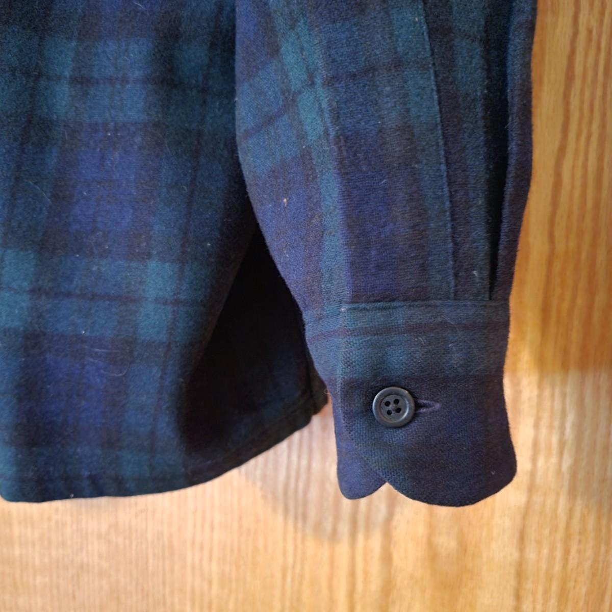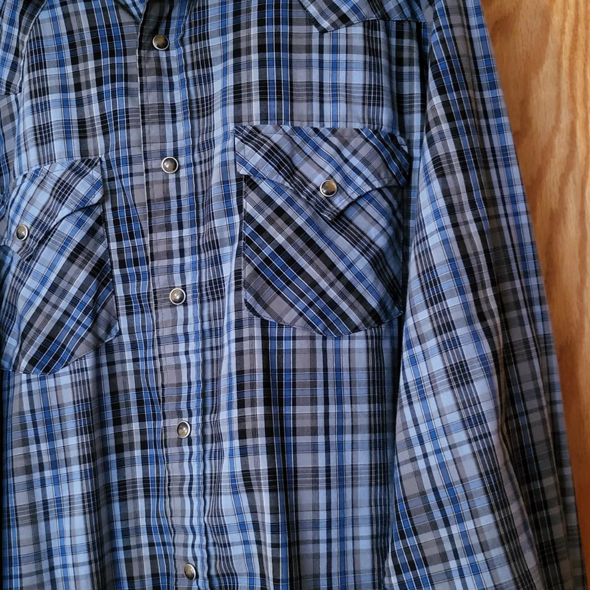 Blue casual shirt with small plaid pattern. Blue/green wool plaid flannel. Both are size XL.