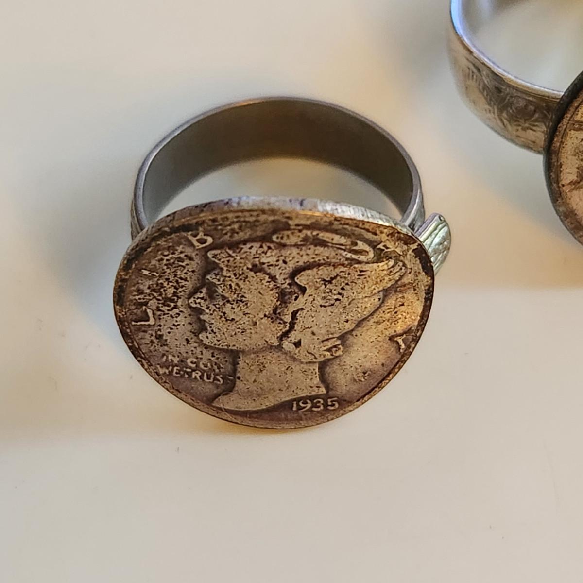 Two Mercury Silver Dime Rings