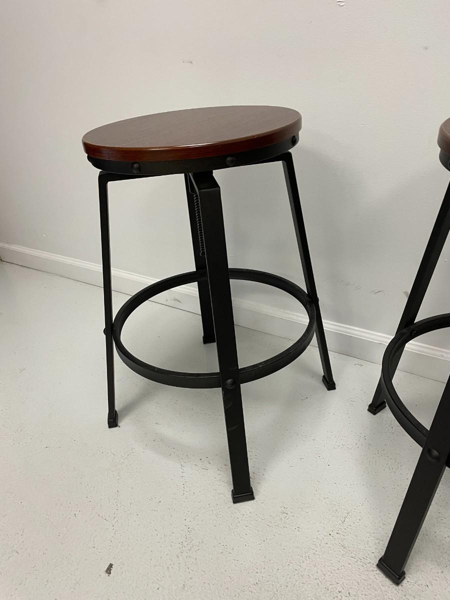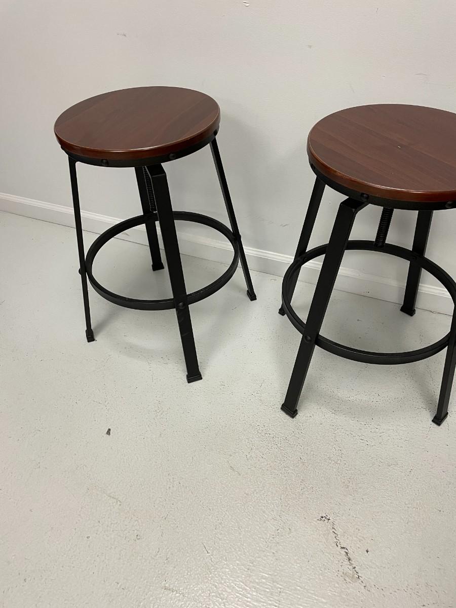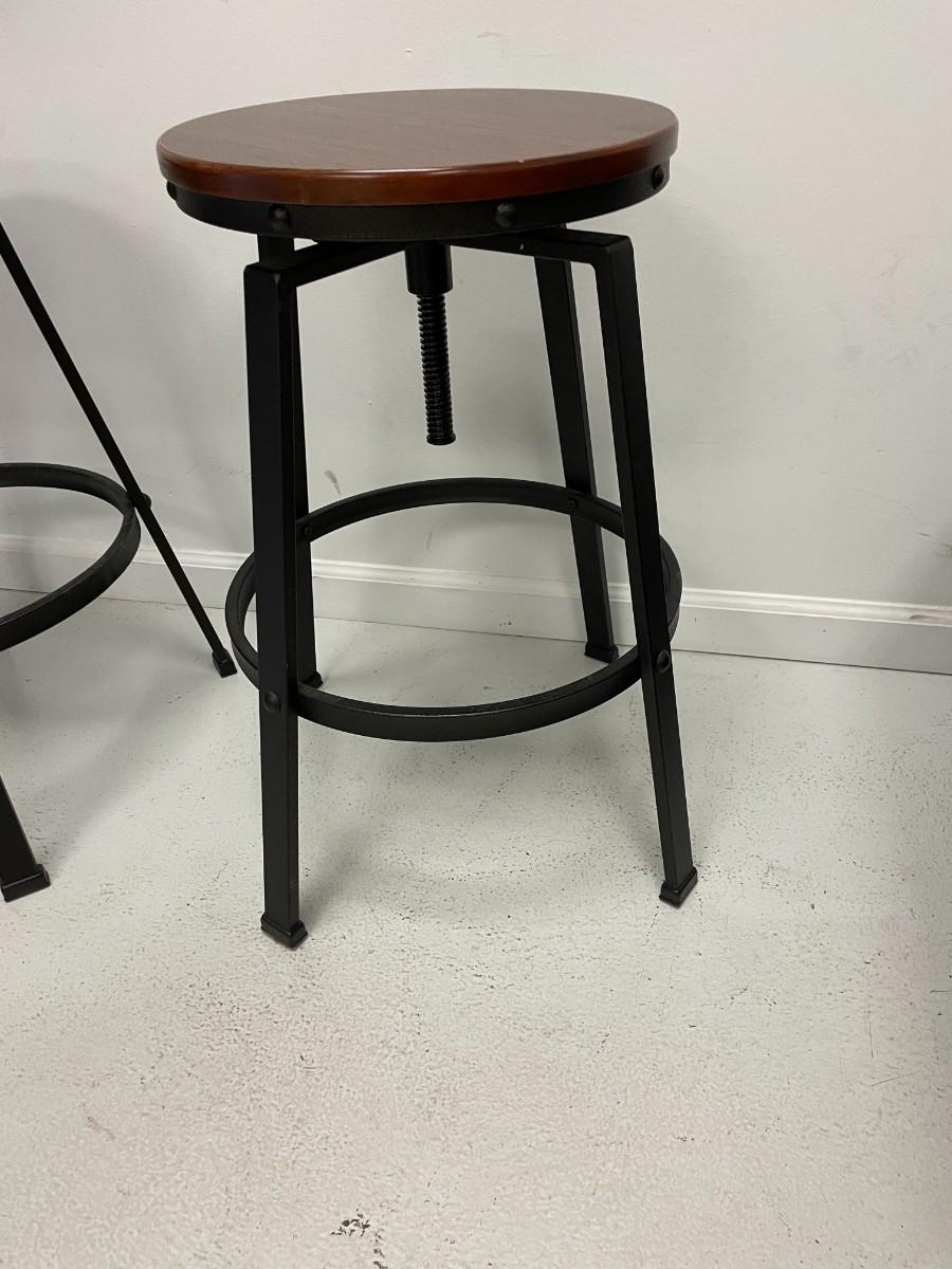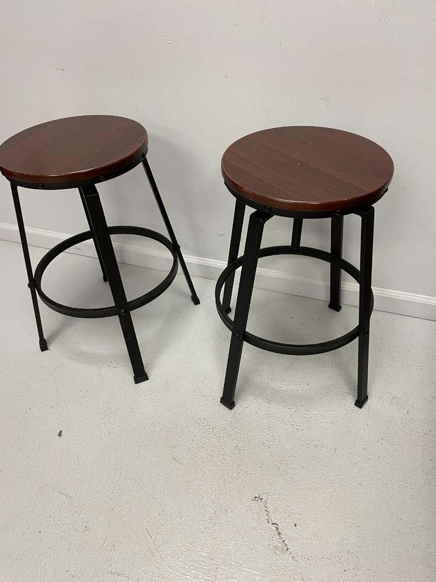 TWO METAL AND WOOD STOOLS