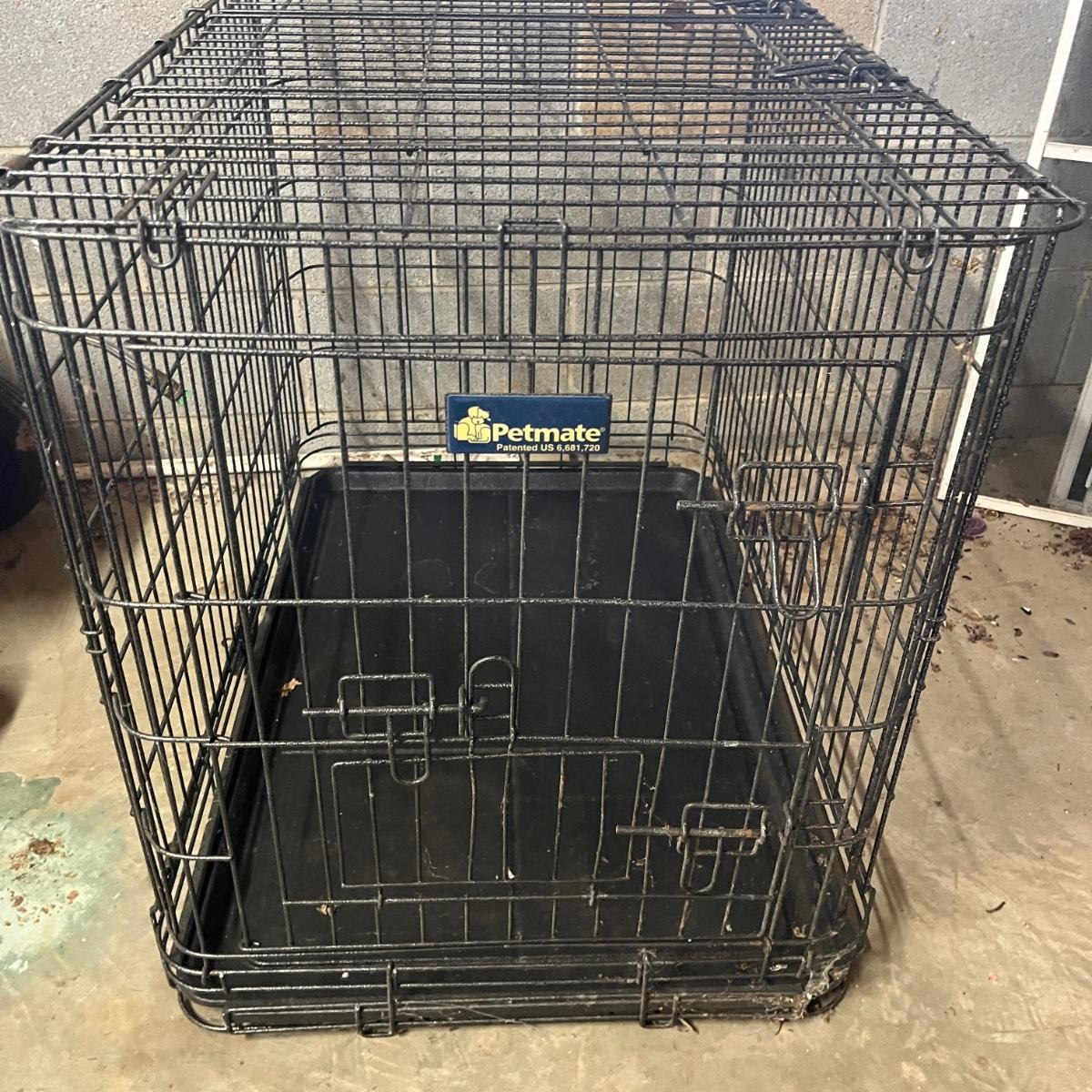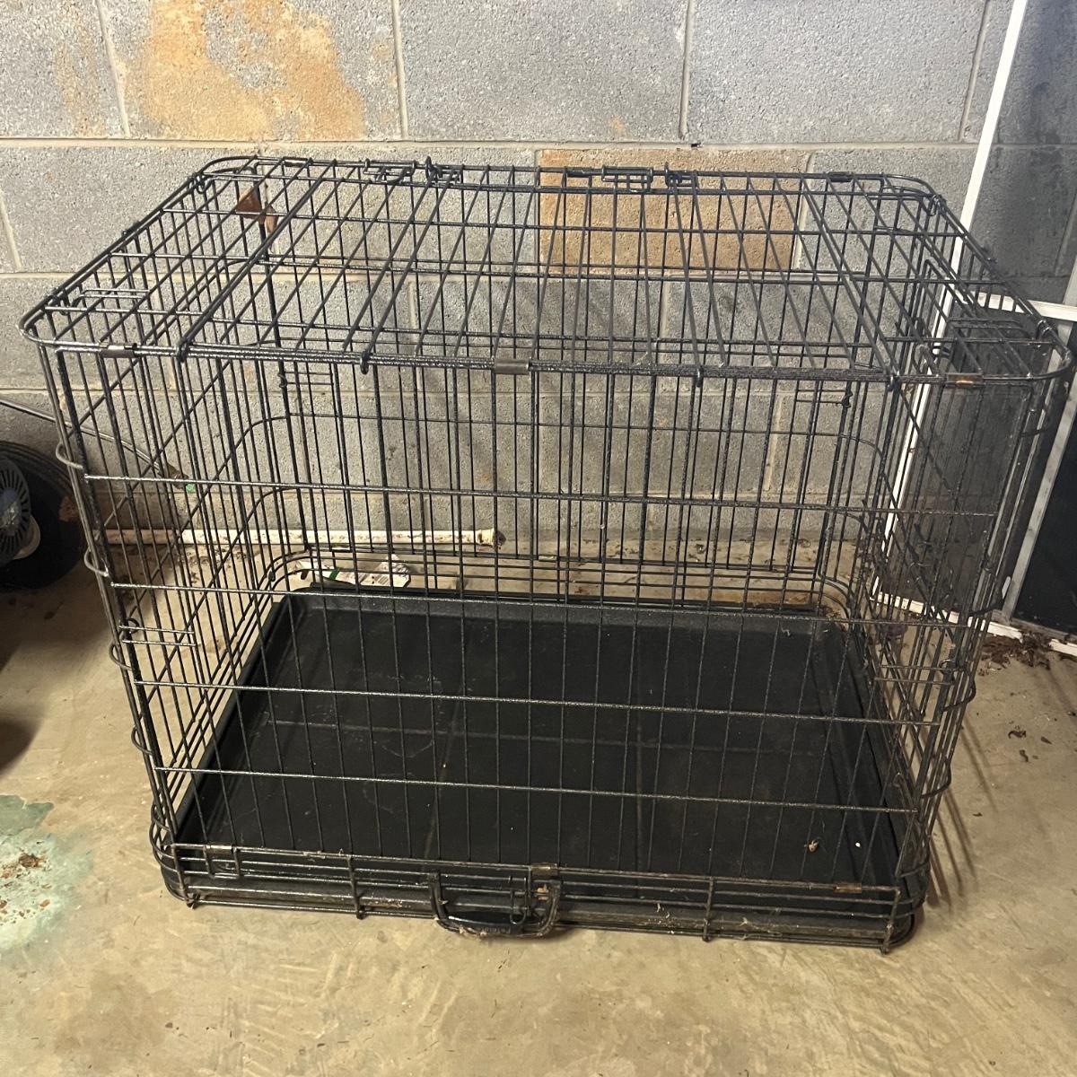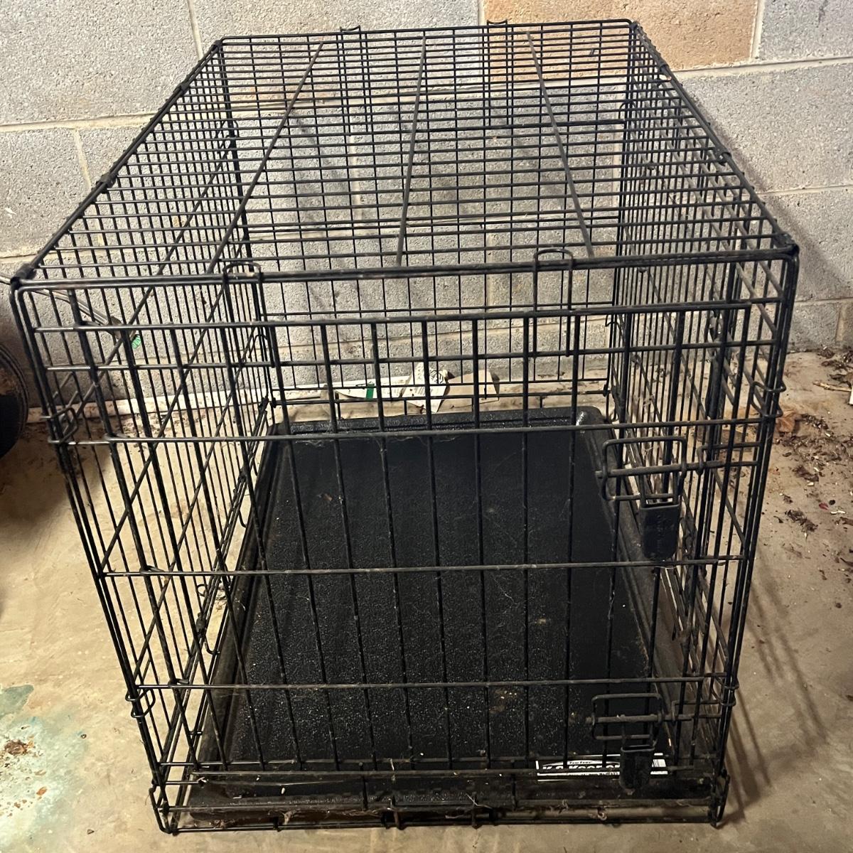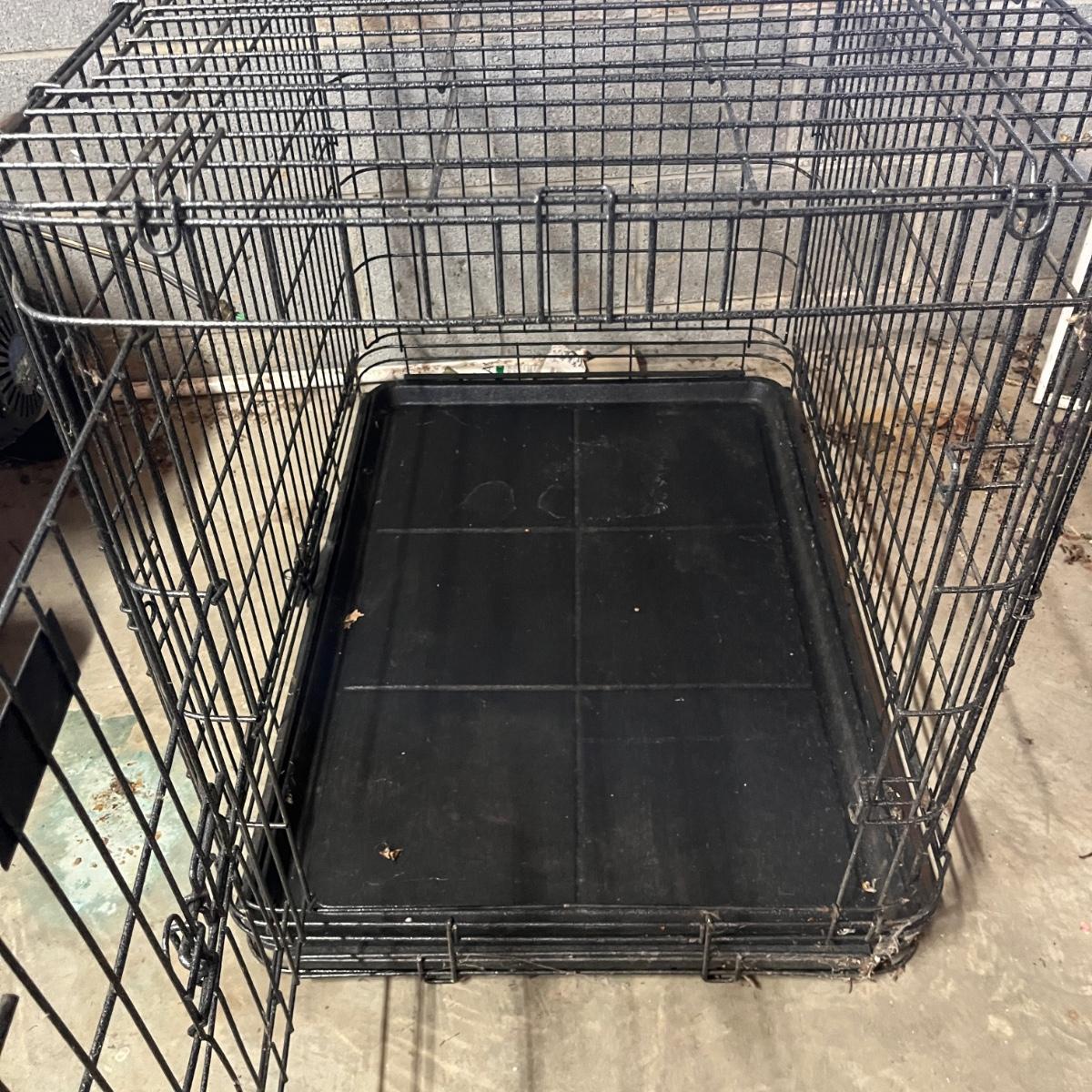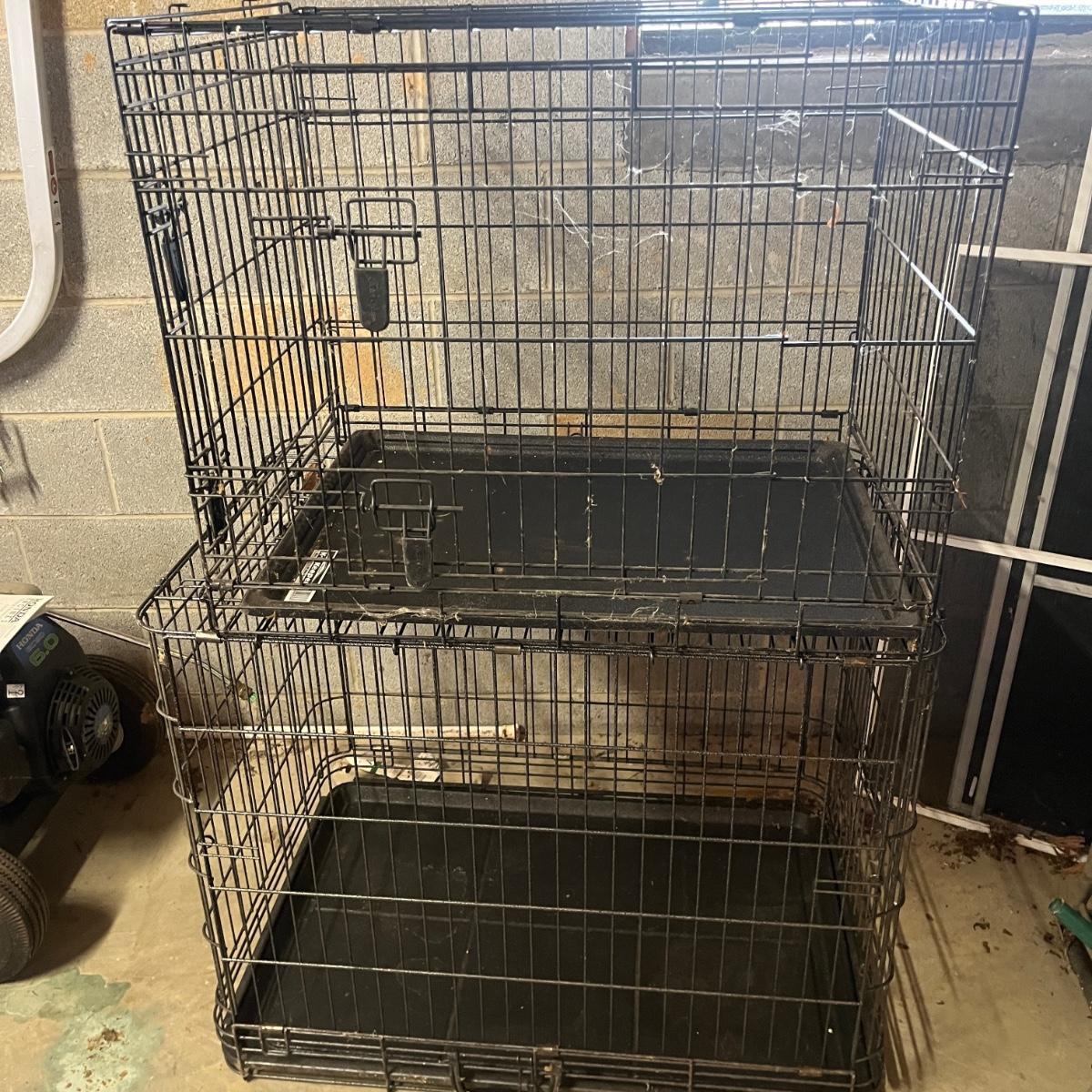 Lot includes a Petmate and k9Keeper collapsible metal dog cages. Largest cage measures 36” x 24” x 28”H. We did not take them down so buyer can see them assembled and dismantle