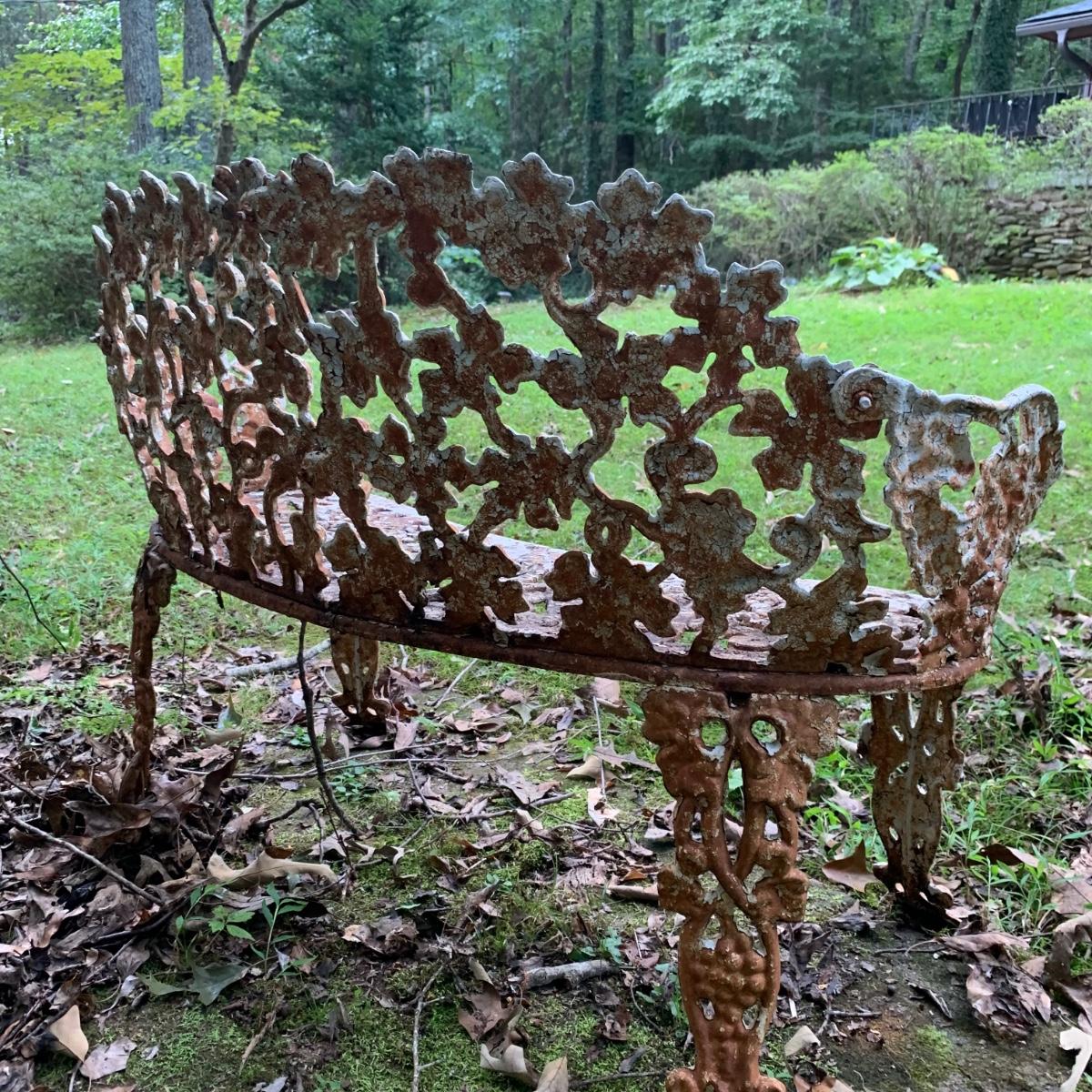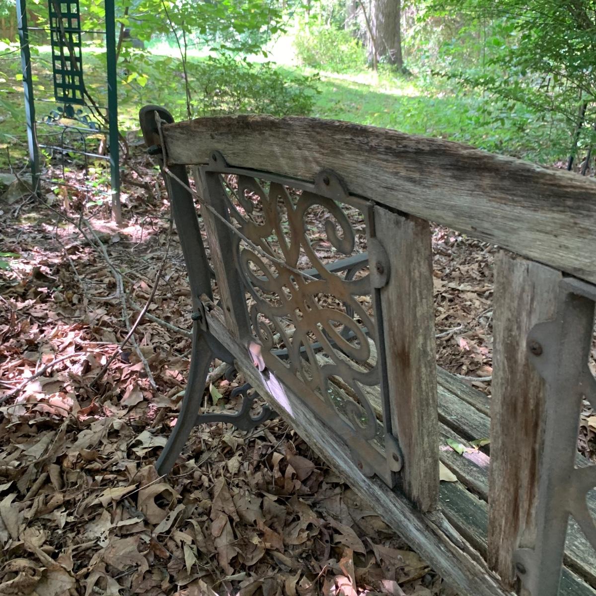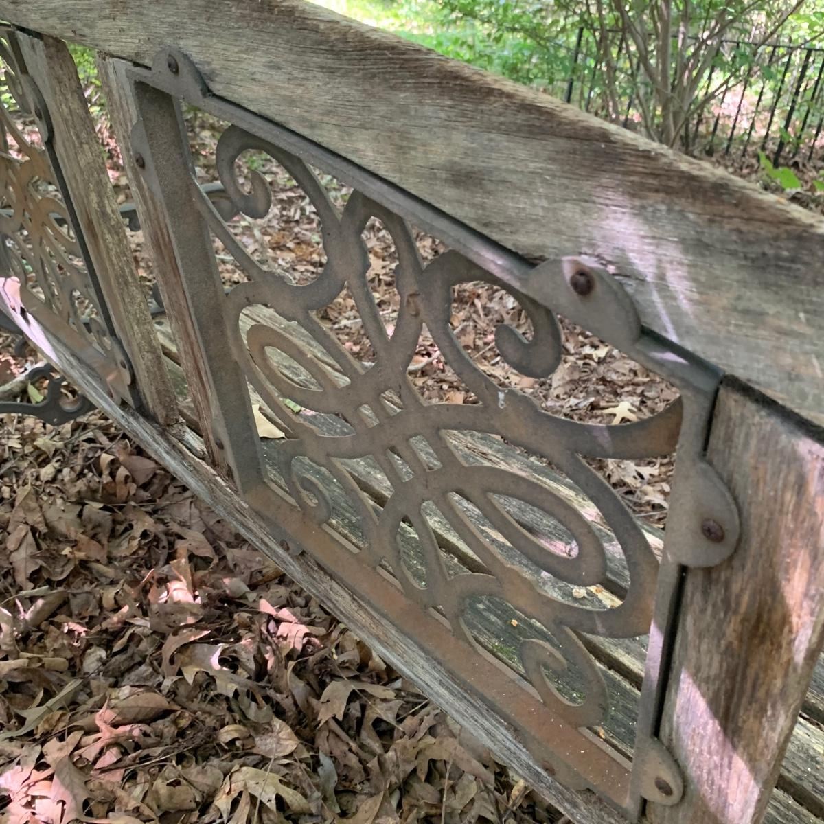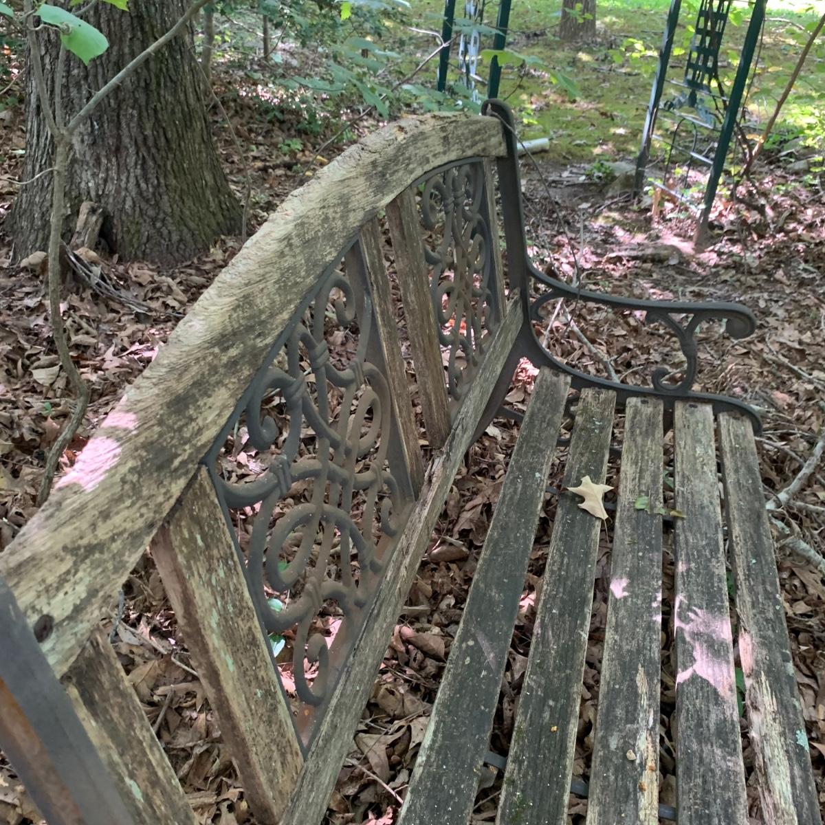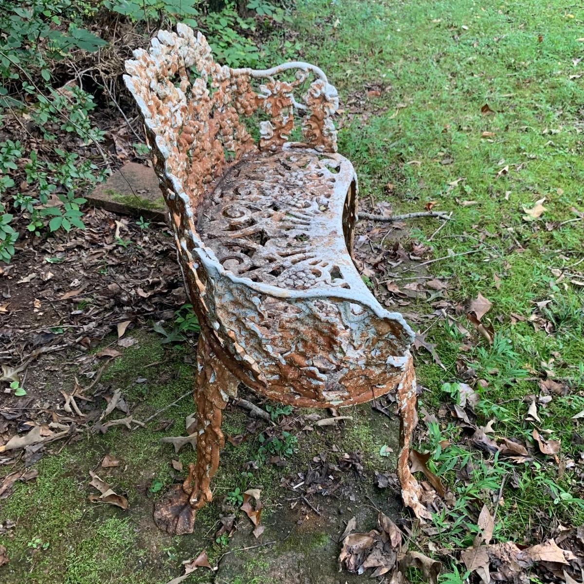 Three outdoor benches. Two are metal, perhaps iron. The smaller metal bench measures 22.5” x 14” x 26” with a seat height of 15”. The larger metal bench measures 38.5” x 17” x 28.5” with a seat height of 14.5”. These are in fair condition as they are quite rusted and weathered. The third bench is wood with a metal base. It measures 50” x 22” x 33” with a seat height of 14”. This bench is also in fair condition as it has been outside in the elements. The winning bidder should bring someone to help move these items up as they are a bit heavy. Local pickup only.