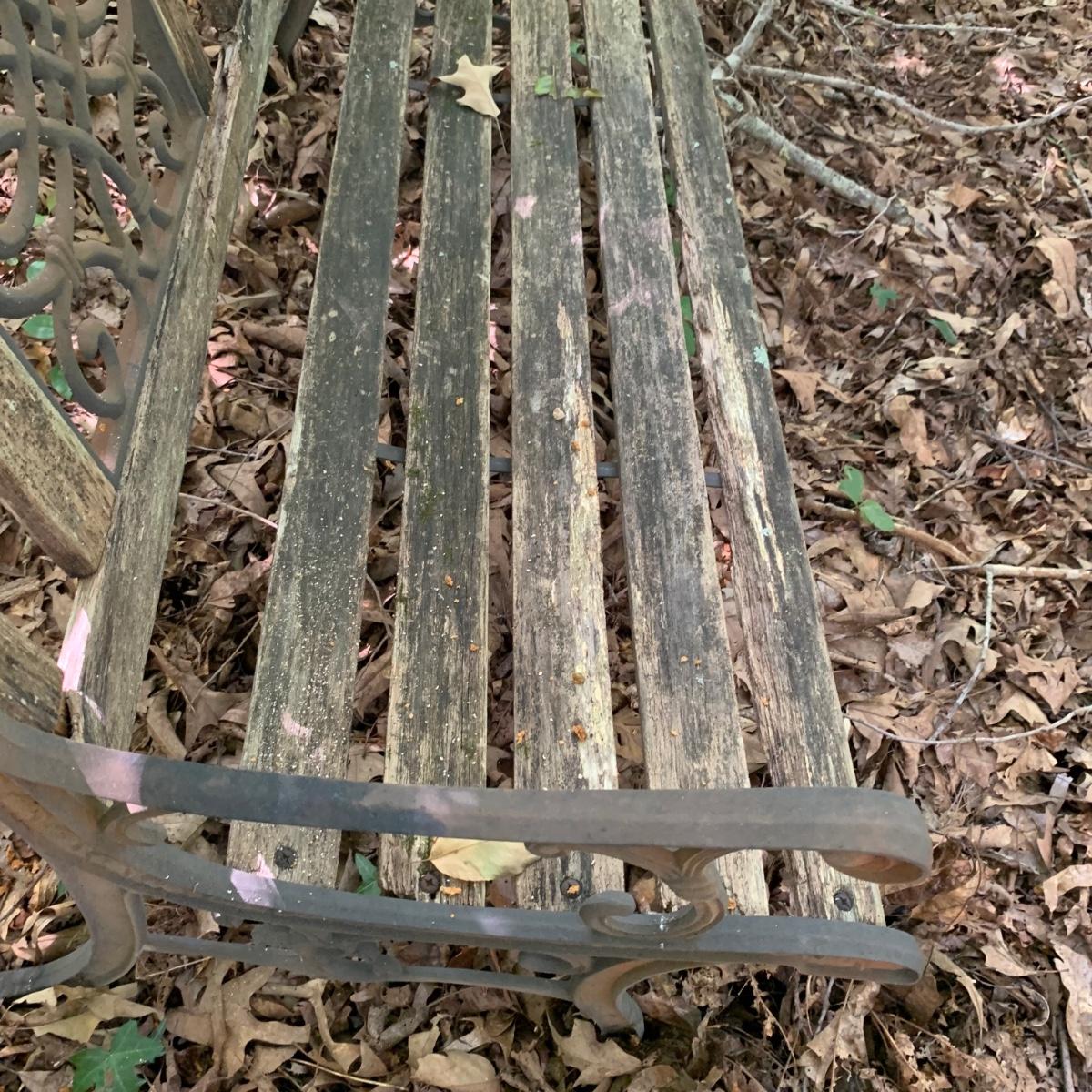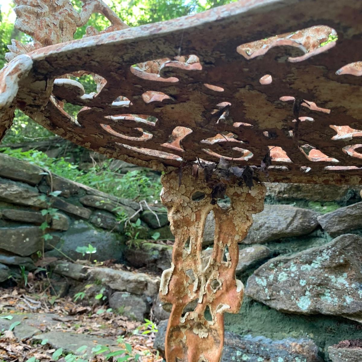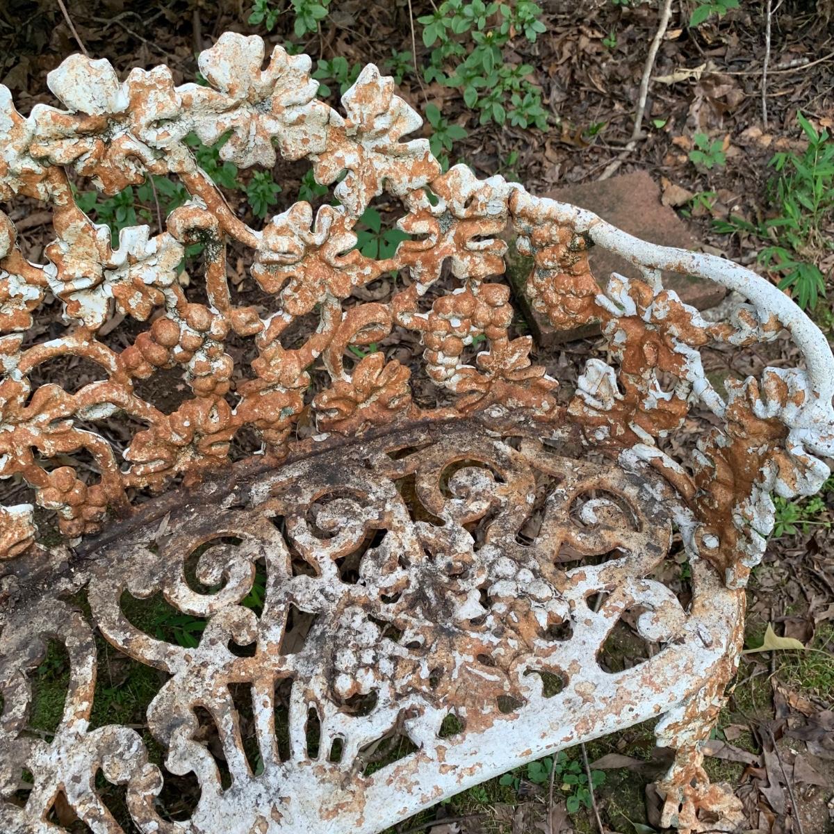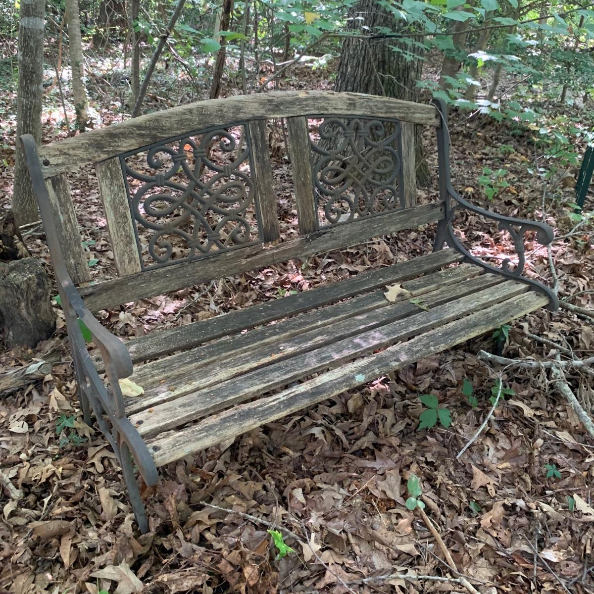 Three outdoor benches. Two are metal, perhaps iron. The smaller metal bench measures 22.5” x 14” x 26” with a seat height of 15”. The larger metal bench measures 38.5” x 17” x 28.5” with a seat height of 14.5”. These are in fair condition as they are quite rusted and weathered. The third bench is wood with a metal base. It measures 50” x 22” x 33” with a seat height of 14”. This bench is also in fair condition as it has been outside in the elements. The winning bidder should bring someone to help move these items up as they are a bit heavy. Local pickup only.